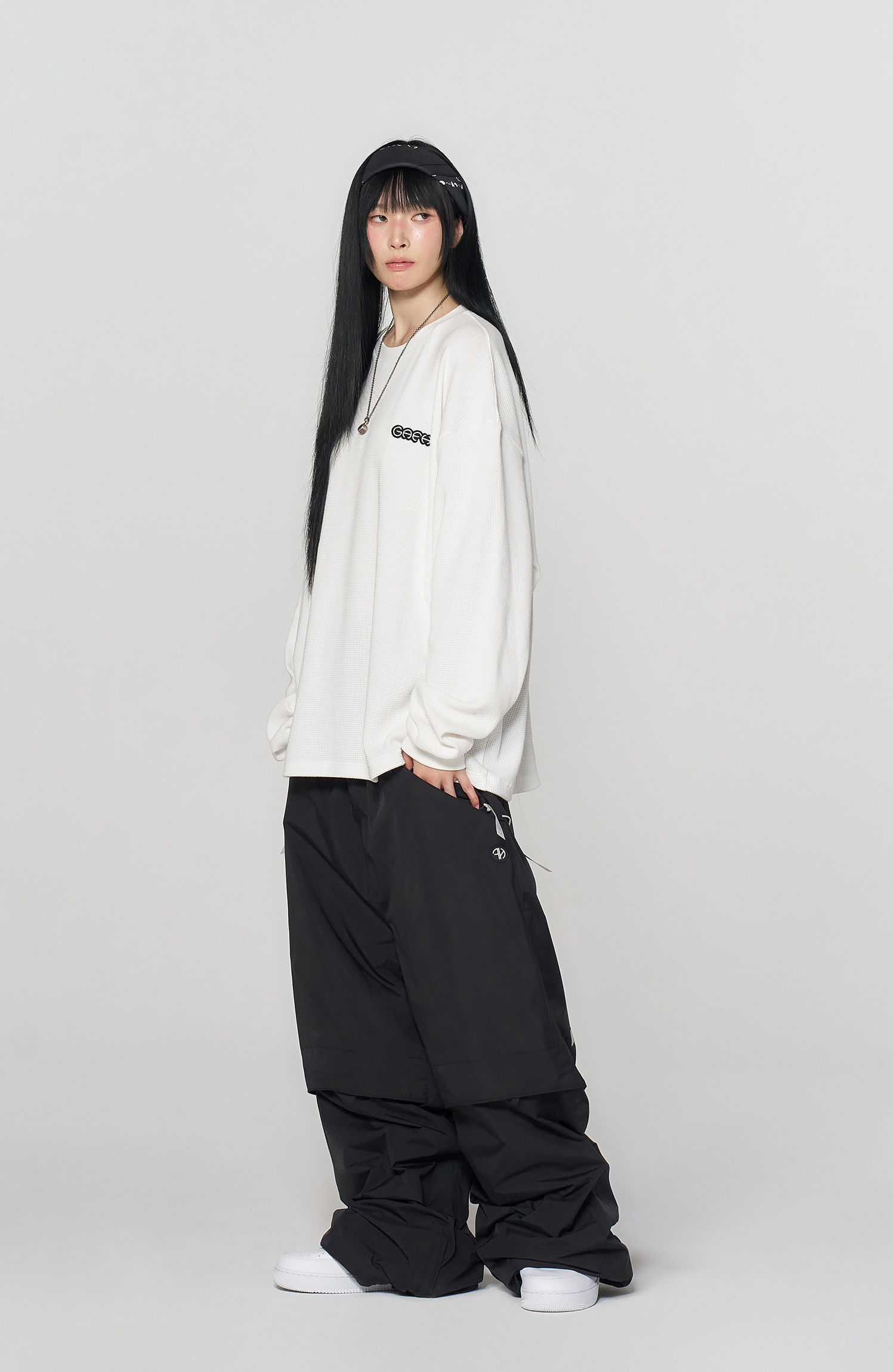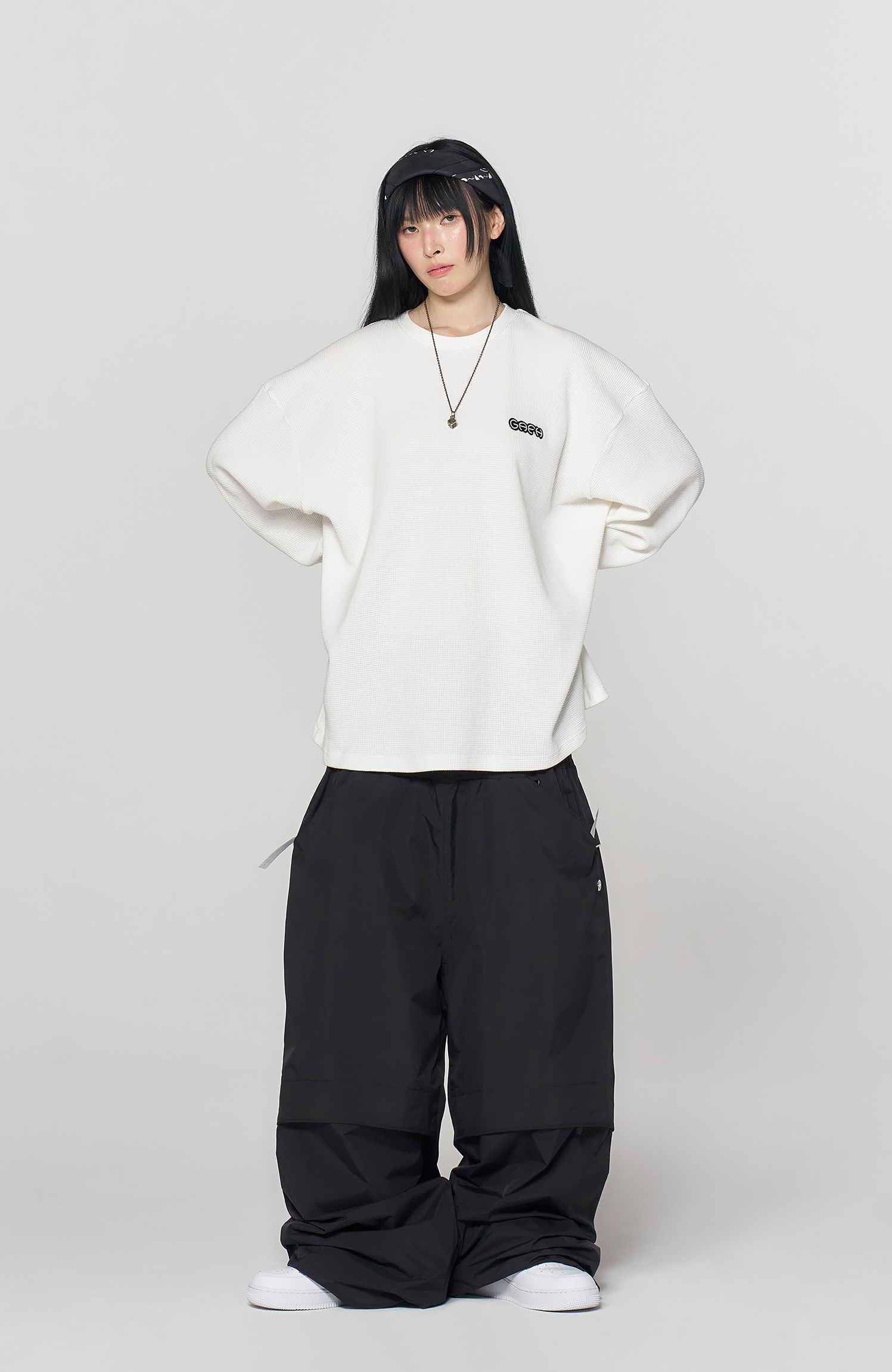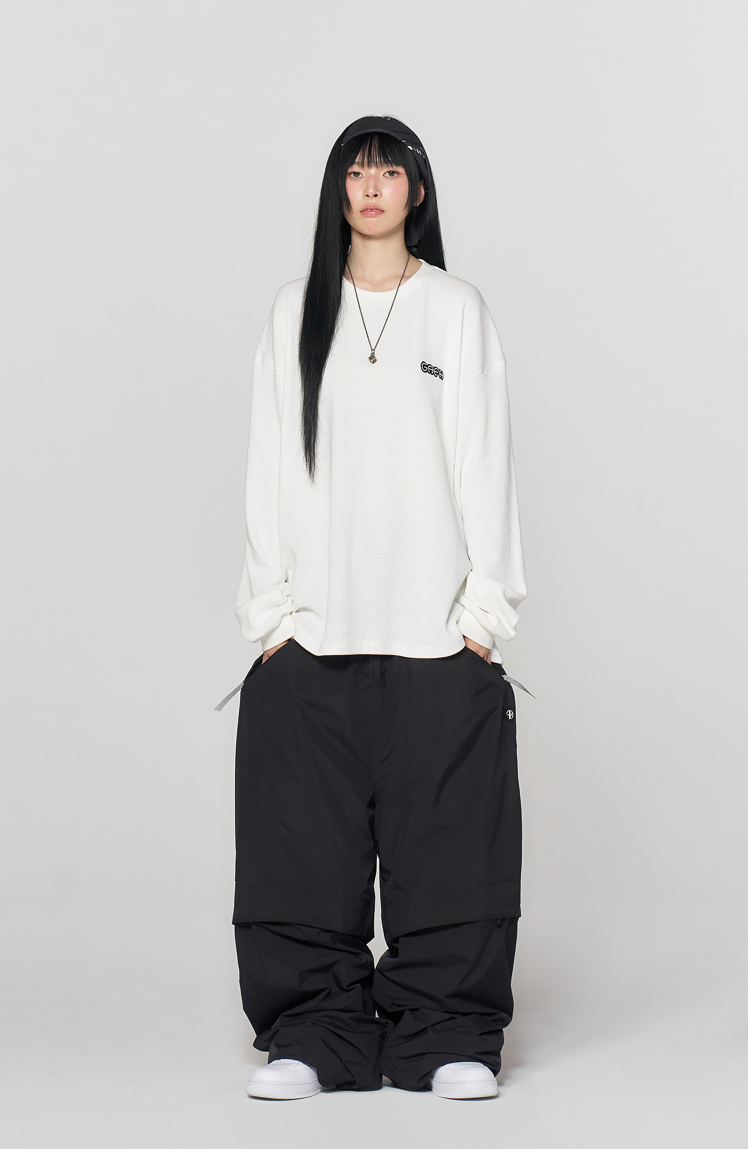 와플 조직의 텍스쳐가 돋보이는 롱 슬리브입니다.
