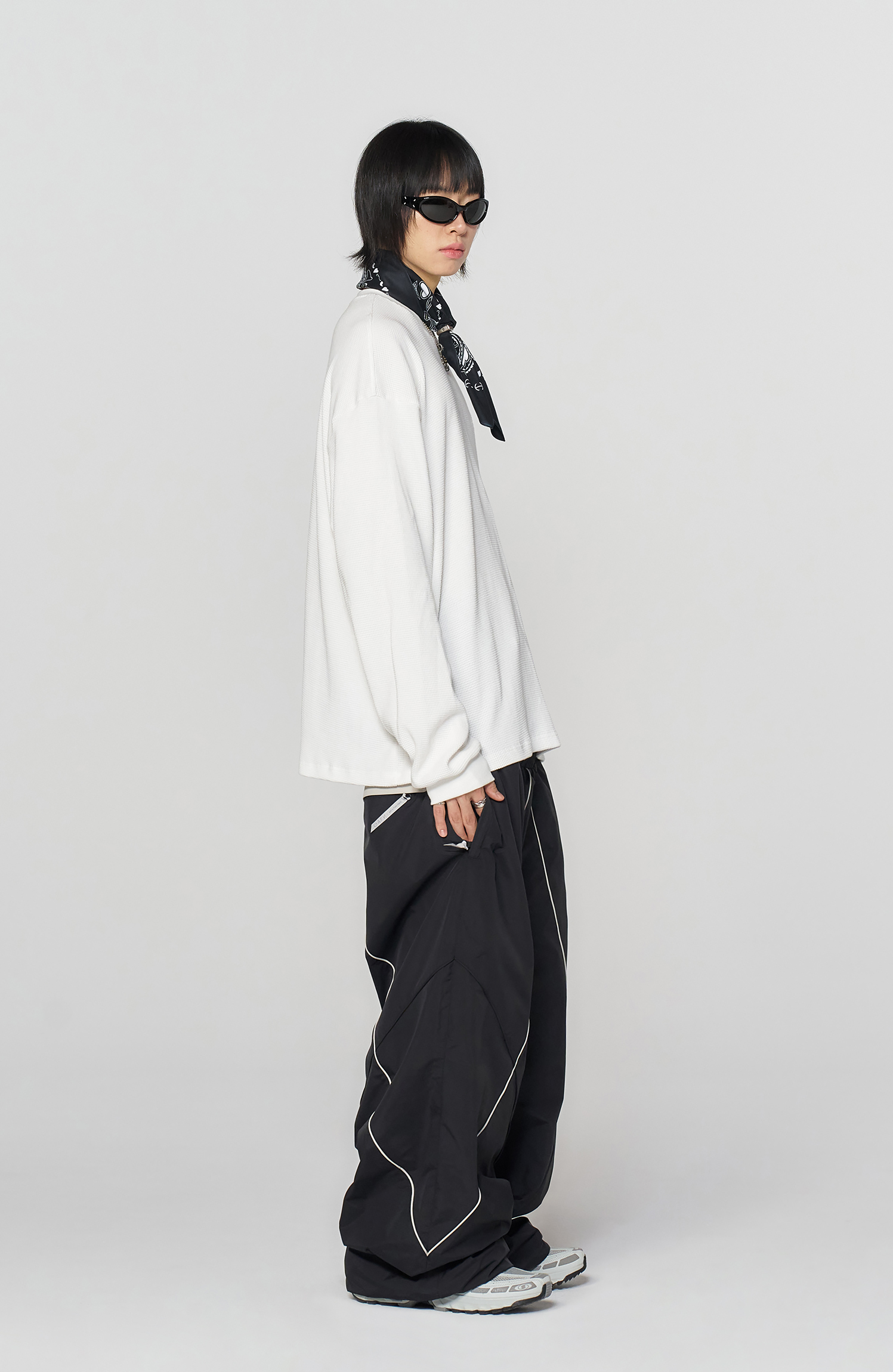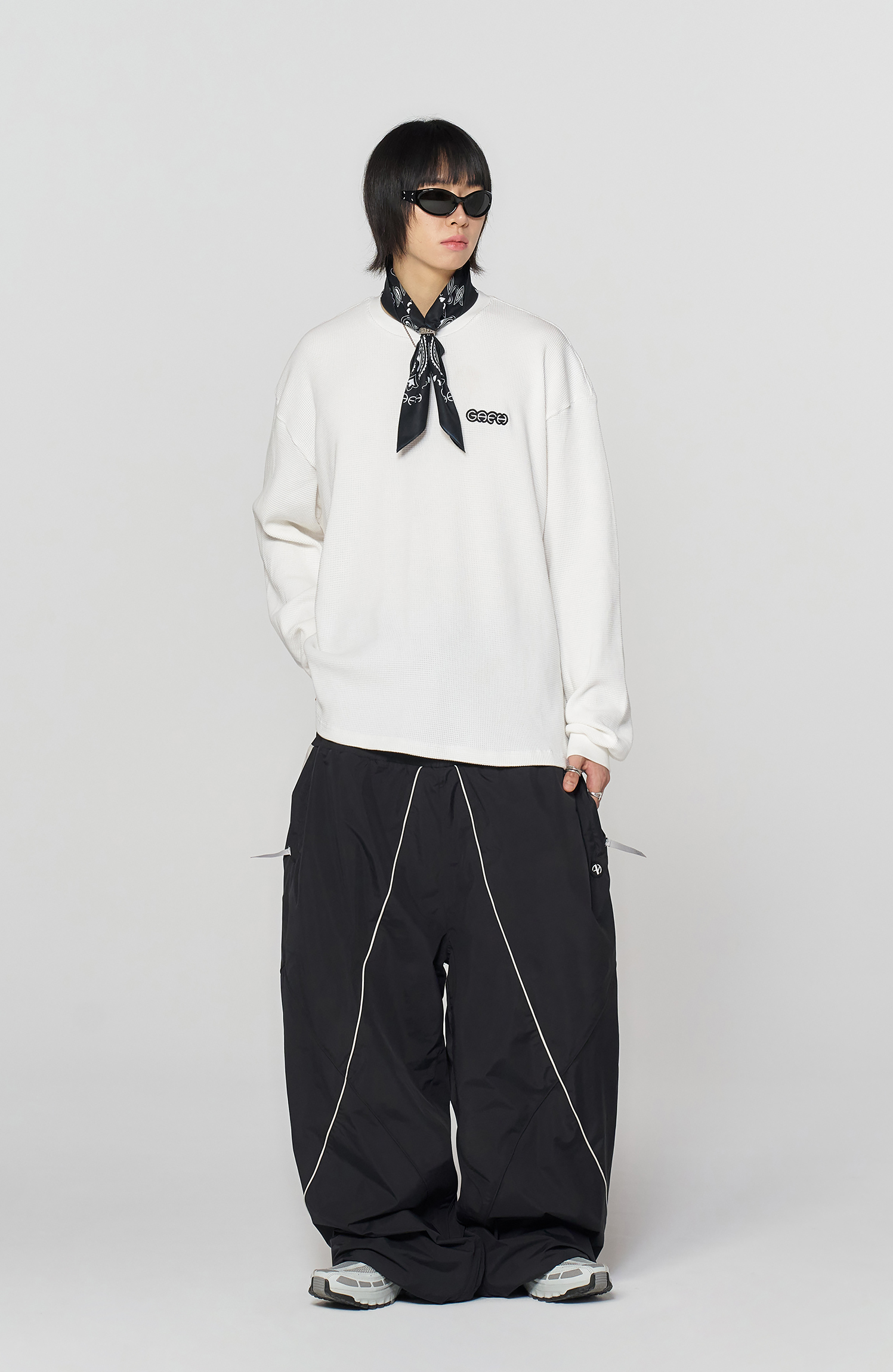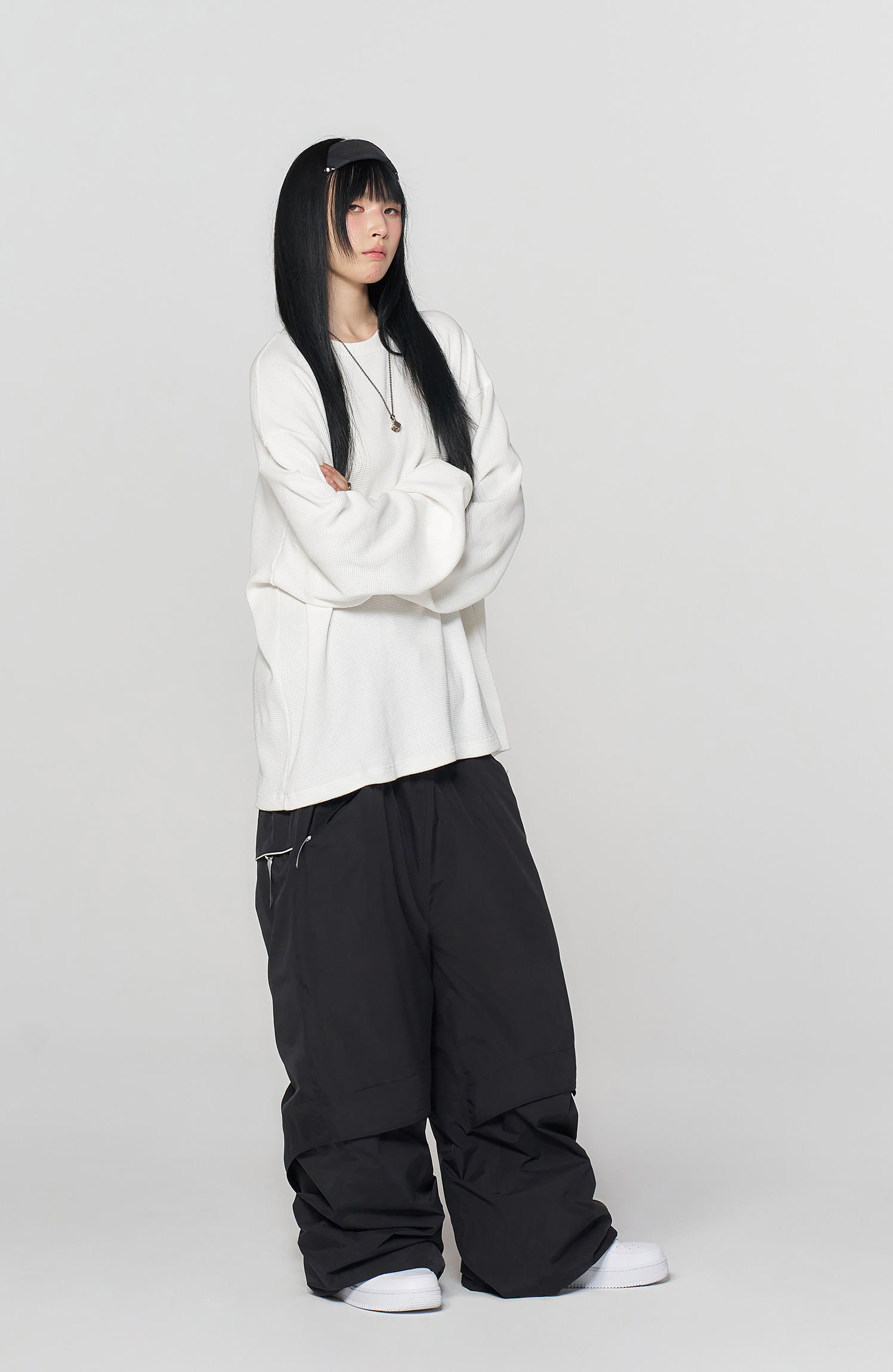 와플 조직의 텍스쳐가 돋보이는 롱 슬리브입니다.