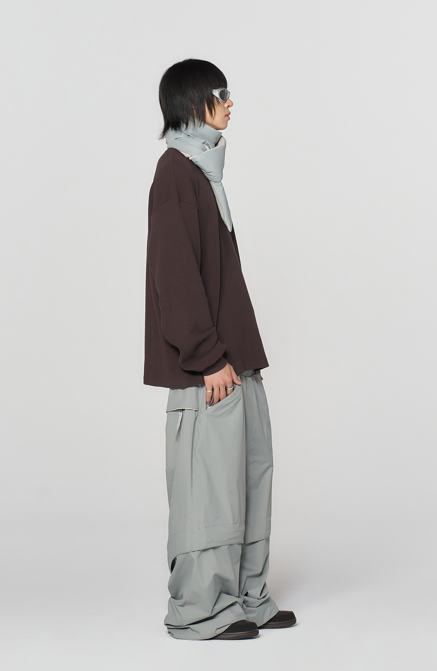 와플 조직의 텍스쳐가 돋보이는 롱 슬리브입니다.