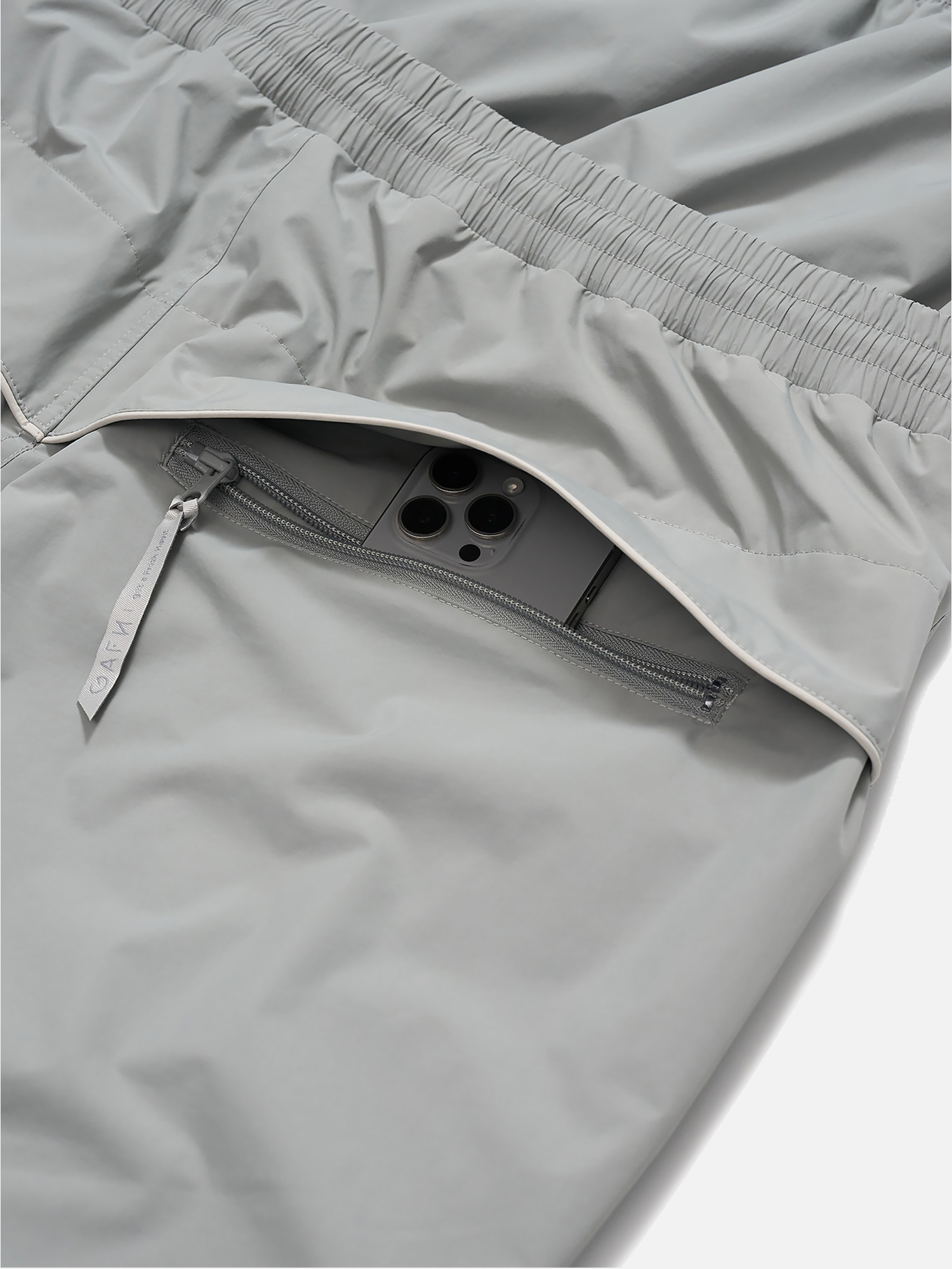 허리에는 엘라스틱 밴딩, 스트링/스토퍼가 이중으로 적용되어 다양한 체형에 적합합니다.
