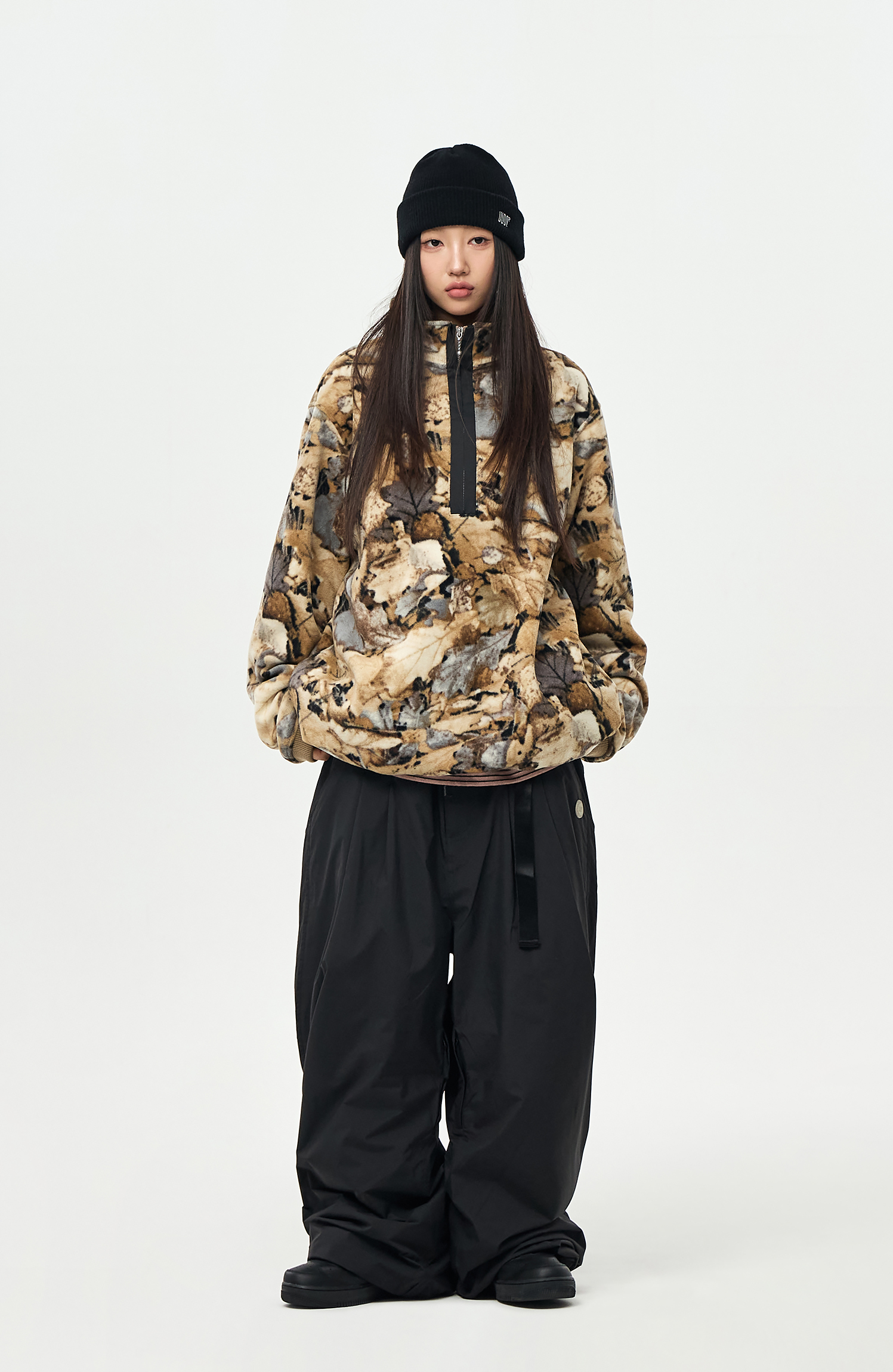 밑단의 스트링/스토퍼와 지퍼로 사이즈 조절이 가능하여 다양한 연출이 가능합니다.