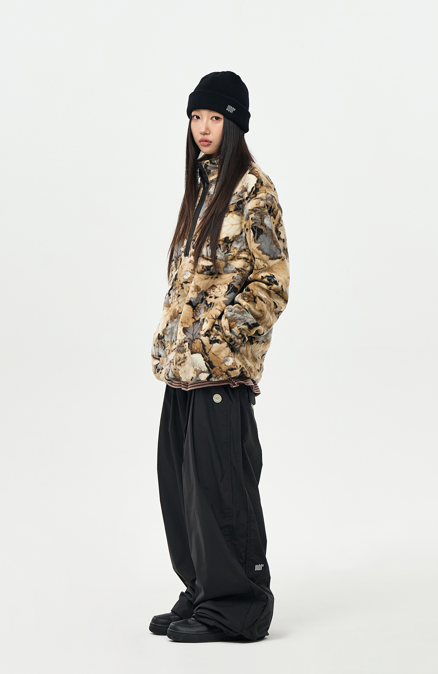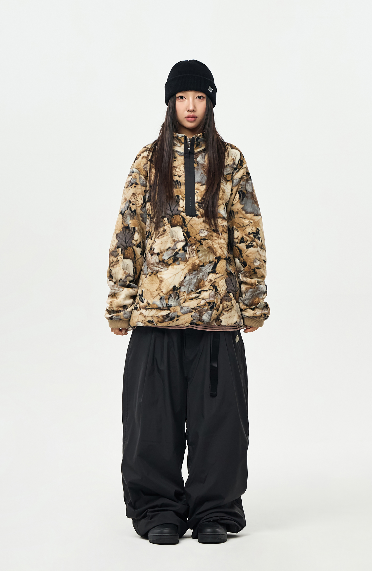 - Model Woman: 167cm/48kg. Top : M / Outer : M / Pants : M