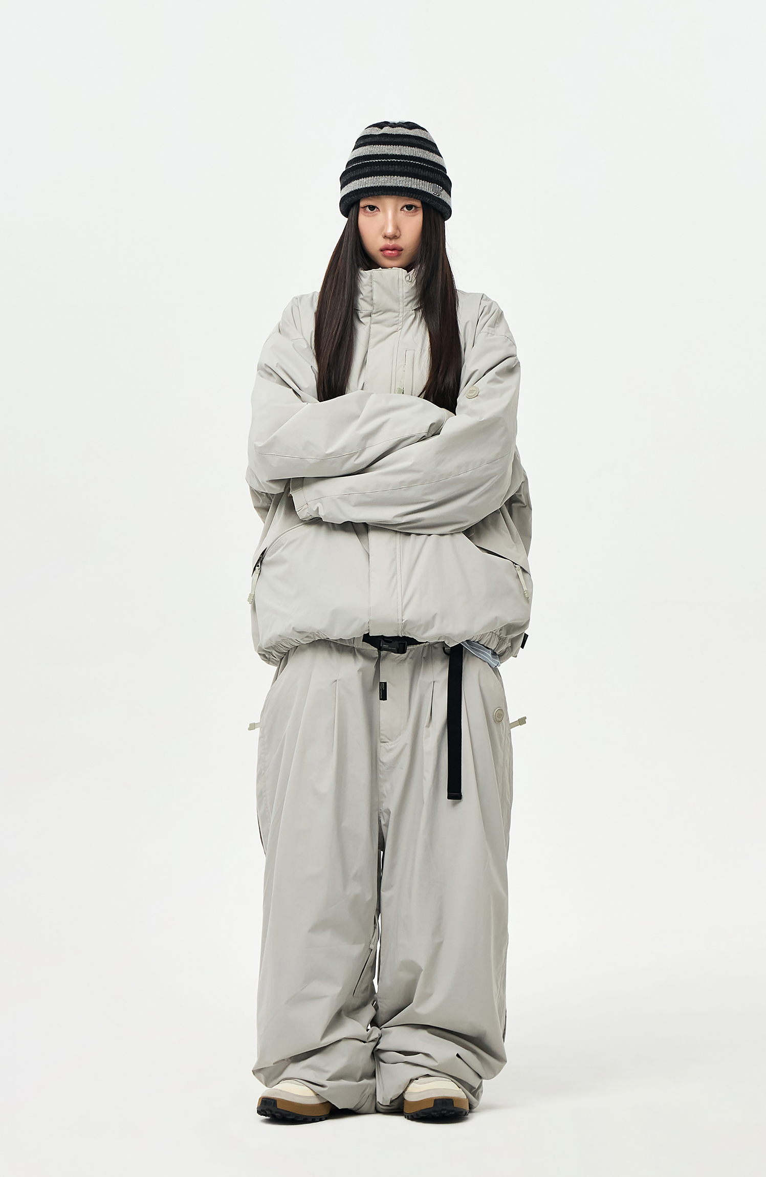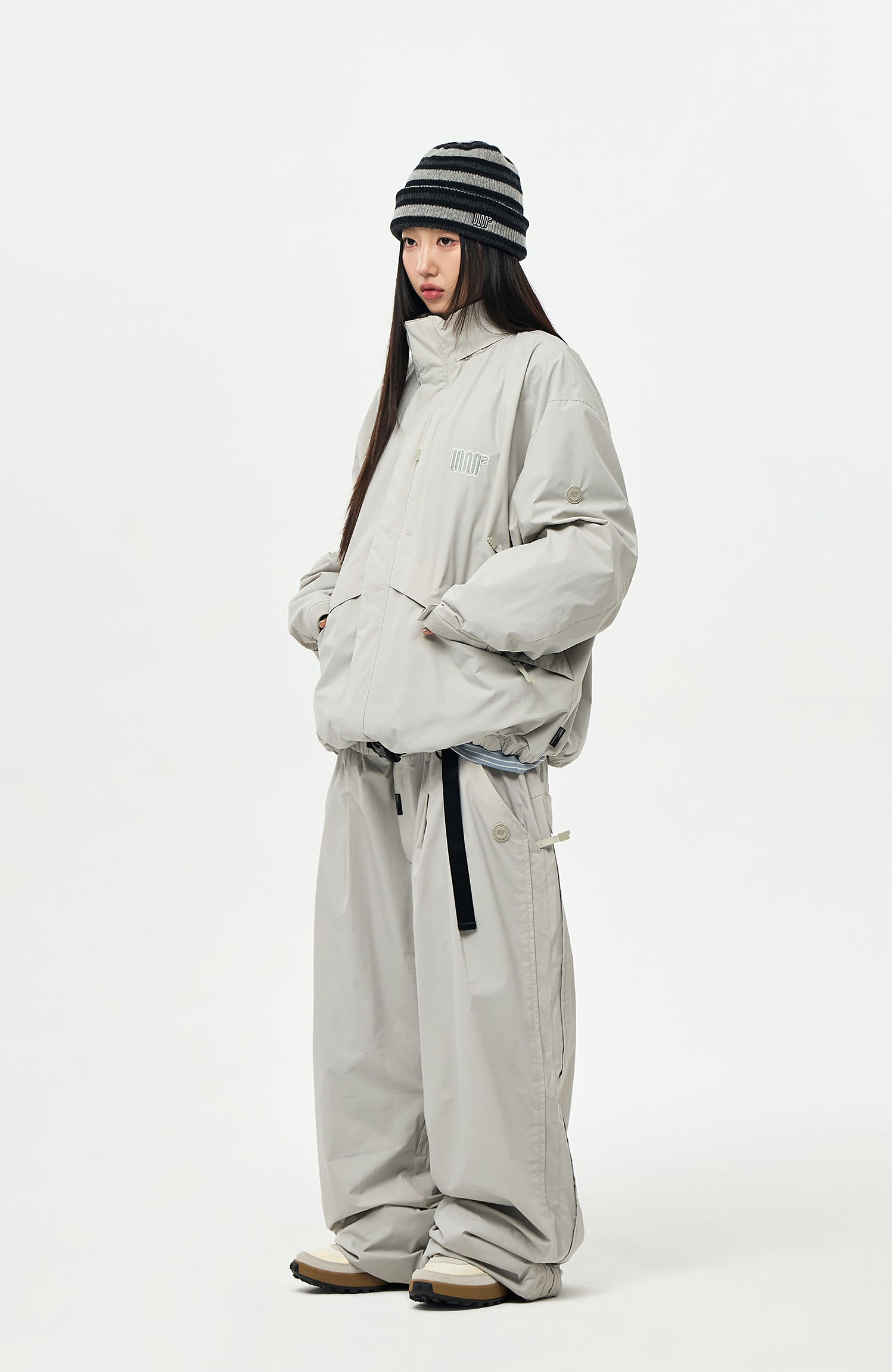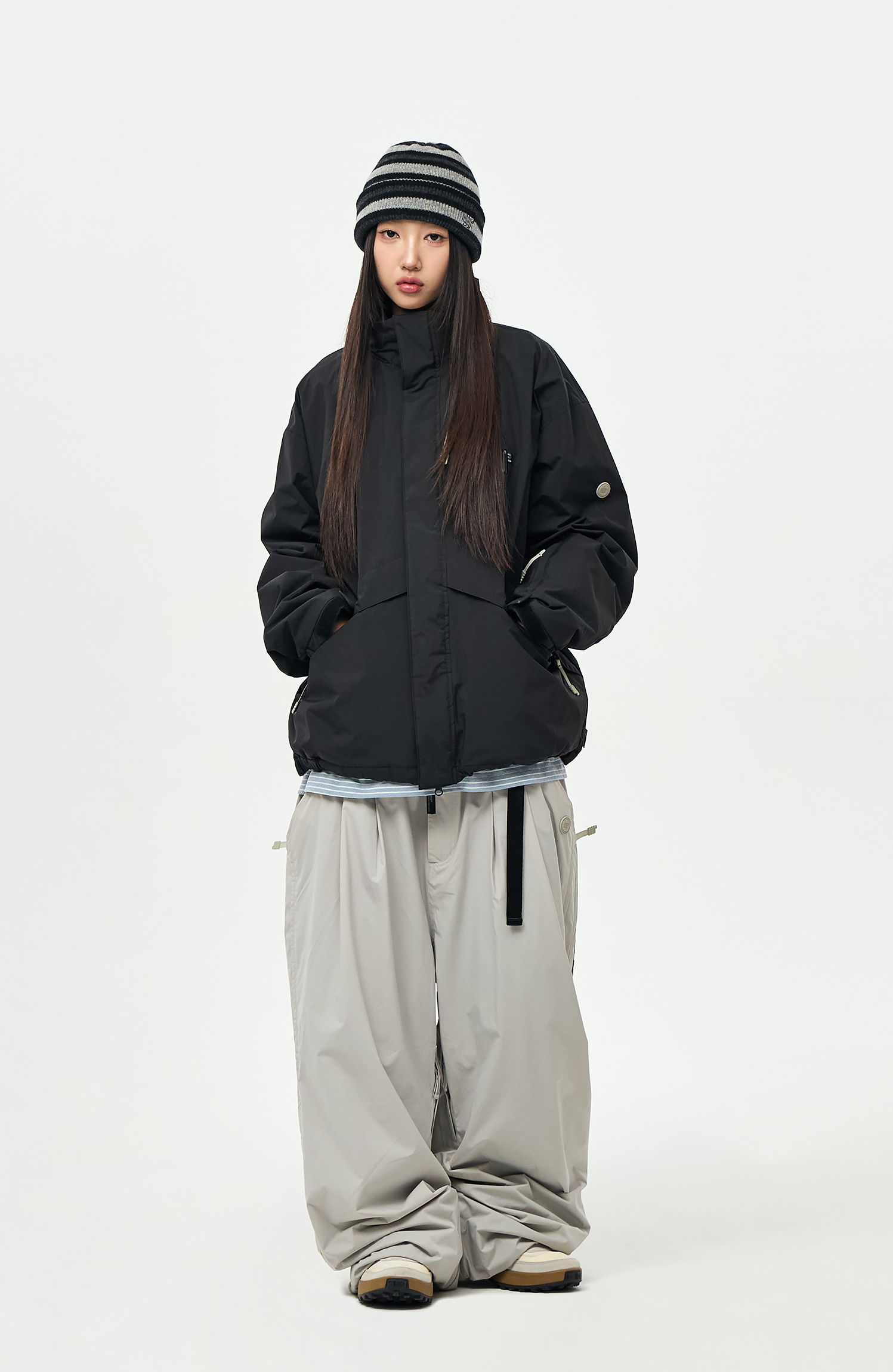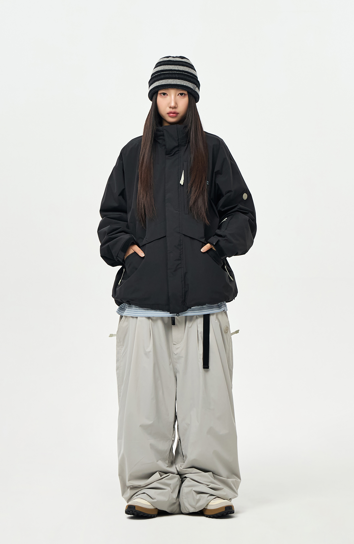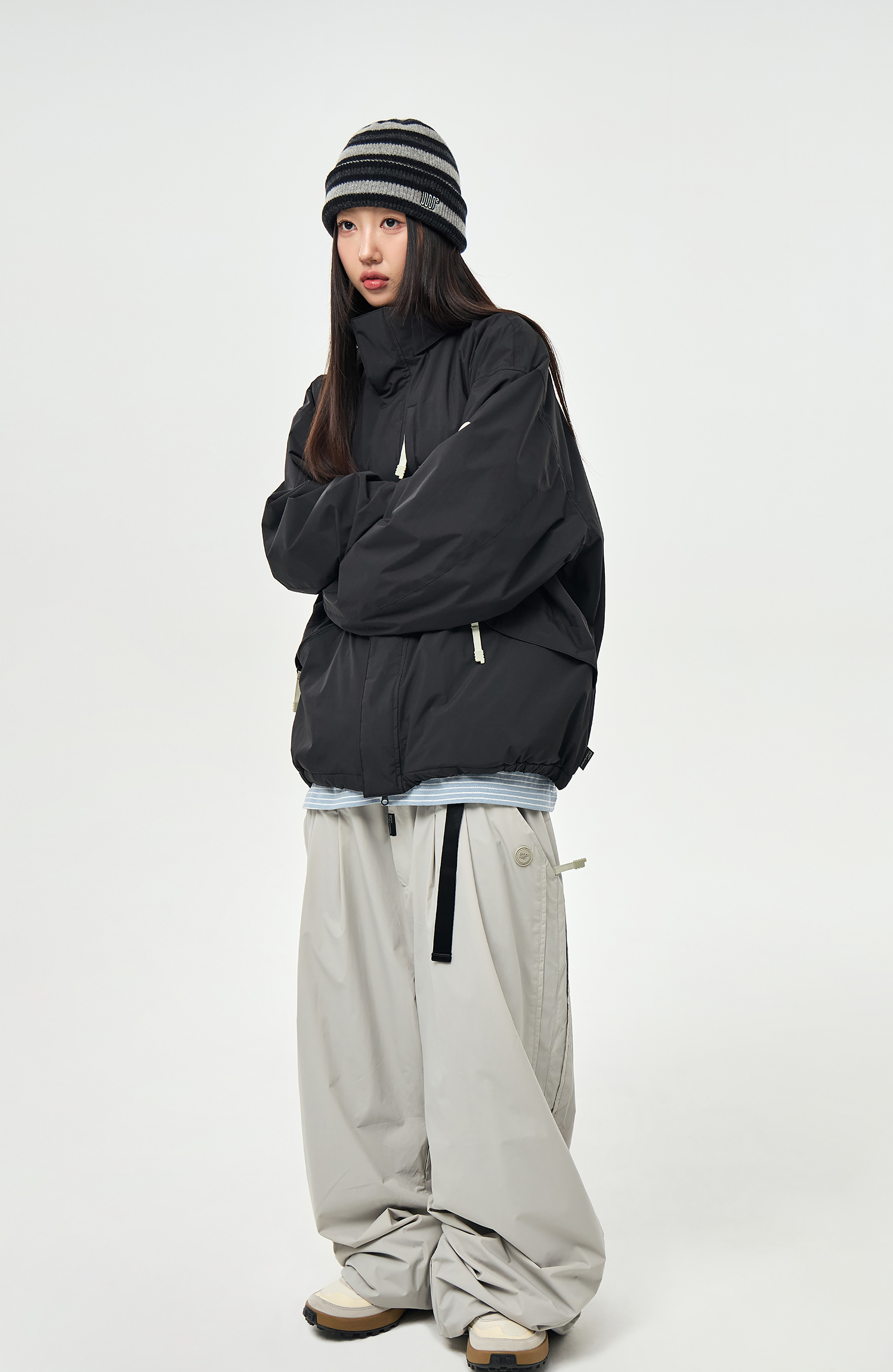 밑단의 스트링/스토퍼와 지퍼로 사이즈 조절이 가능하여 다양한 연출이 가능합니다.