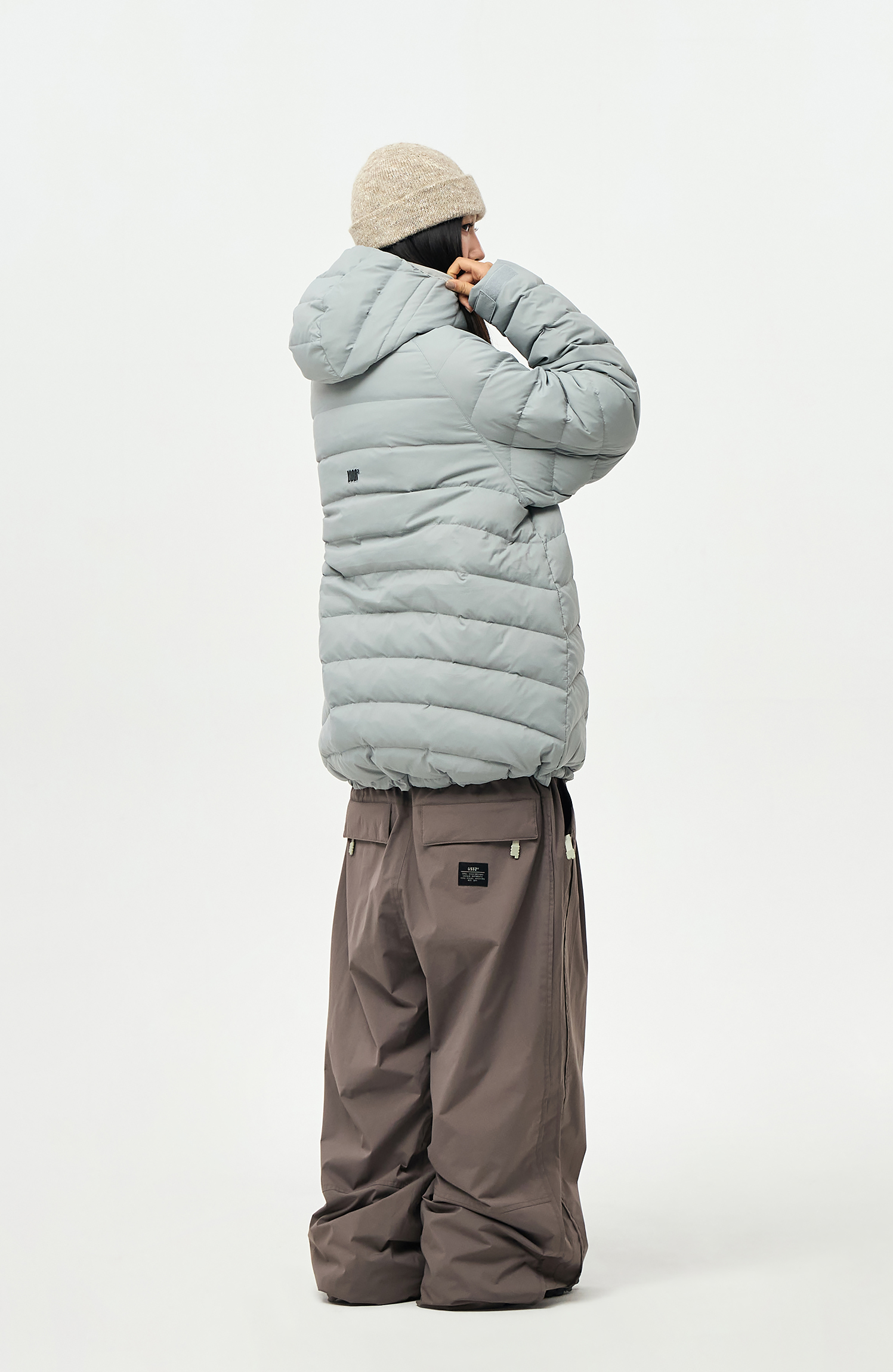 밑단의 스트링/스토퍼와 지퍼로 사이즈 조절이 가능하여 다양한 연출이 가능합니다.