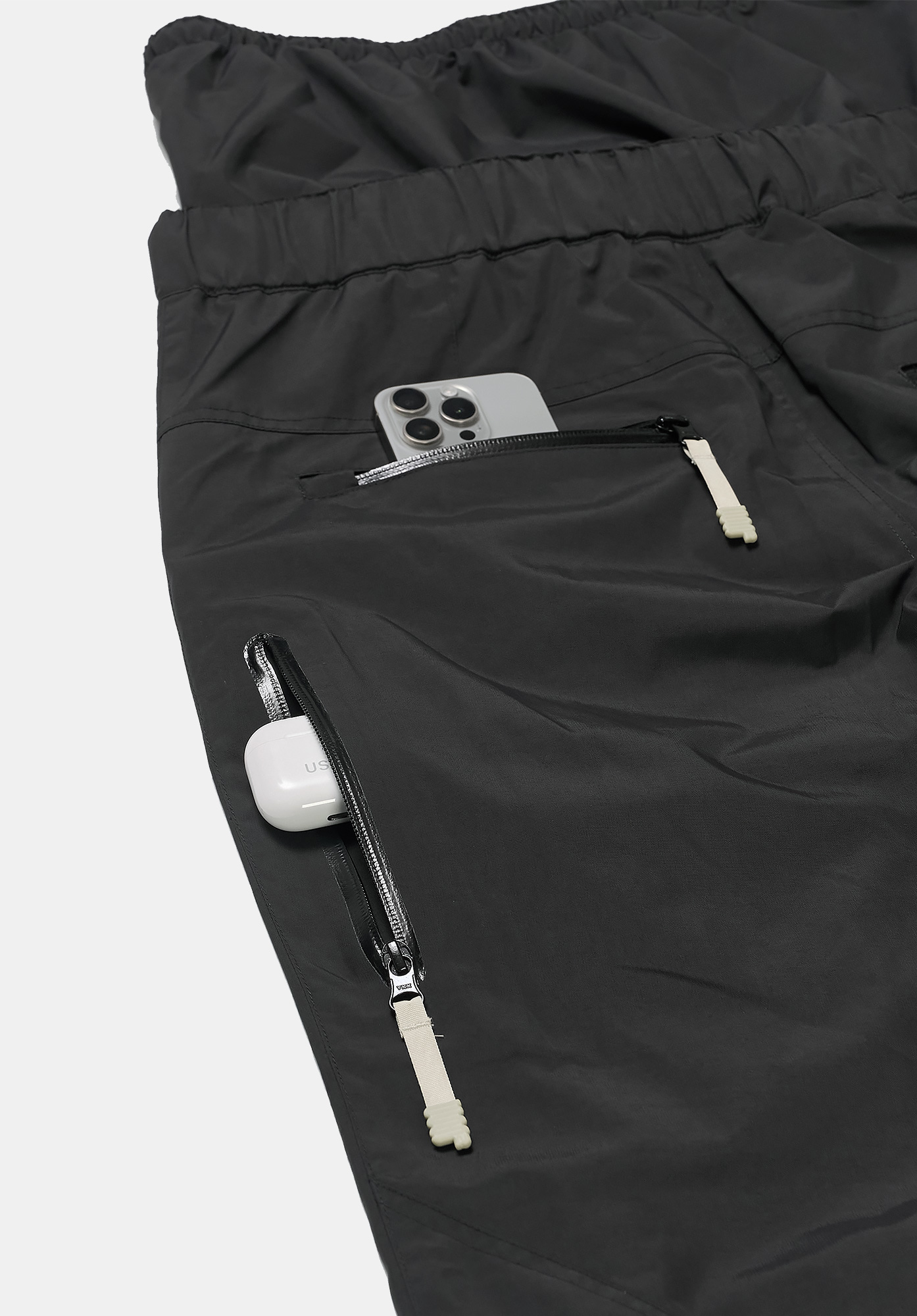 곡선 절개와 뒷면의 YKK™ 방수 지퍼 포인트가 유니크한 실루엣과 기능성을 동시에 완성합니다.