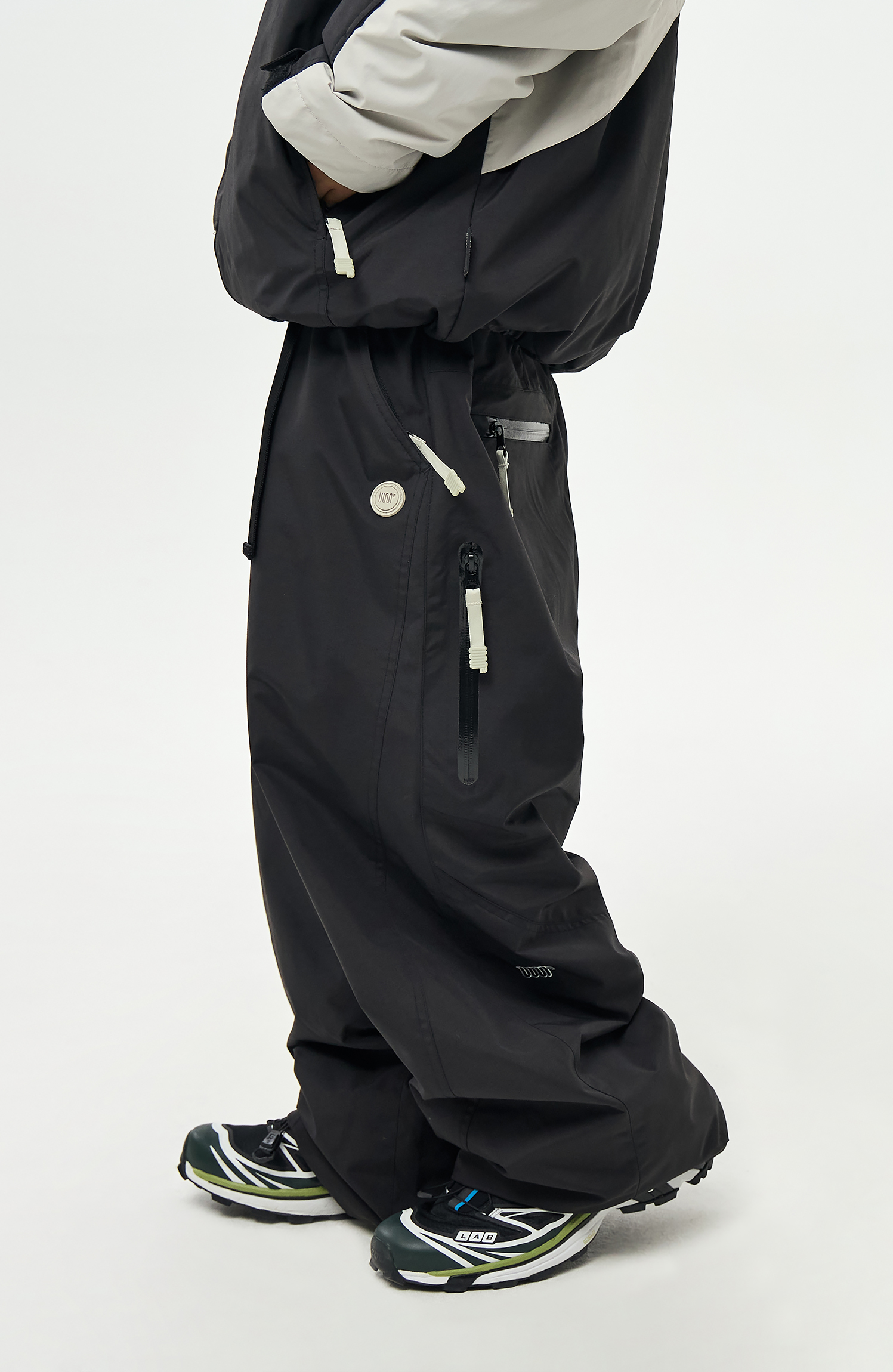 내부에 눈의 유입을 차단할 수 있도록 Powder skirt 와 Ankle Gaiters 를 부착하였으며,