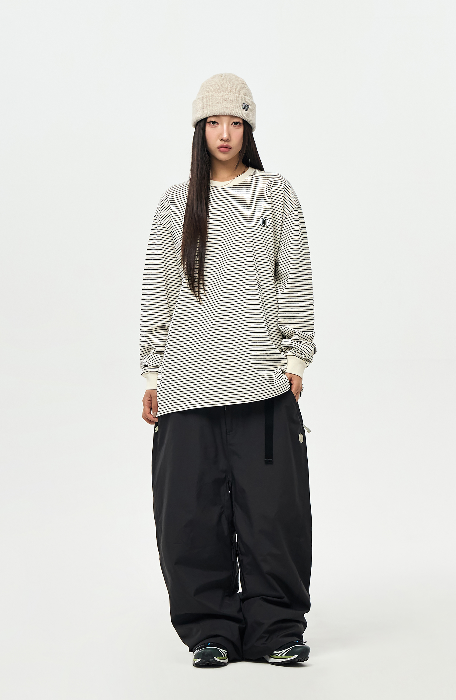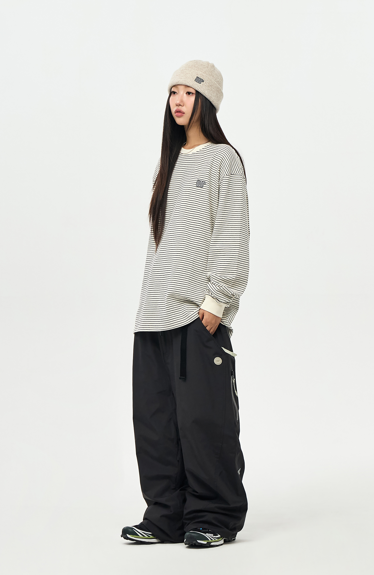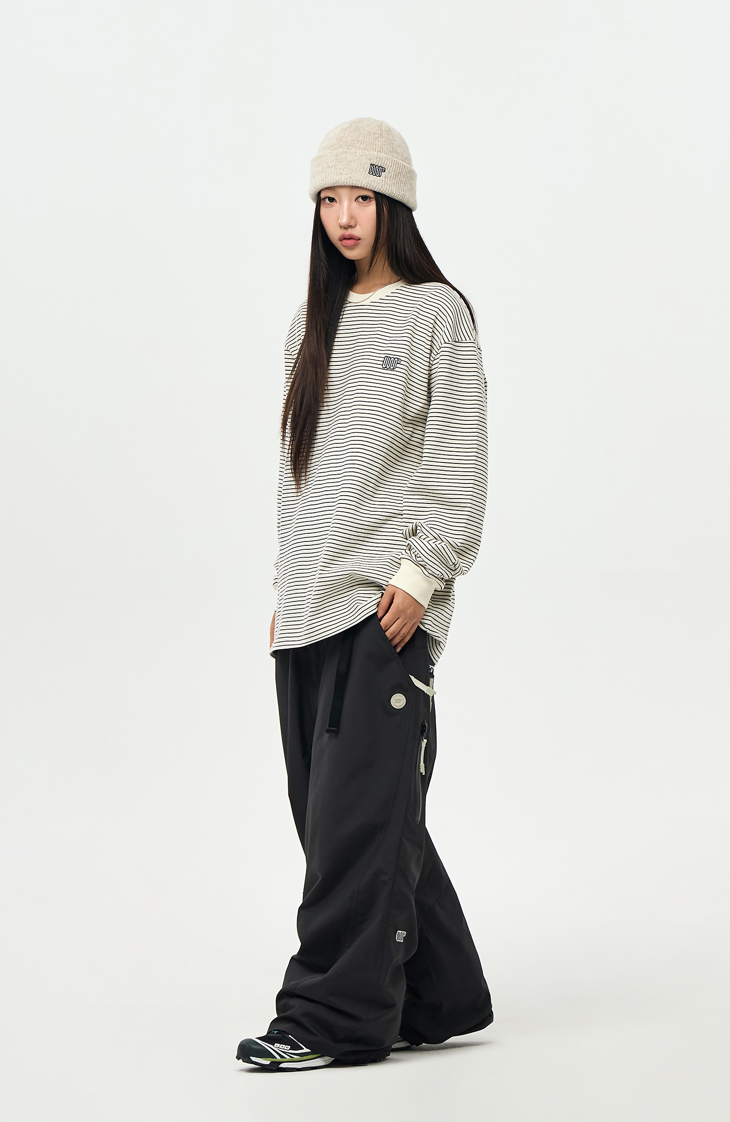 - Model Woman: 167cm/48kg. Top : M / Outer : M / Pants : M