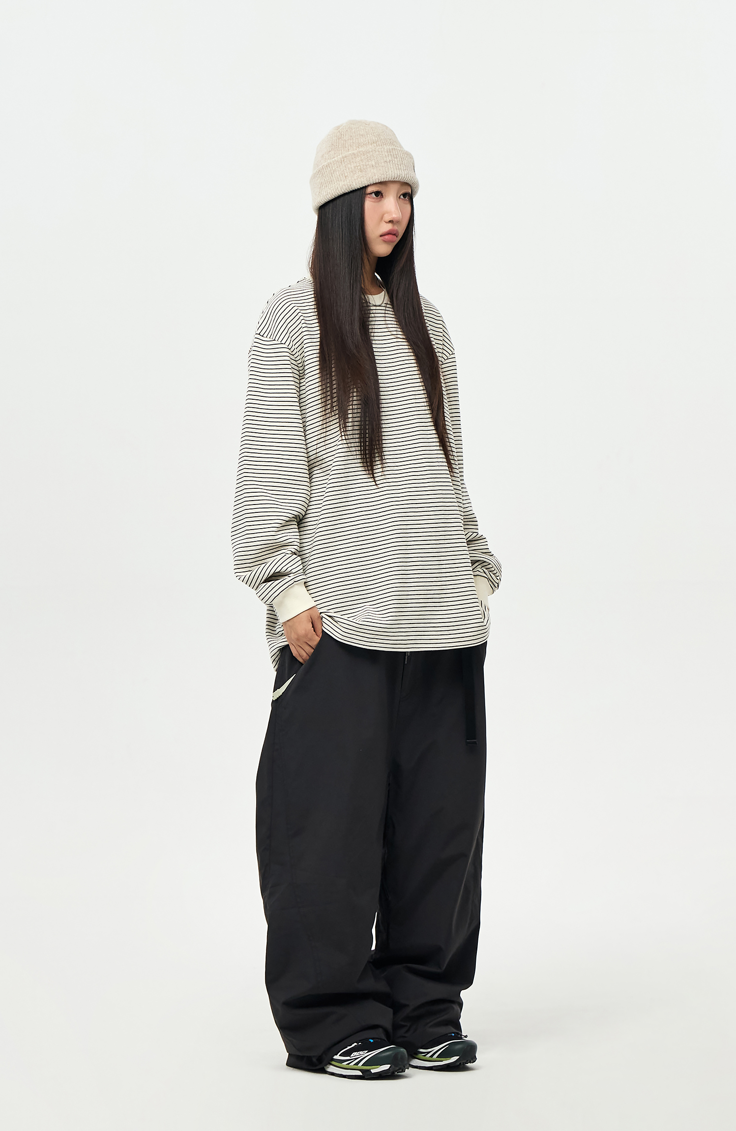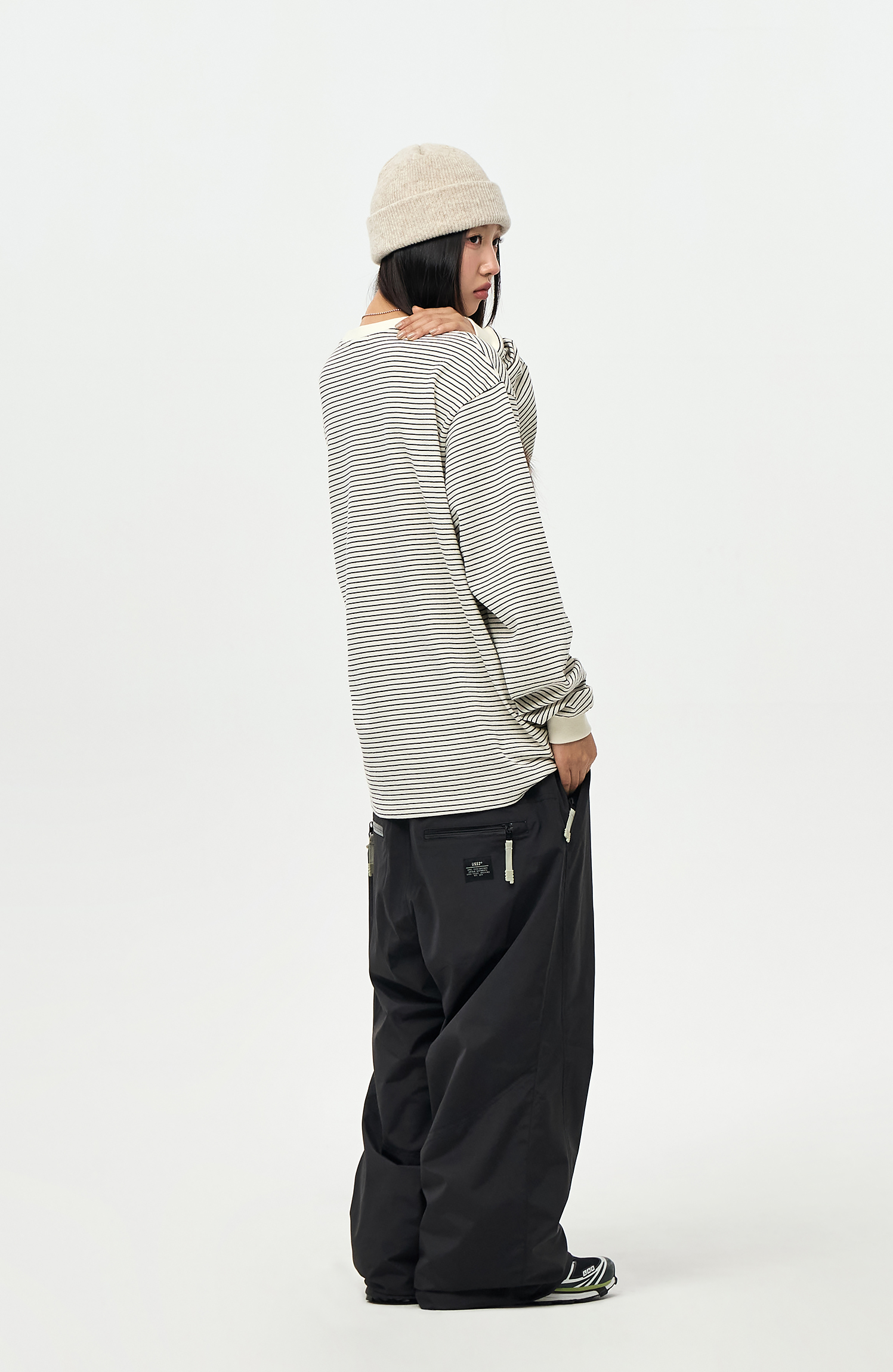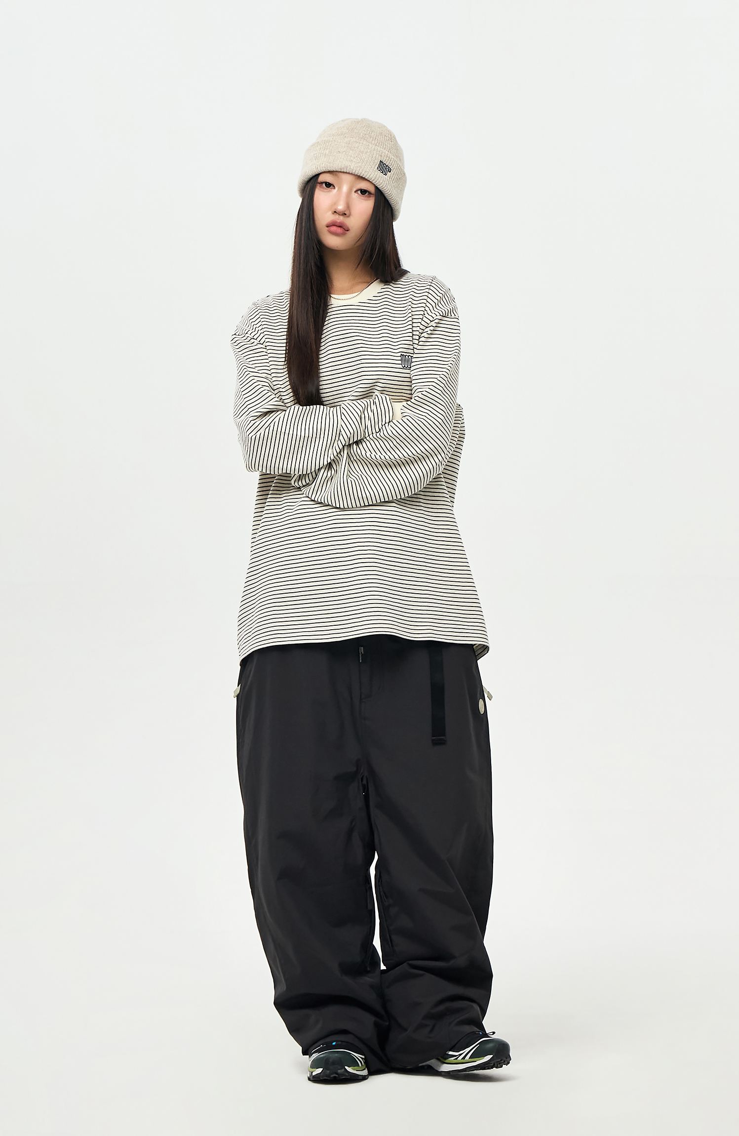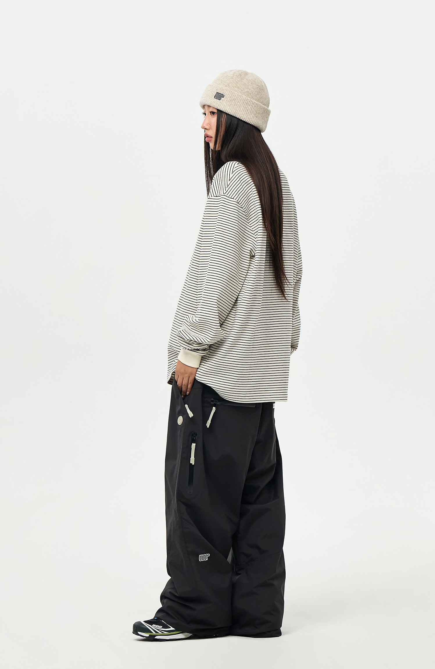- Model Woman: 167cm/48kg. Top : M / Outer : M / Pants : M
