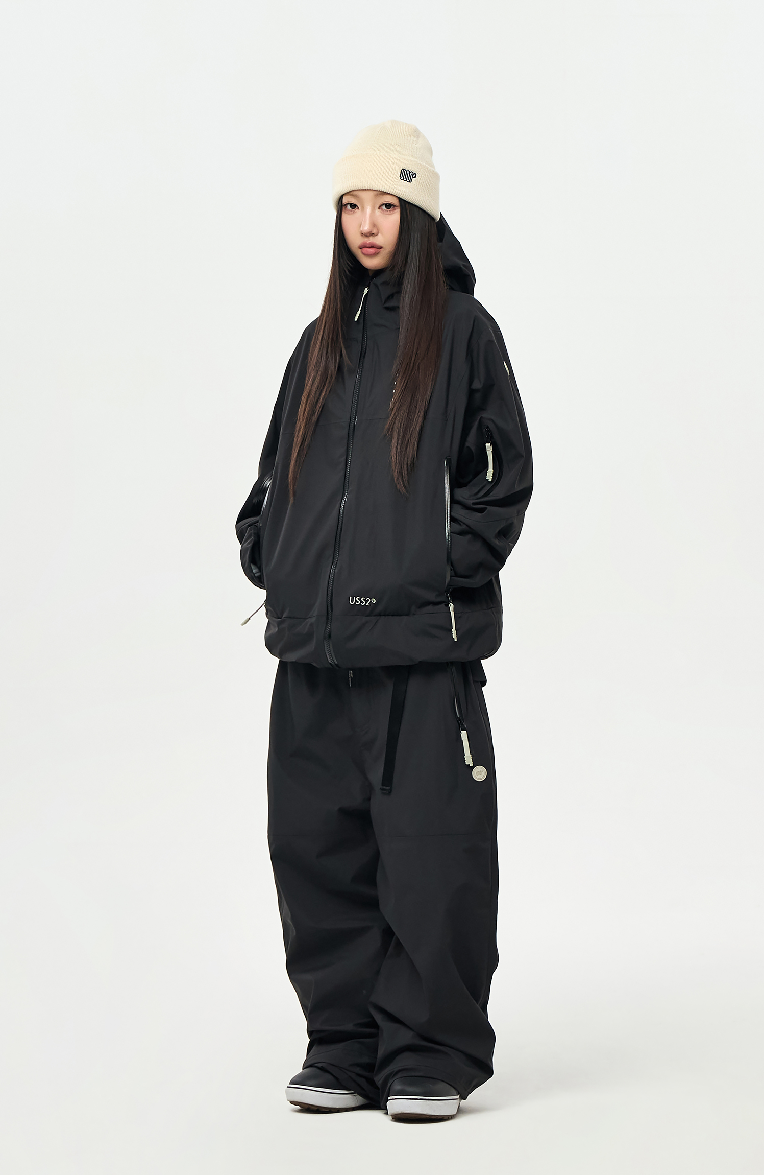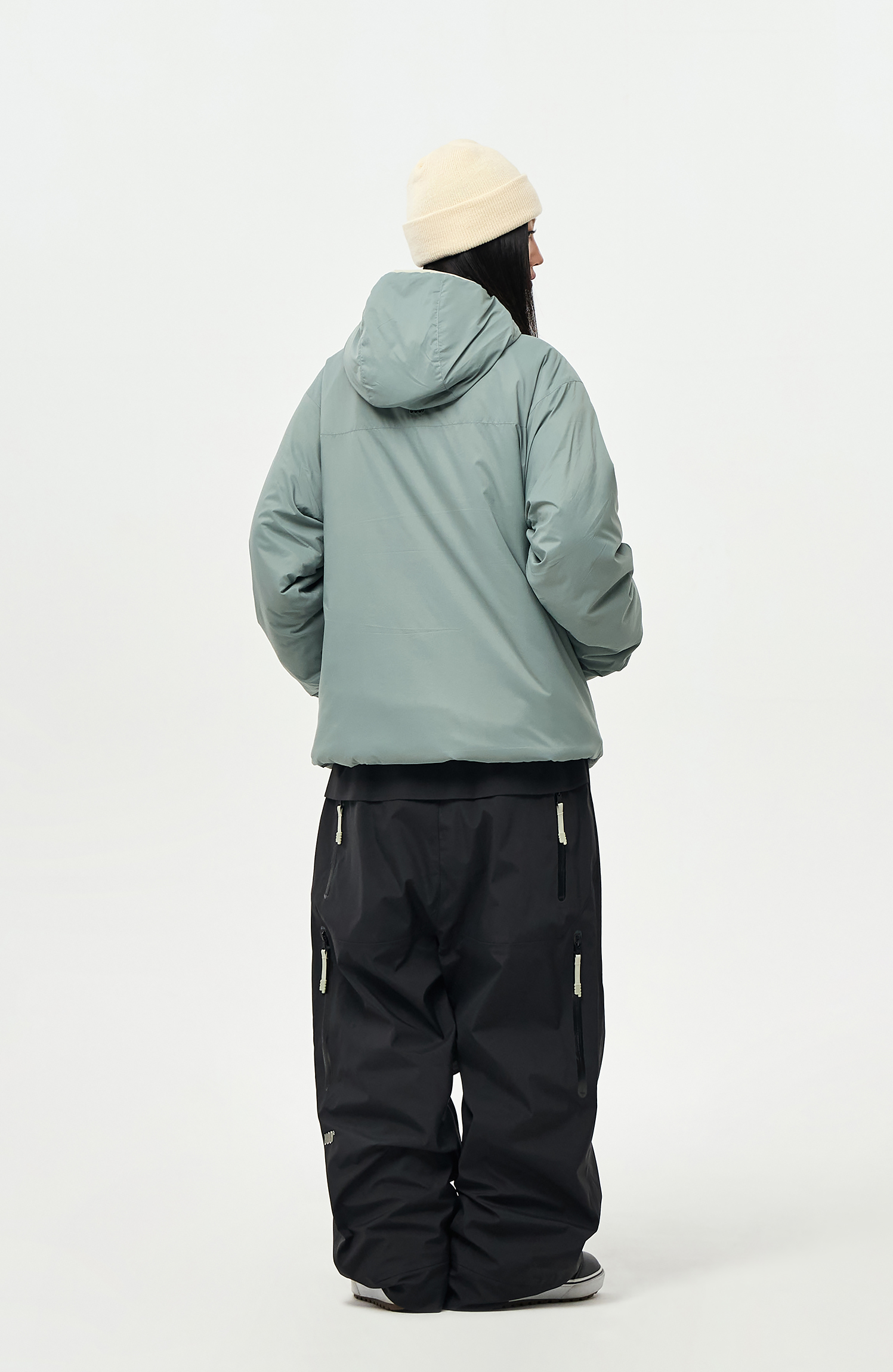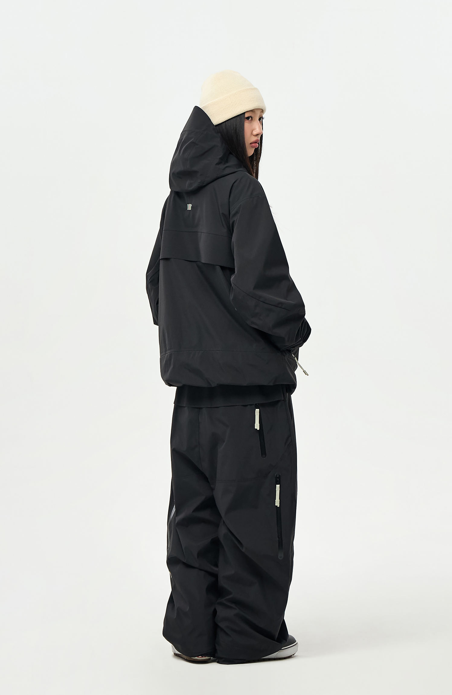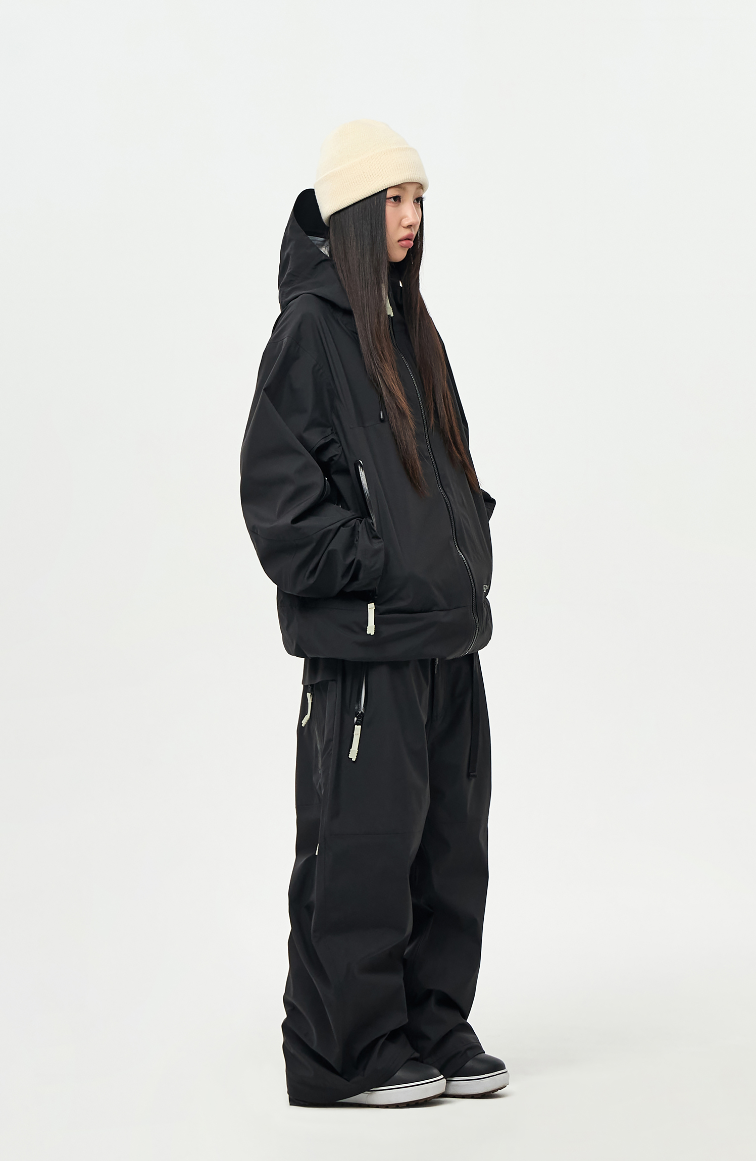 내부에 눈의 유입을 차단할 수 있도록 Powder skirt 와 Ankle Gaiters 를 부착하였으며,
