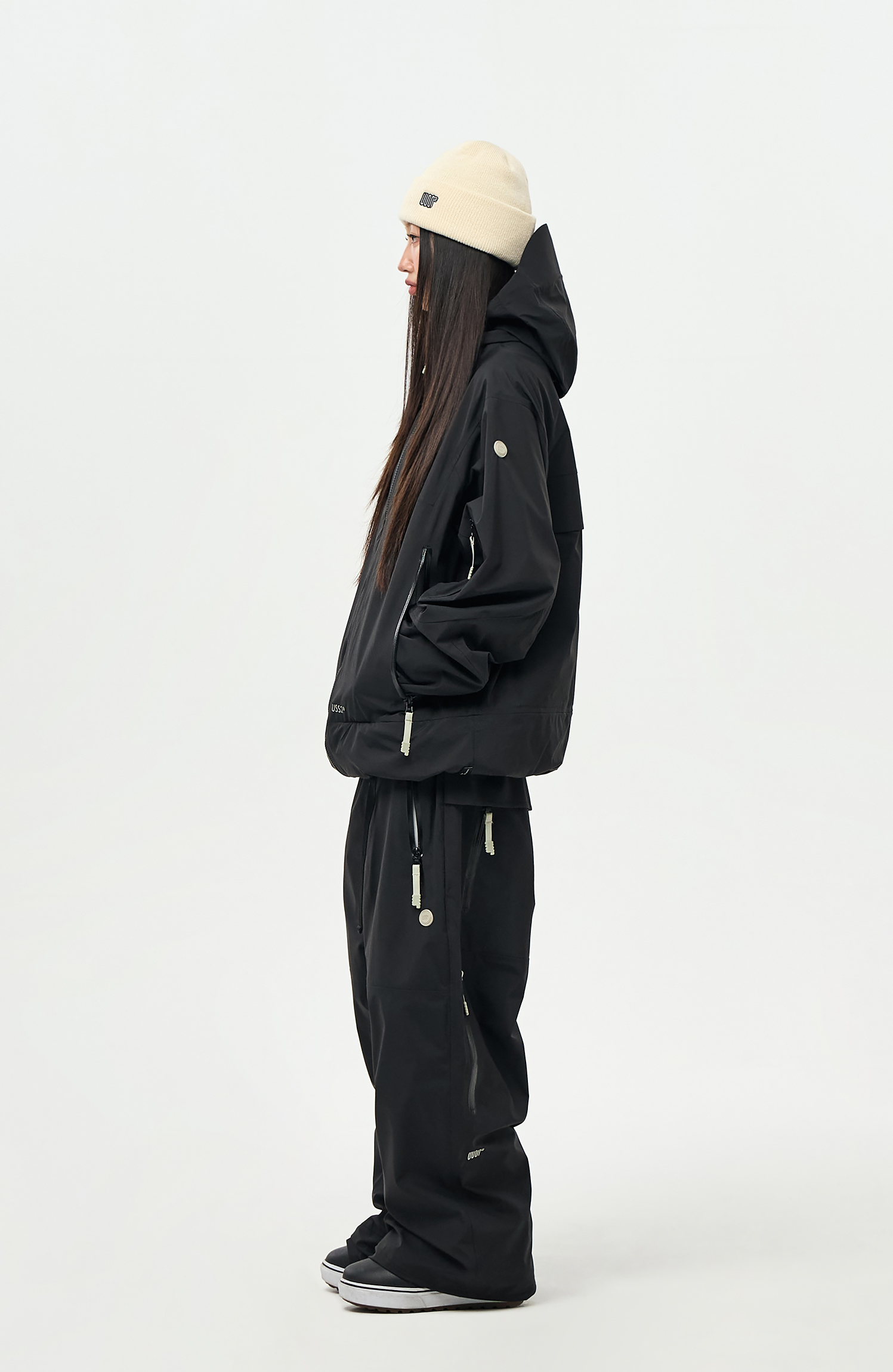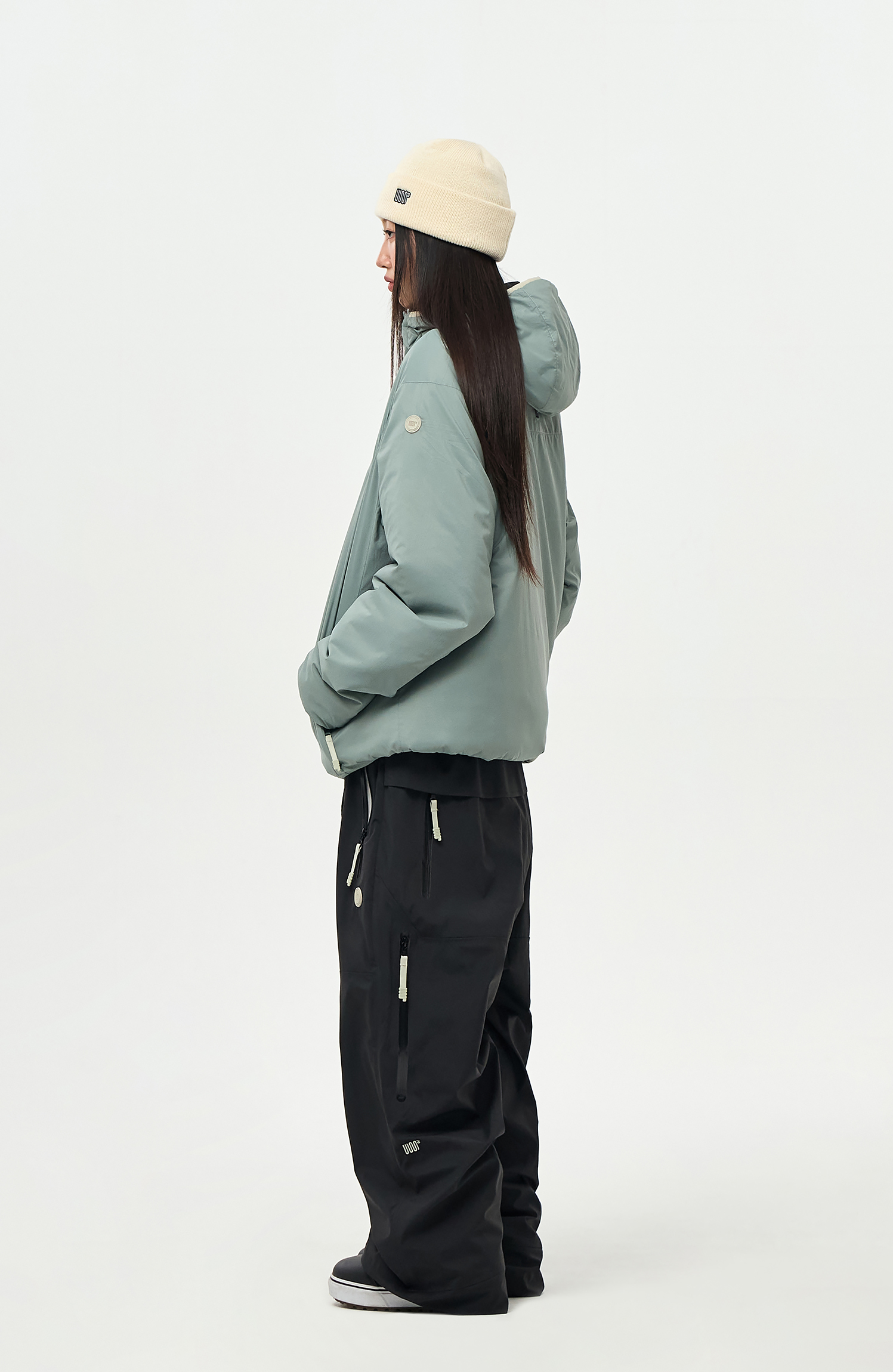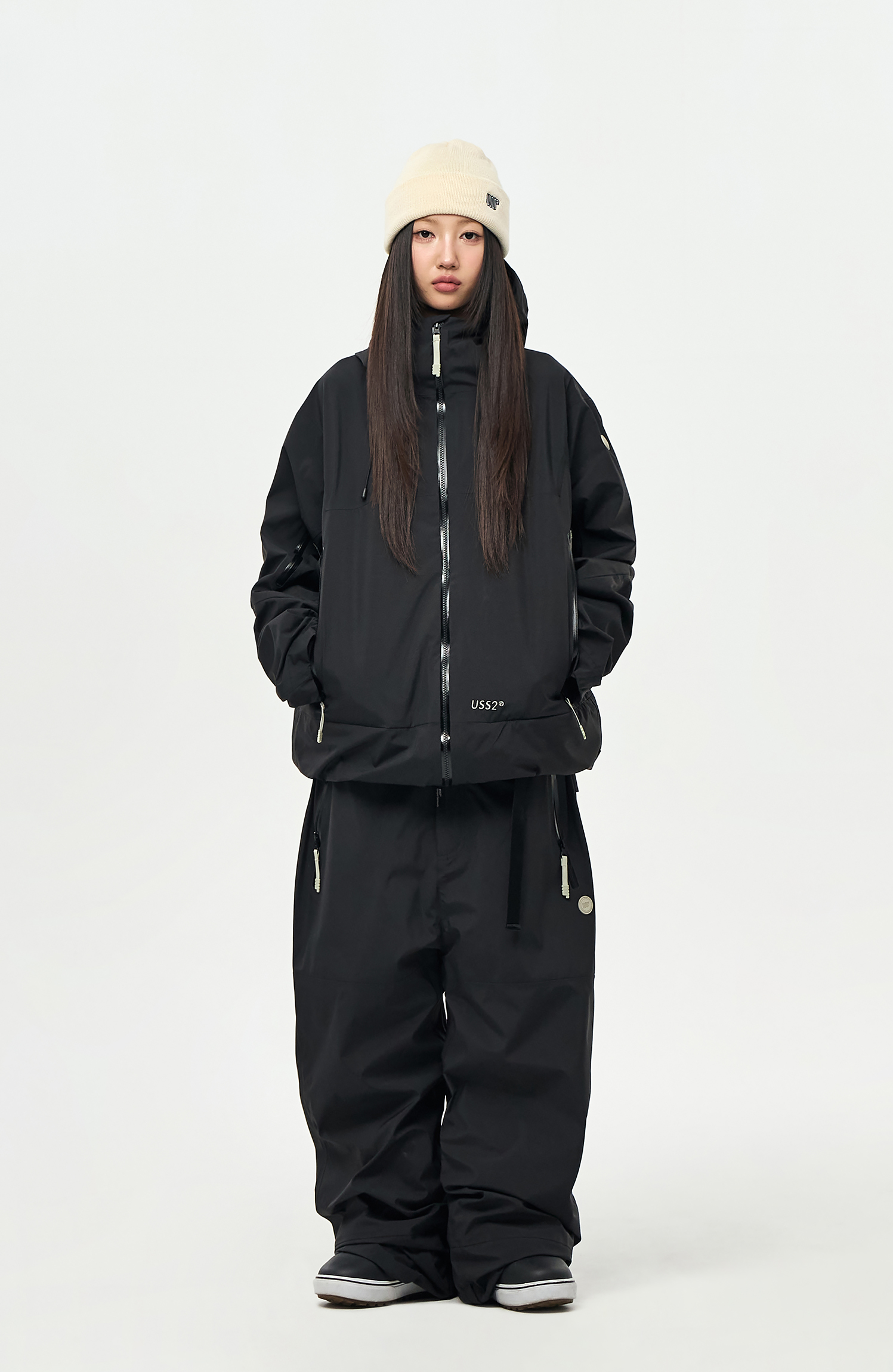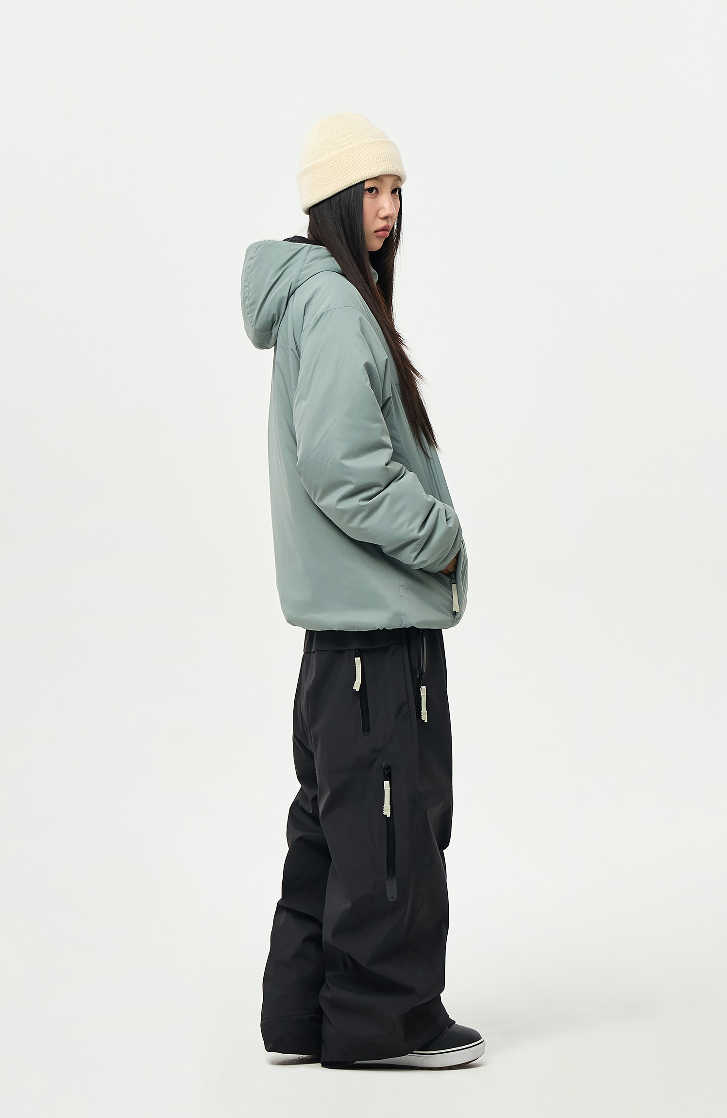내부에 눈의 유입을 차단할 수 있도록 Powder skirt 와 Ankle Gaiters 를 부착하였으며,