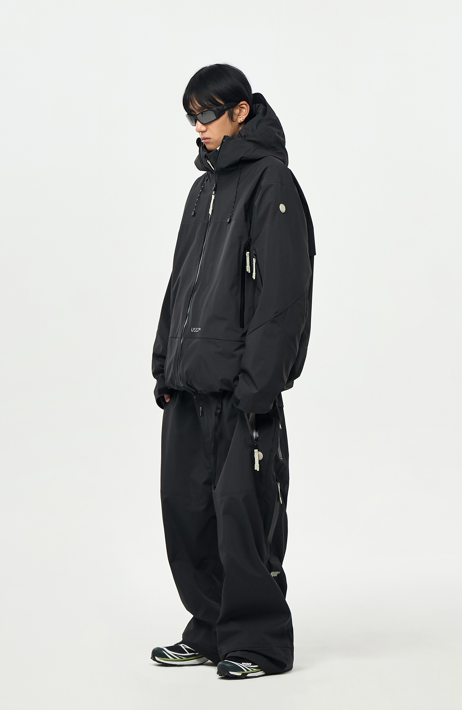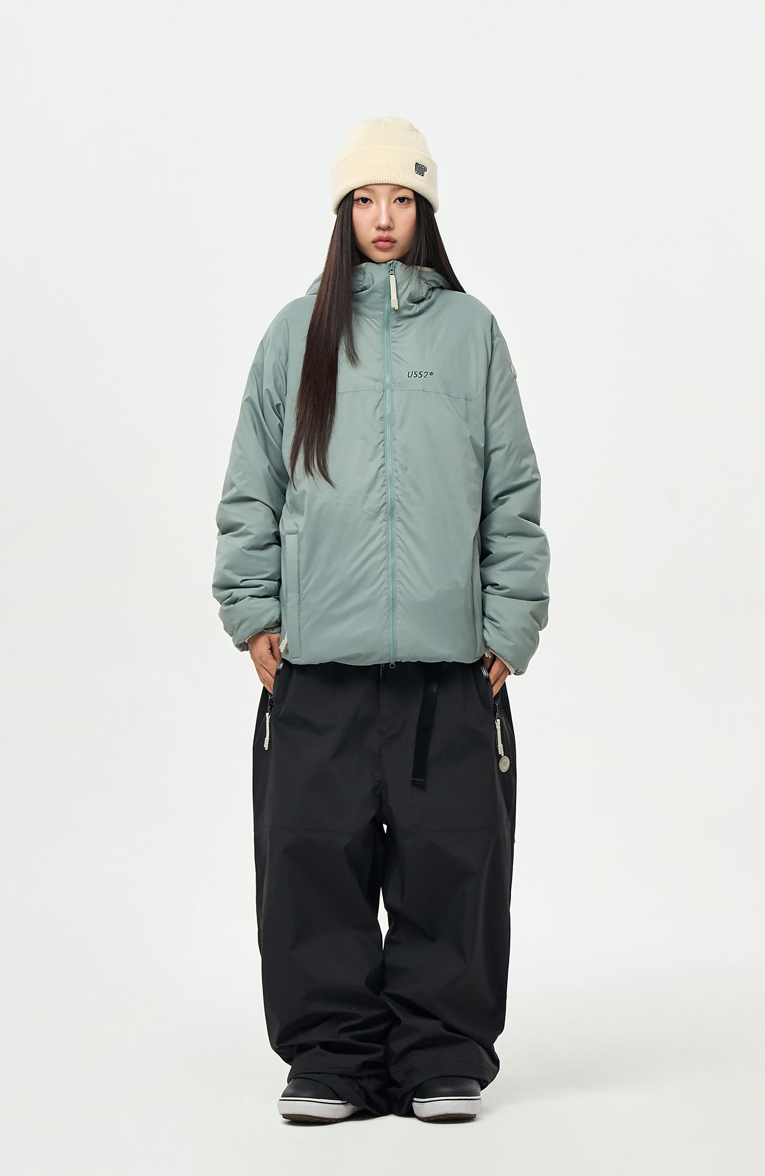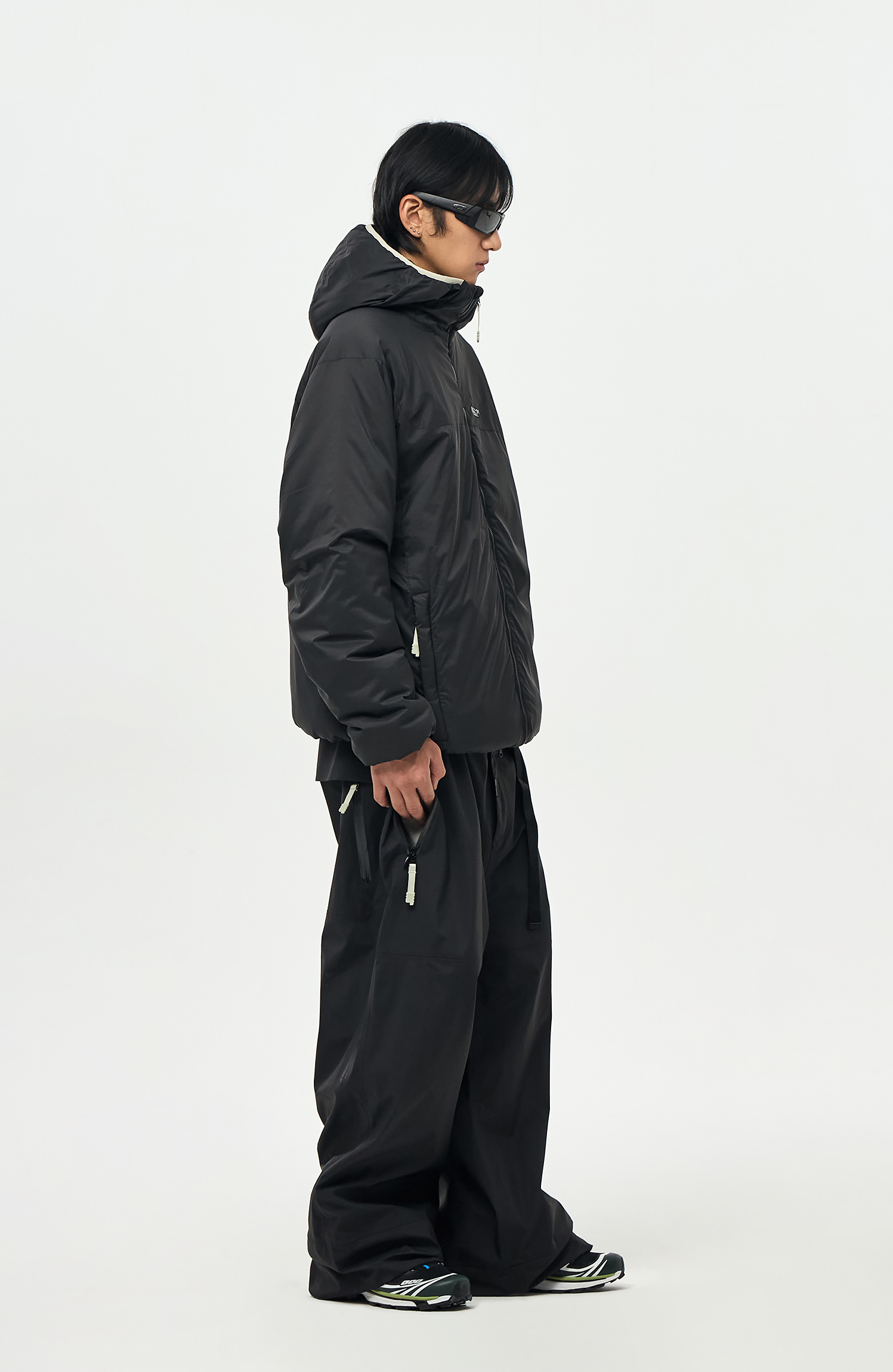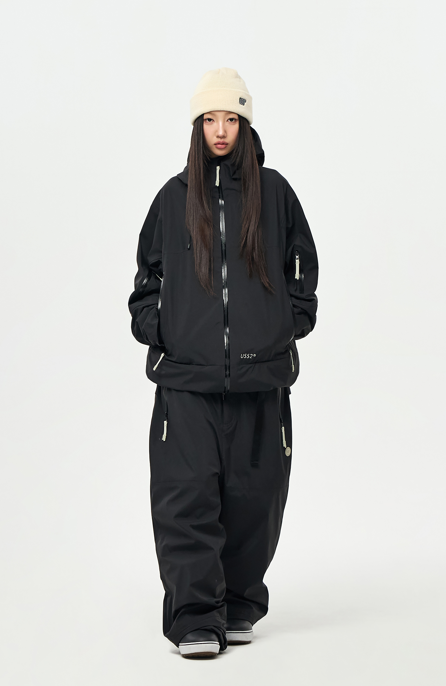 밑단에는 스트링/스토퍼와 지퍼로 사이즈 조절이 가능하여 다양한 연출이 가능합니다.