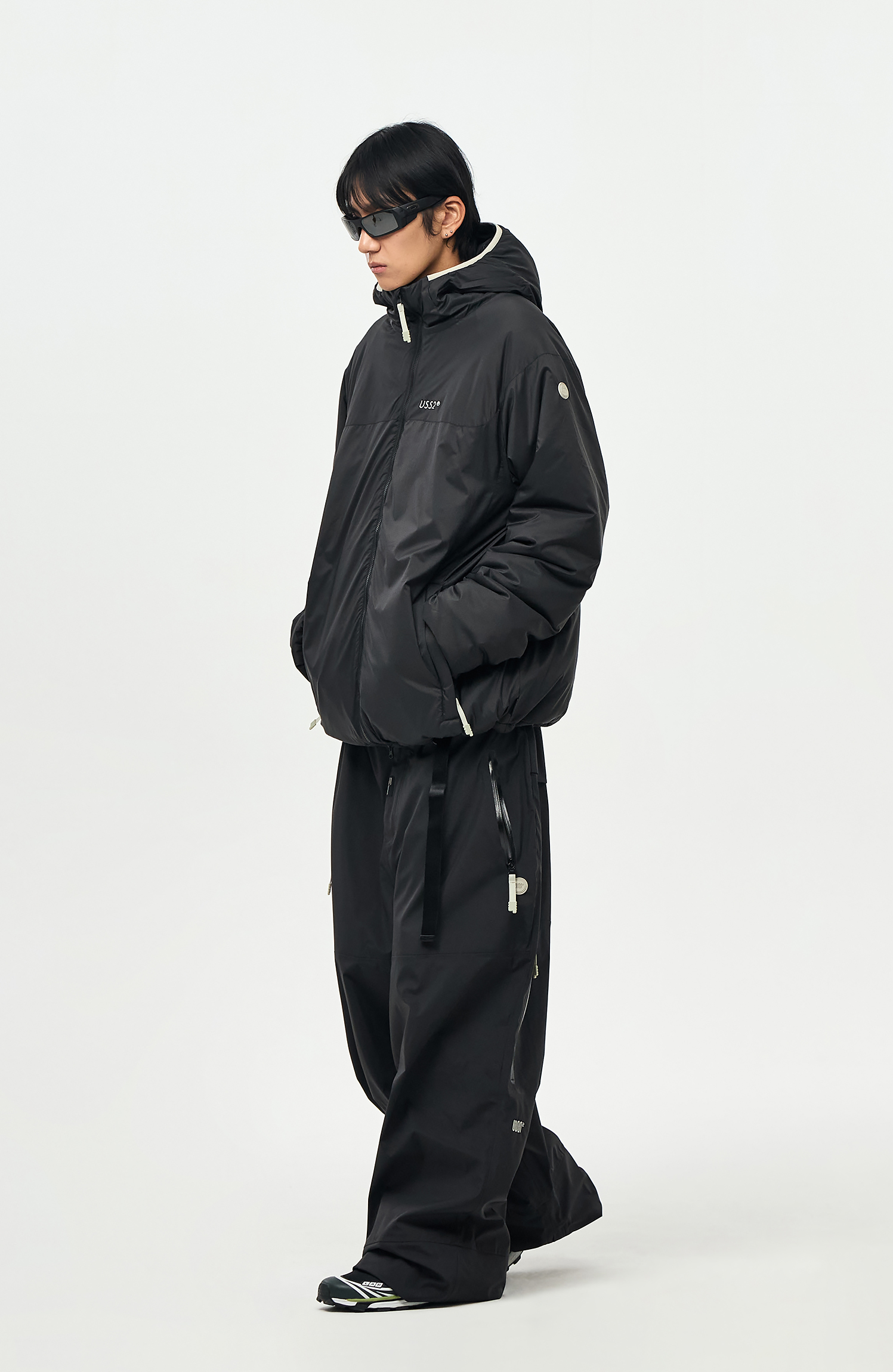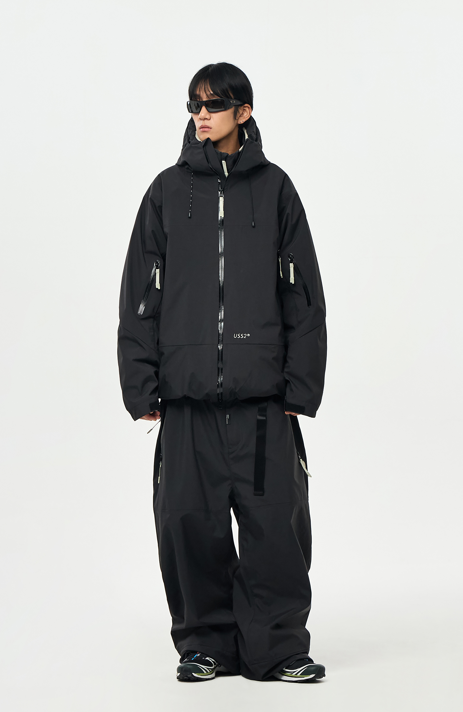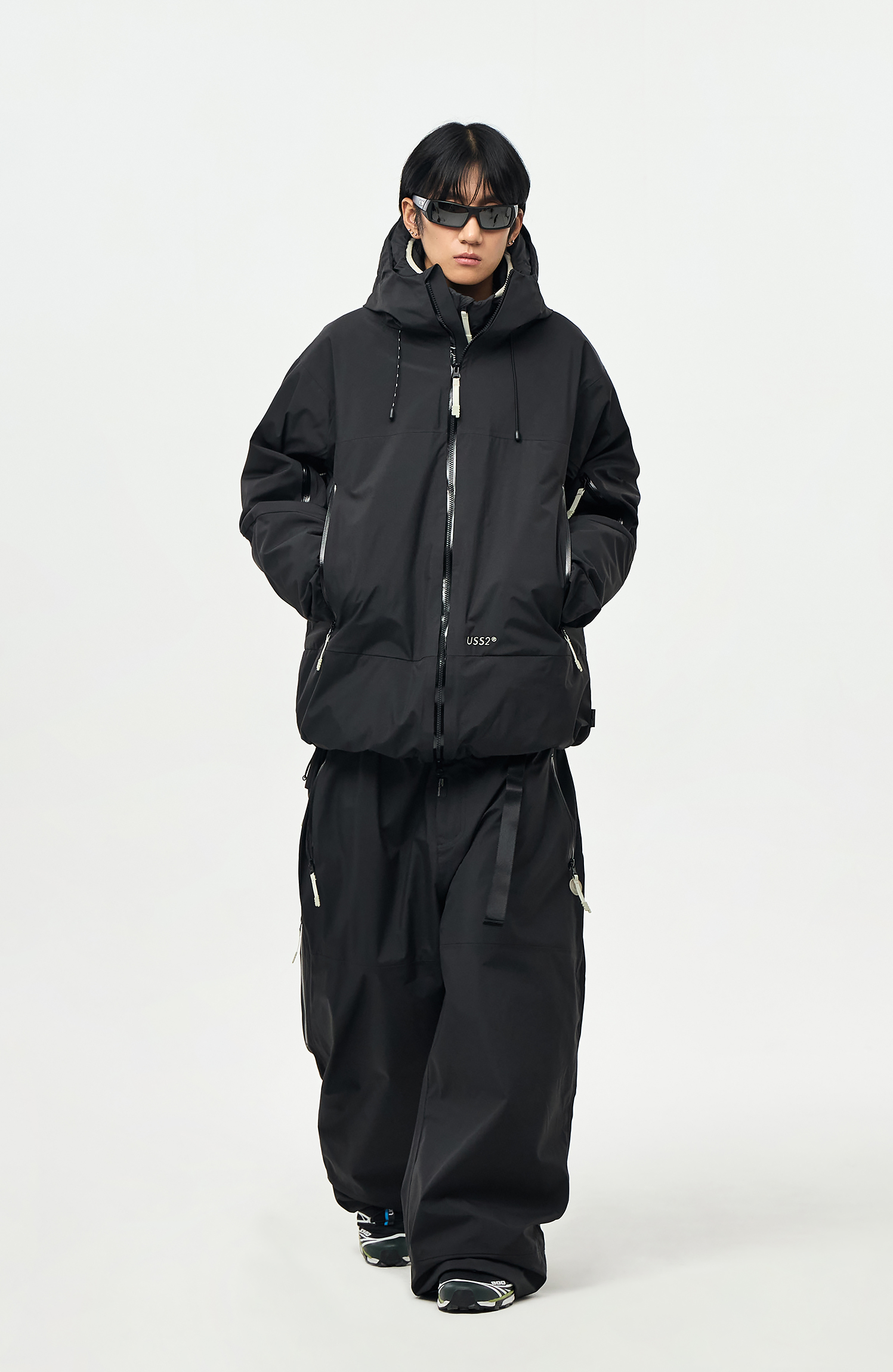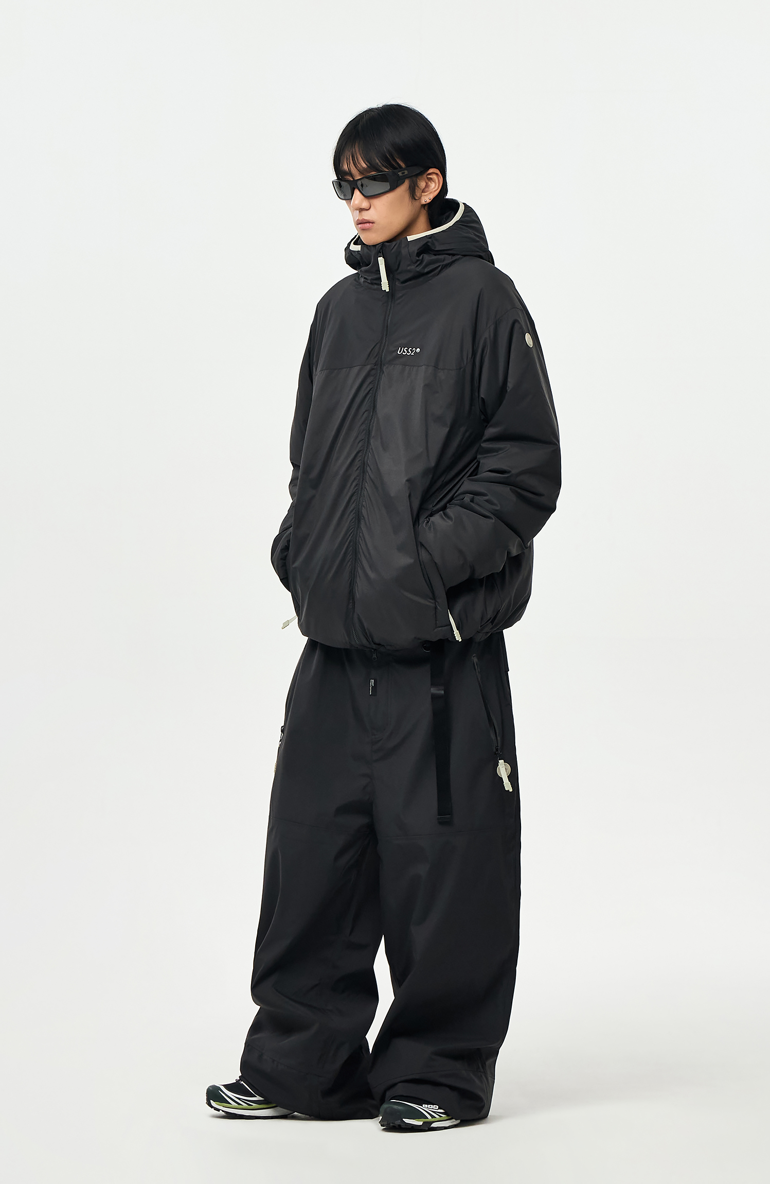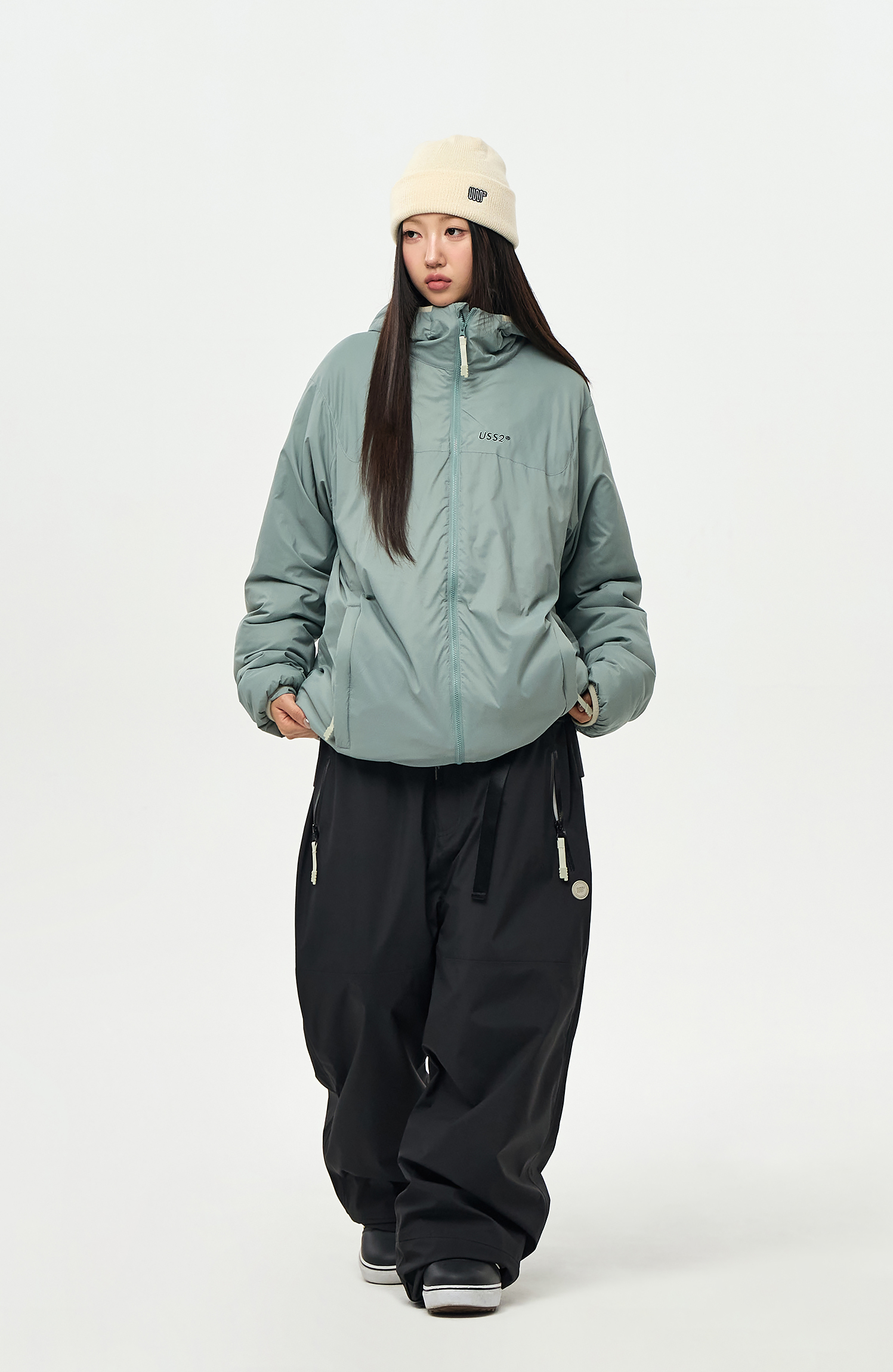 밑단에는 스트링/스토퍼와 지퍼로 사이즈 조절이 가능하여 다양한 연출이 가능합니다.