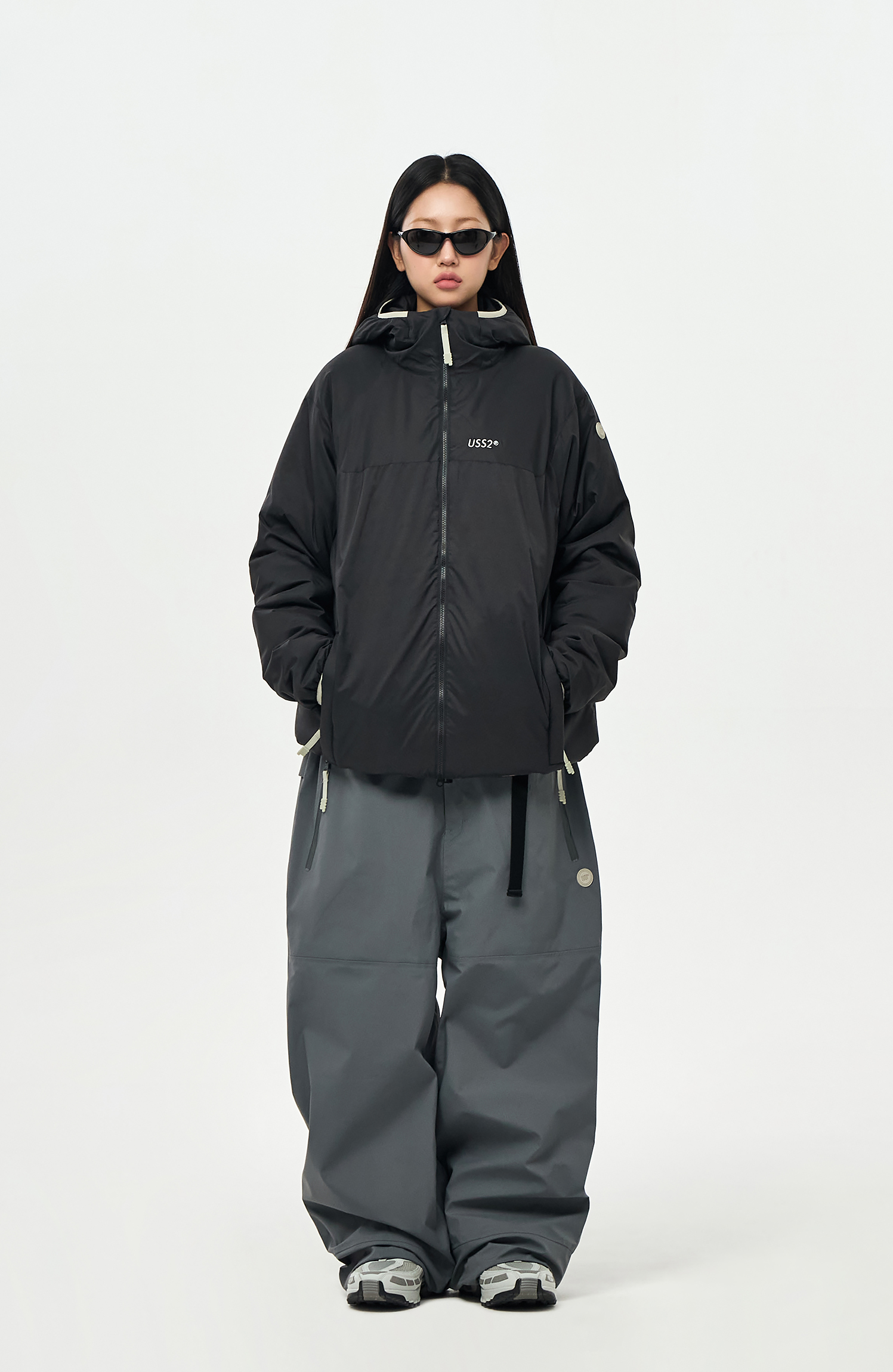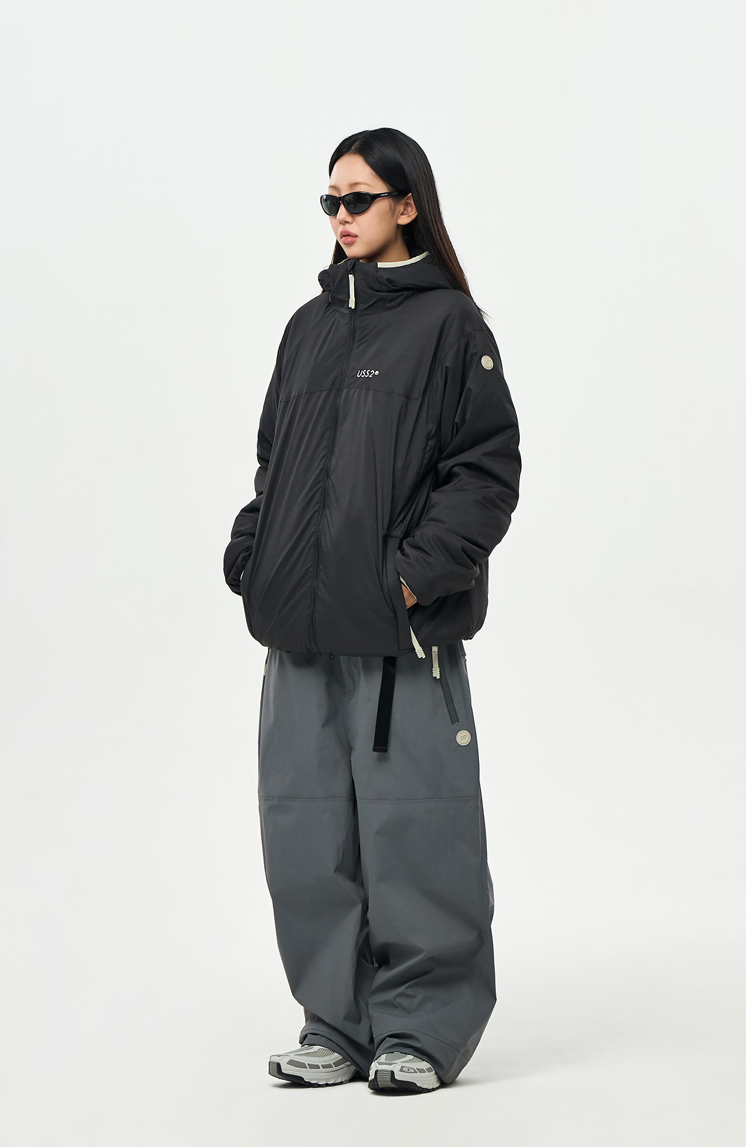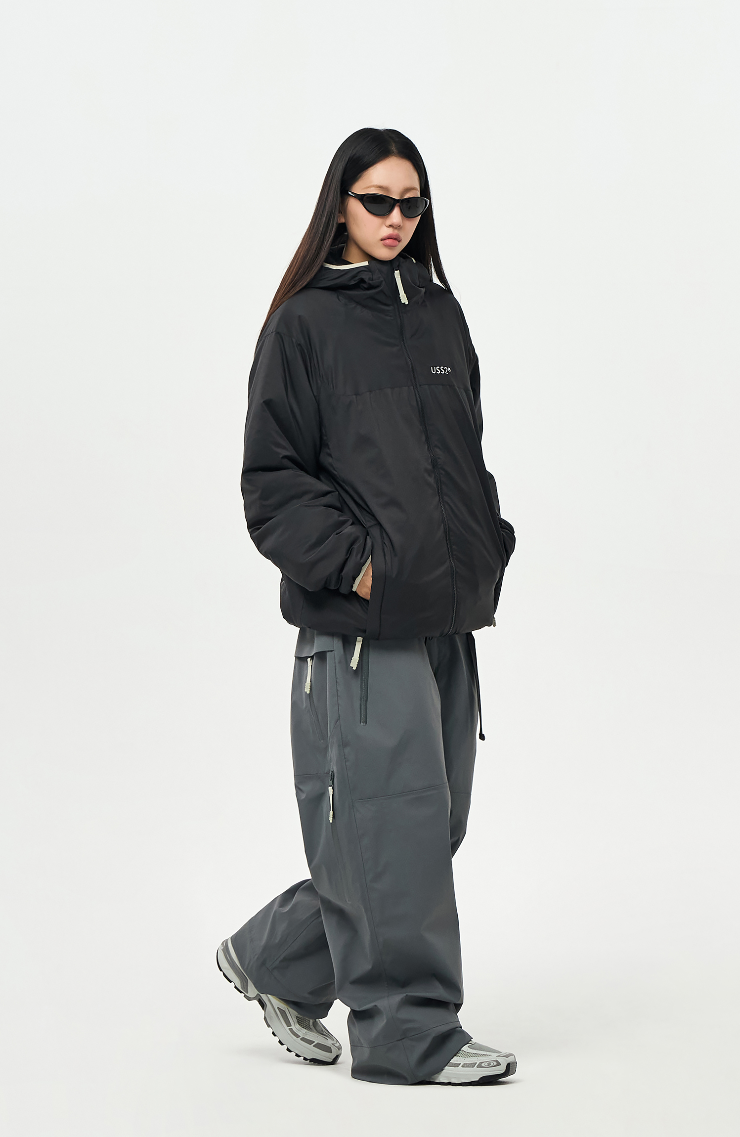 밑단에는 스트링/스토퍼와 지퍼로 사이즈 조절이 가능하여 다양한 연출이 가능합니다.