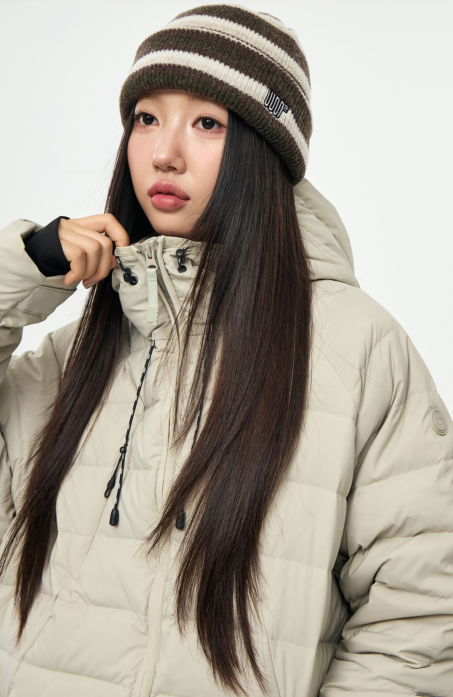 Duck Down 을 샌드위치 퀼팅 구조로 감싸, 가볍지만 우수한 보온성과 내구성을 모두 갖춘 다운입니다.