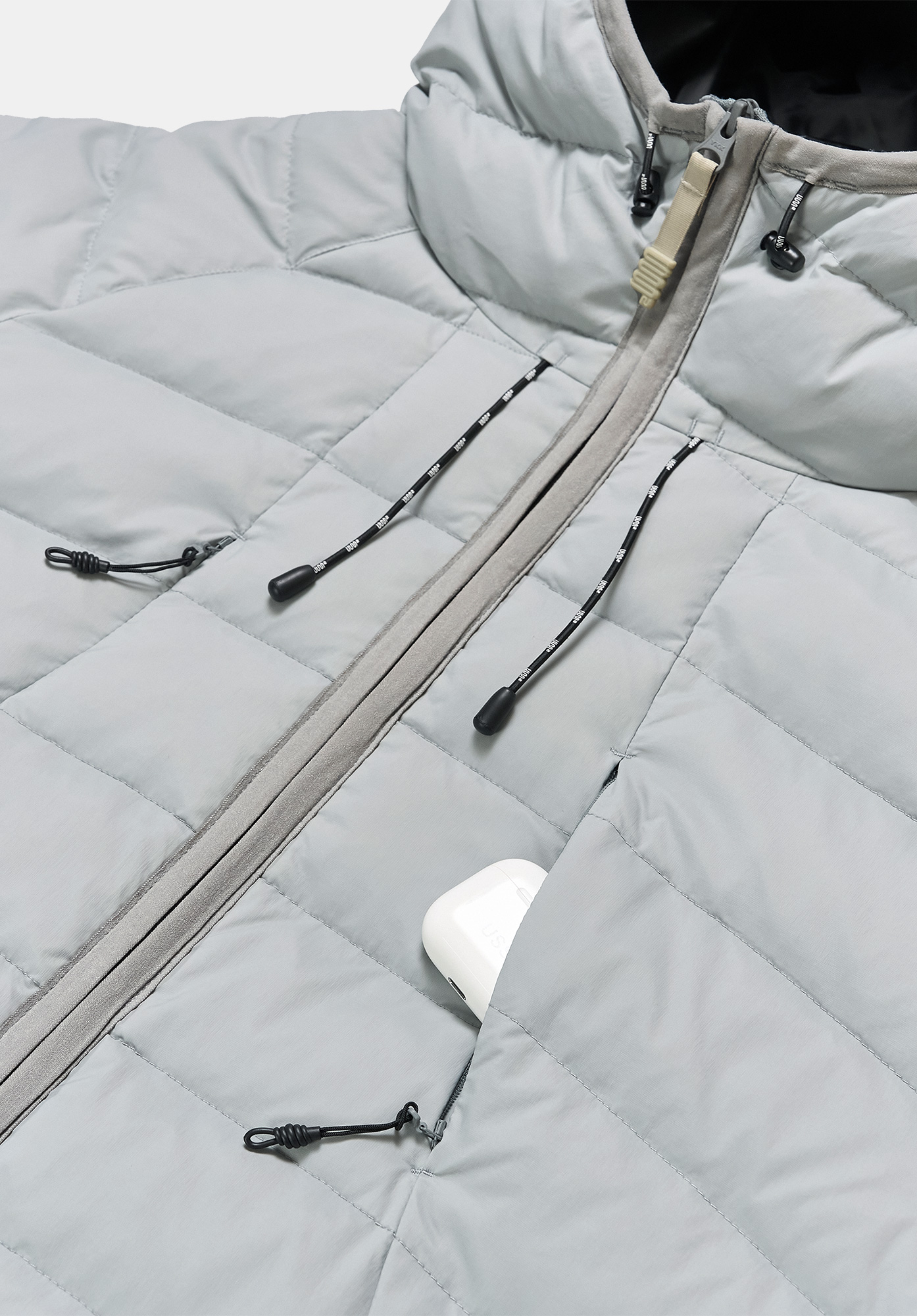 후드와 메인 지퍼 라인은 접밴드 마감으로 마무리해 외부 바람을 효과적으로 차단하며, 밑단의 스트링과 스토퍼 조절 기능으로 착용자의 취향에 맞게 다양한 실루엣 연출이 가능합니다.