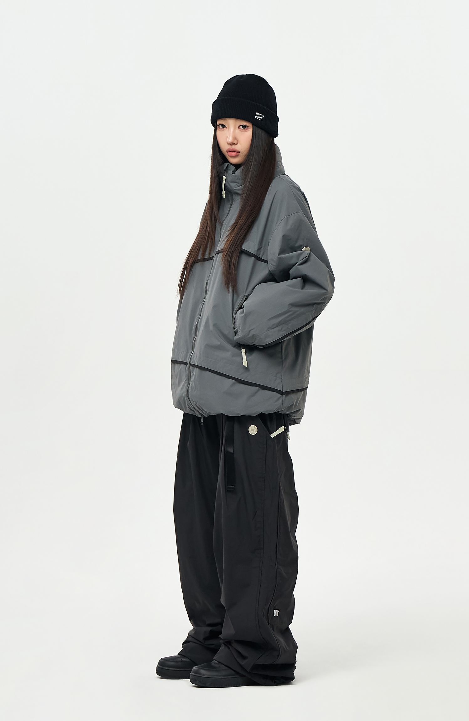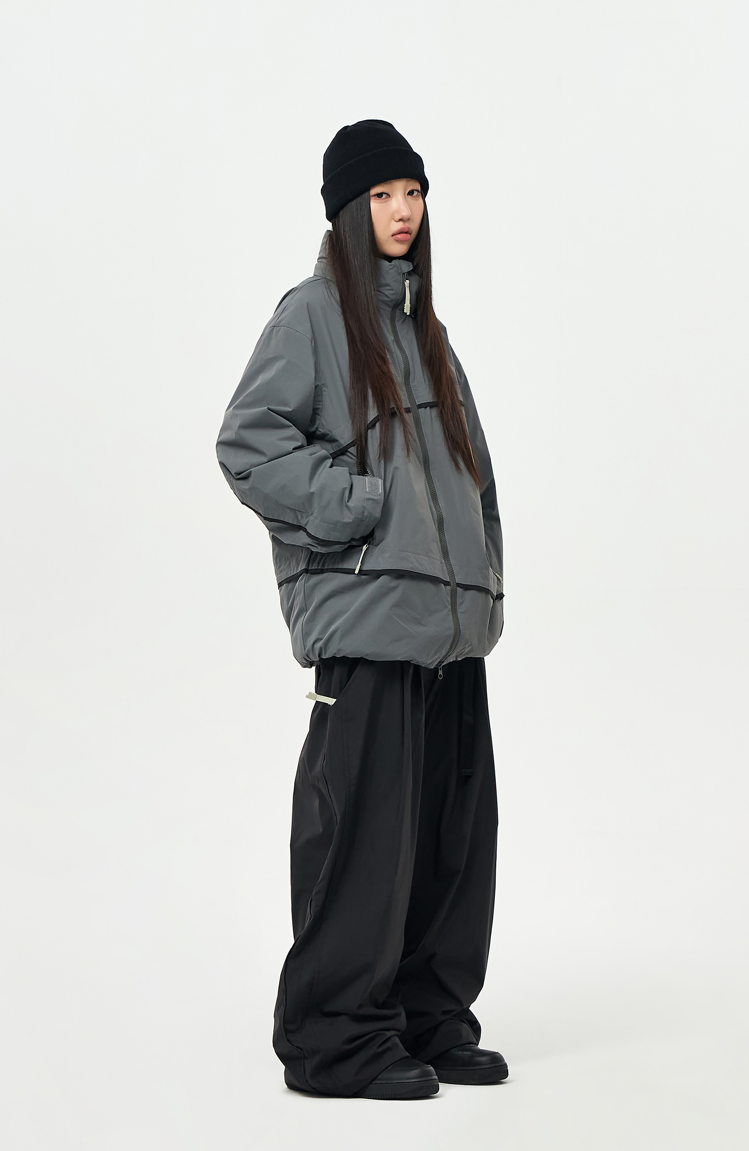 밑단 스트링과 스토퍼를 조절하여 다양한 실루엣을 연출할 수 있습니다.