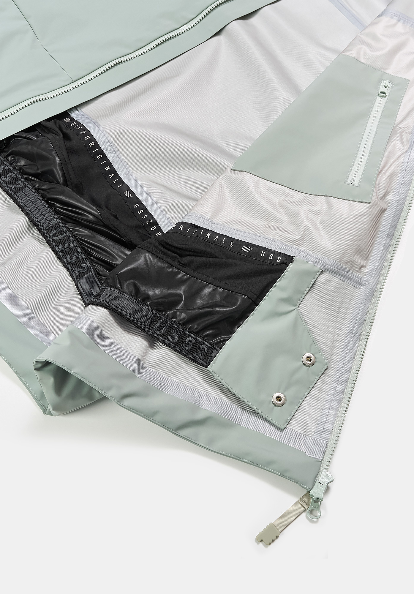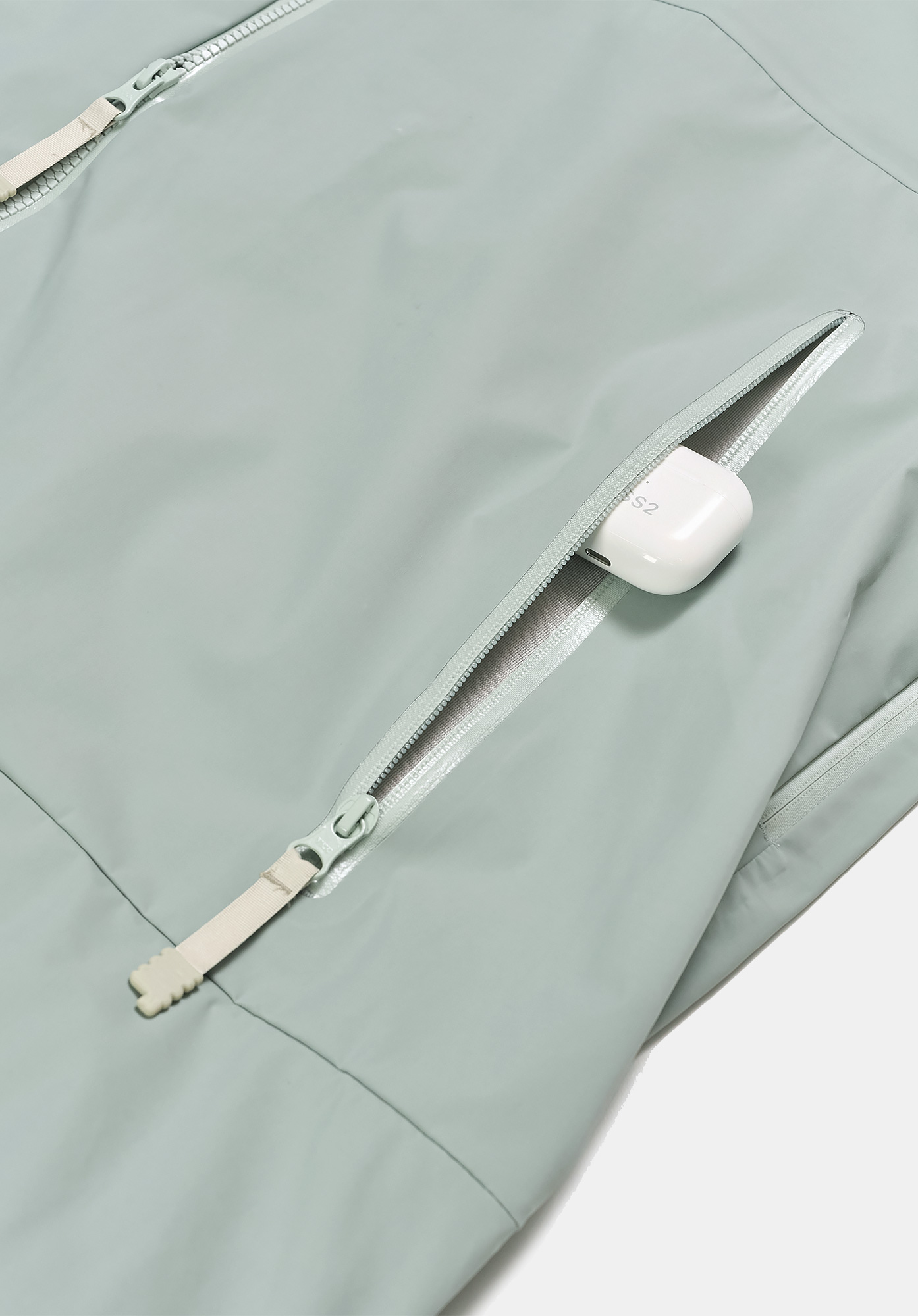 메인 부분에 적용된 YKK™ 2-way 방수 지퍼는 완벽한 방수성과 사용 편의성을 제공하며, 가슴과 양쪽 소매에 YKK™ 방수 지퍼 포켓을 배치해 실용성과 스타일을 동시에 잡았습니다.