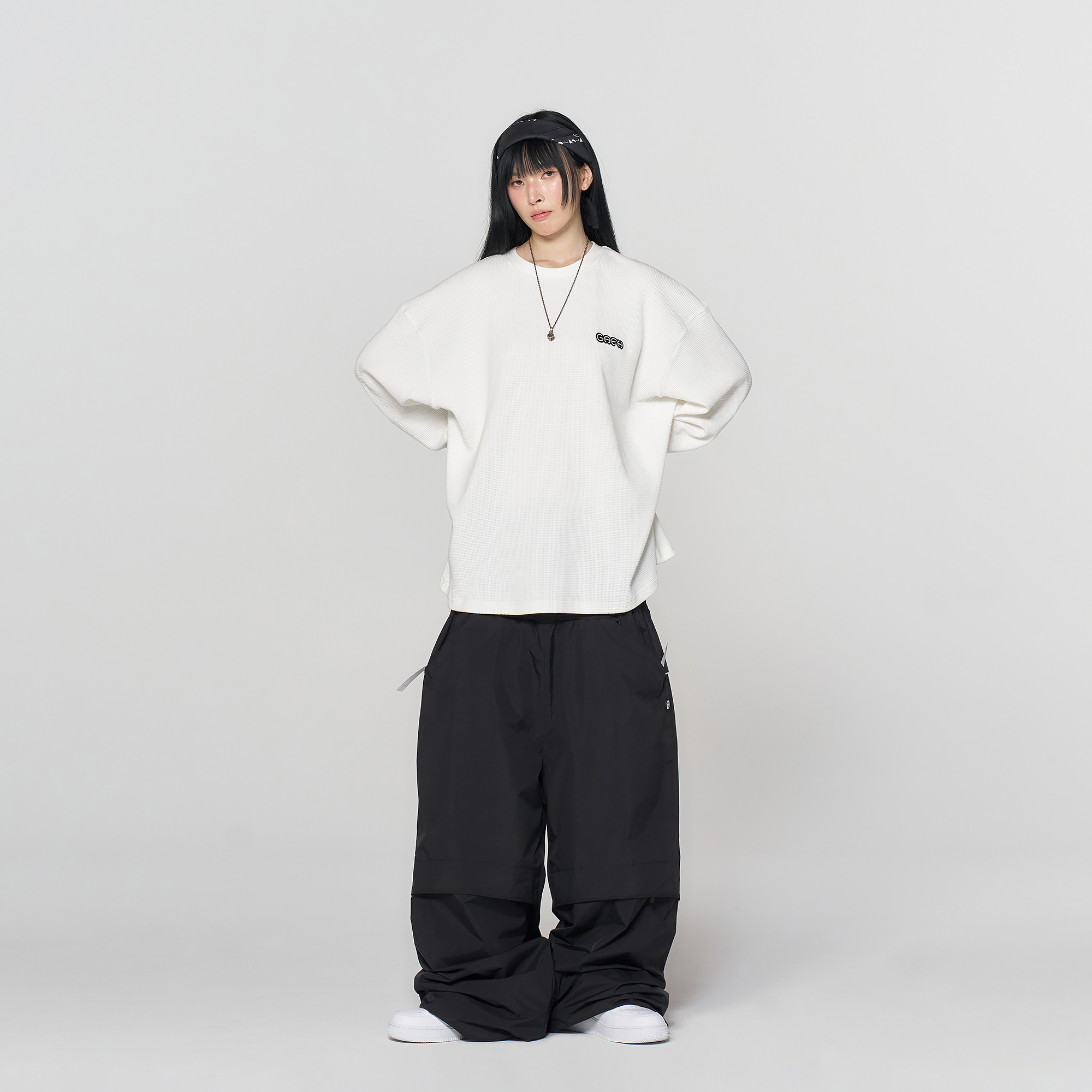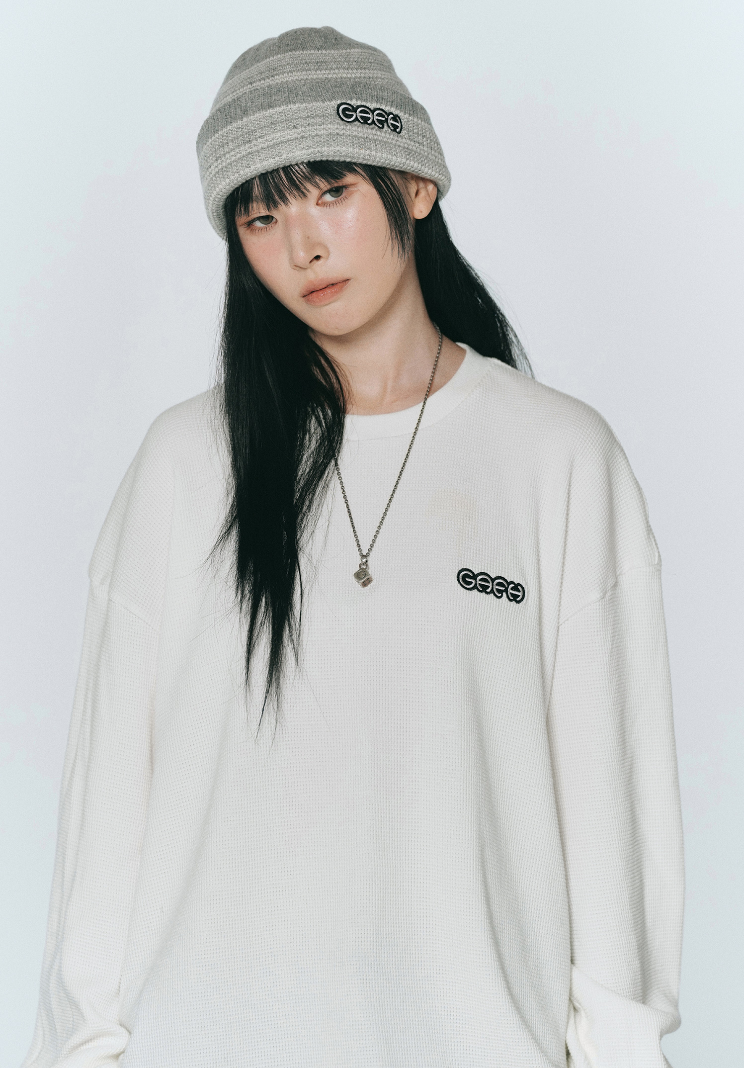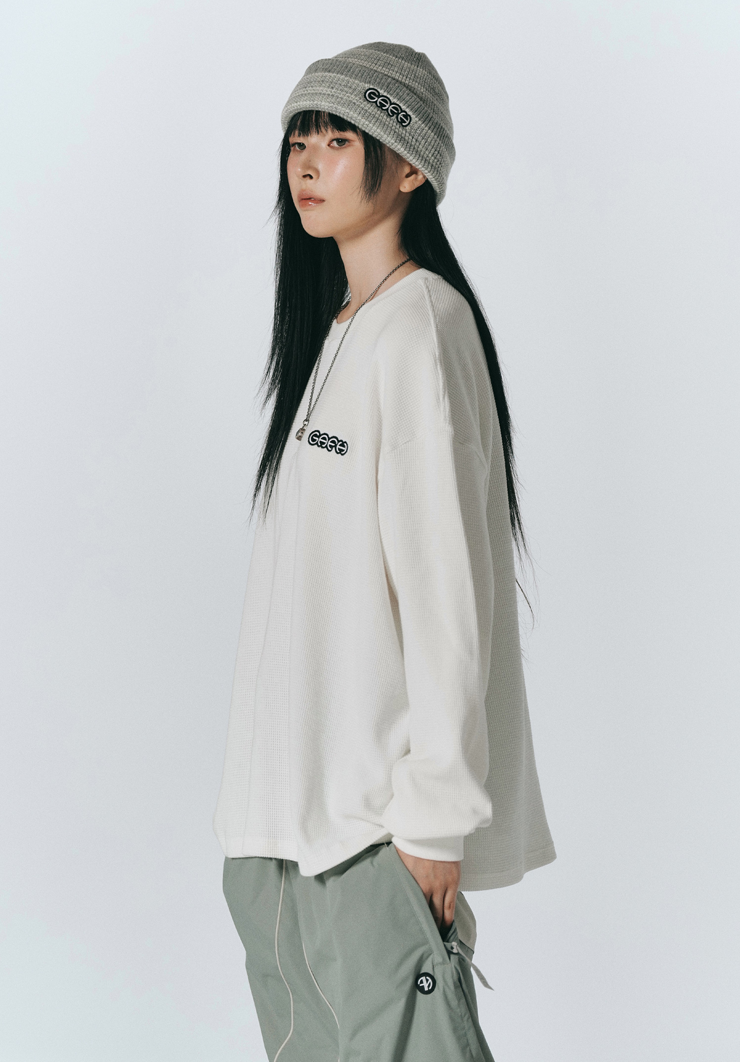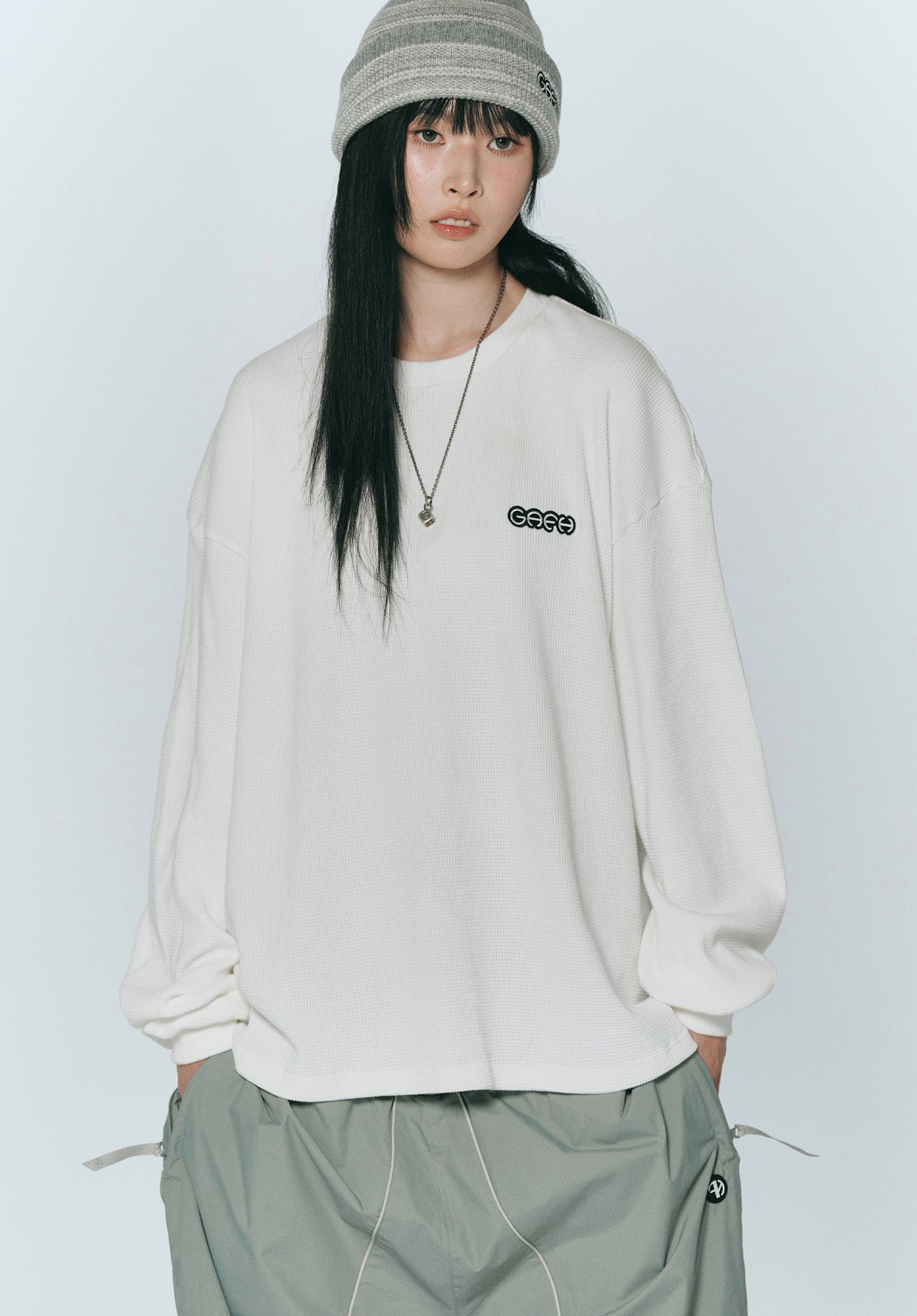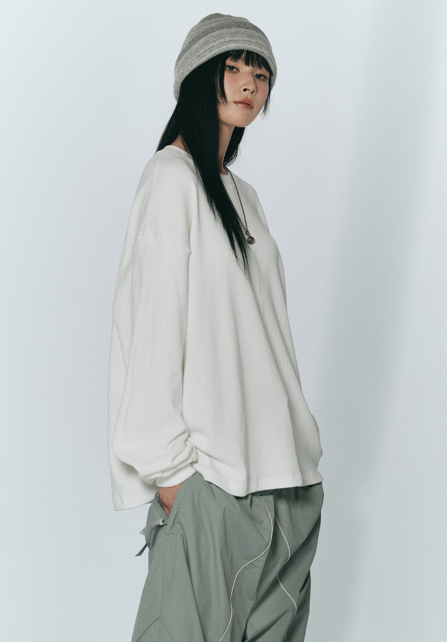 와플 조직의 텍스쳐가 돋보이는 롱 슬리브입니다.