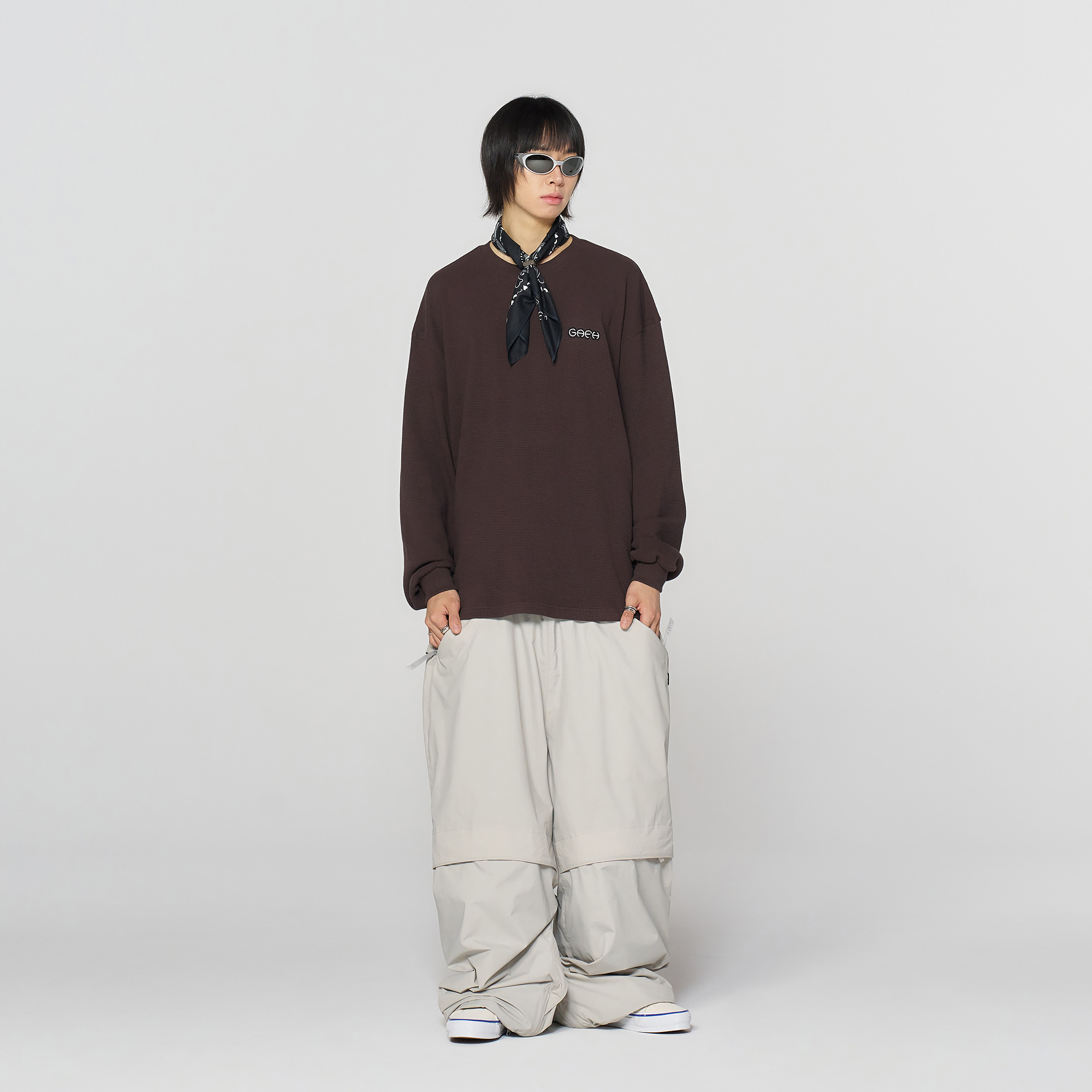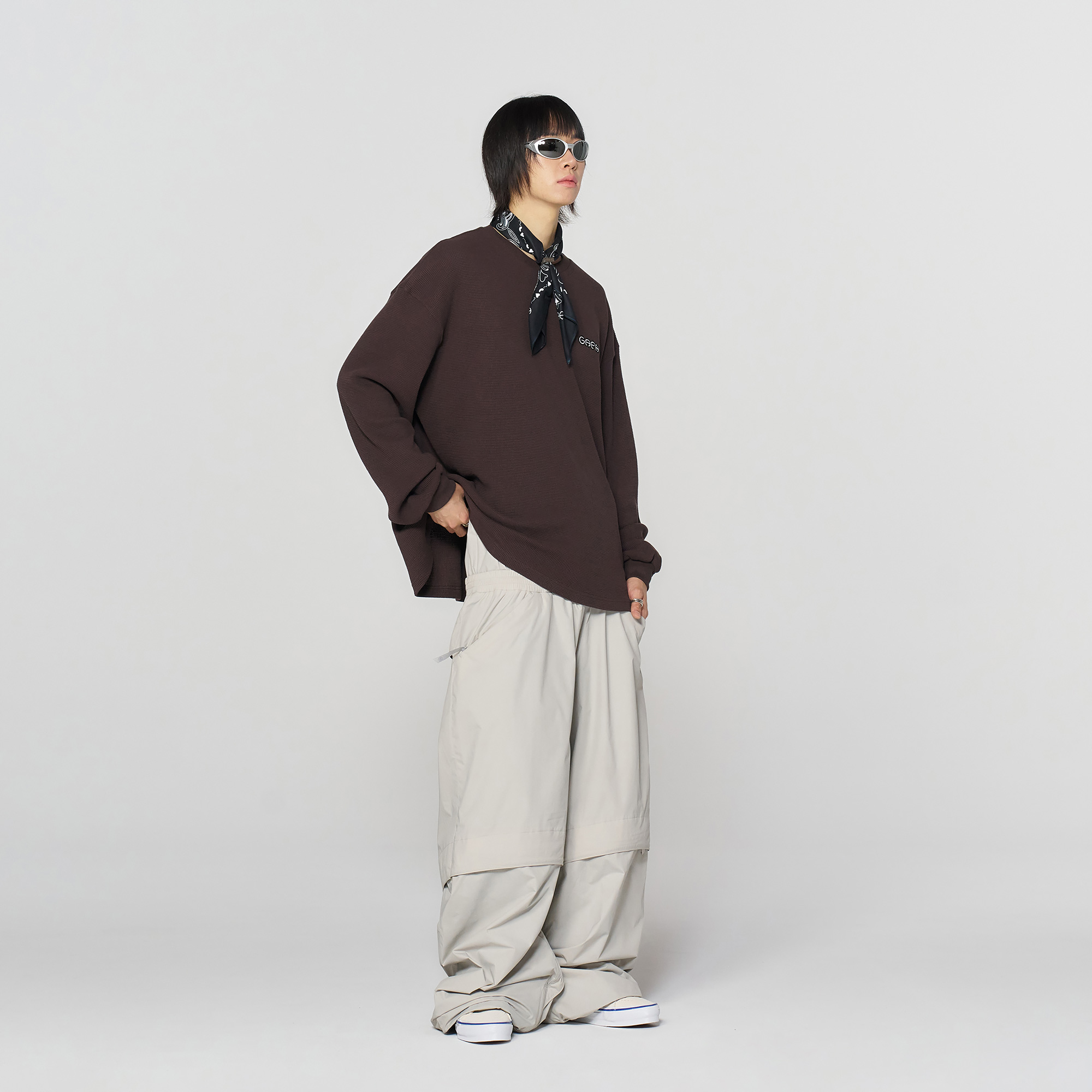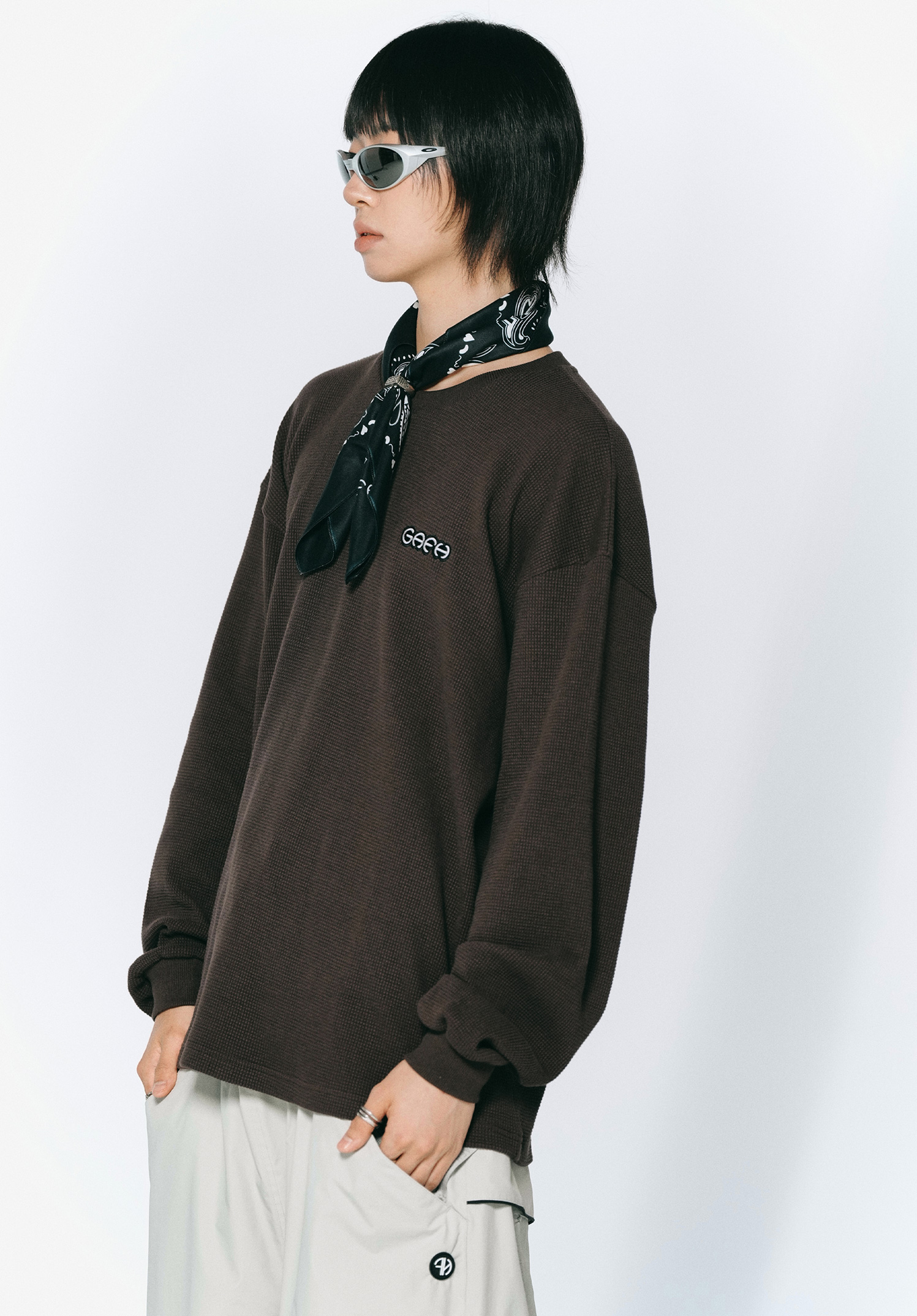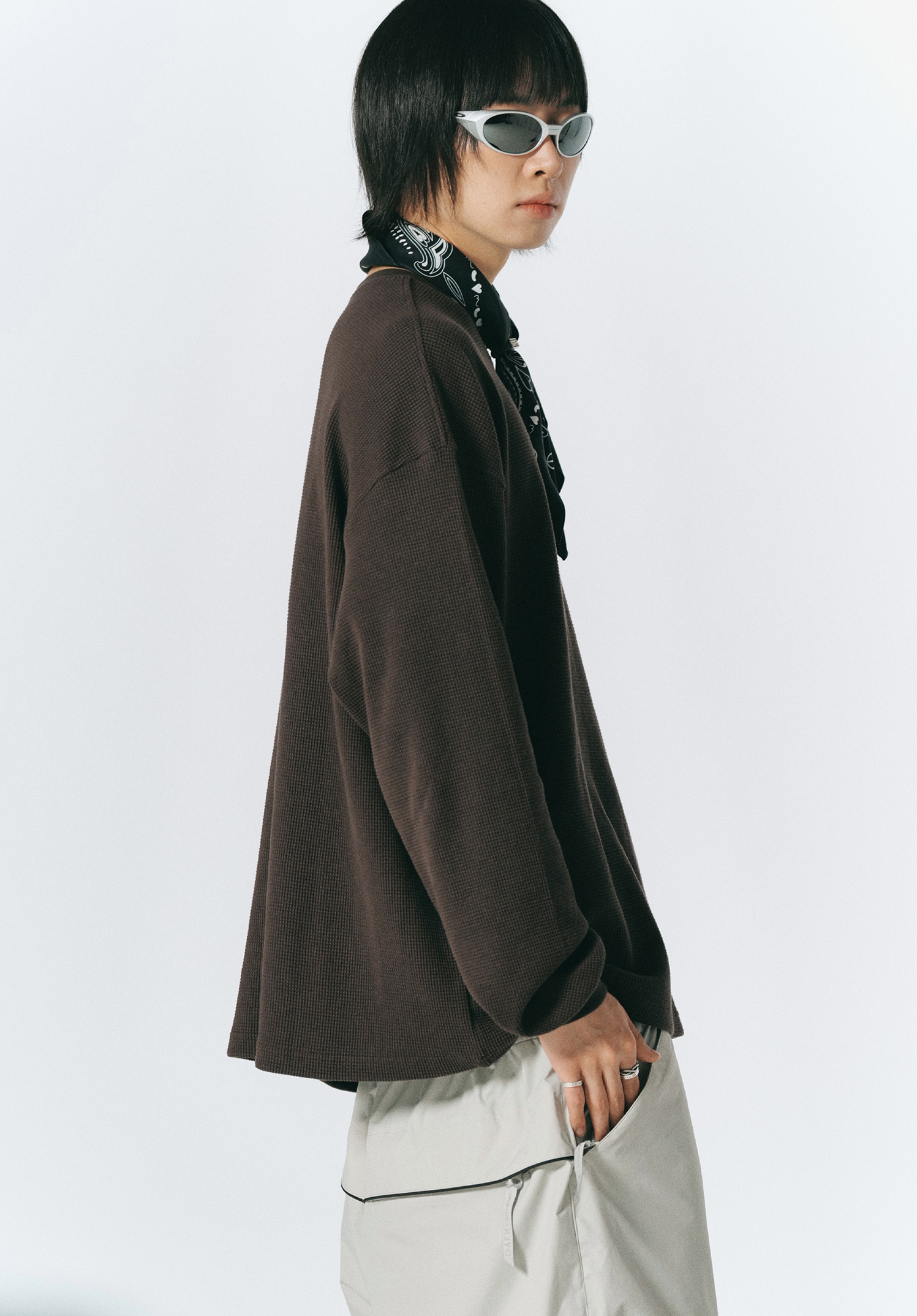 와플 조직의 텍스쳐가 돋보이는 롱 슬리브입니다.