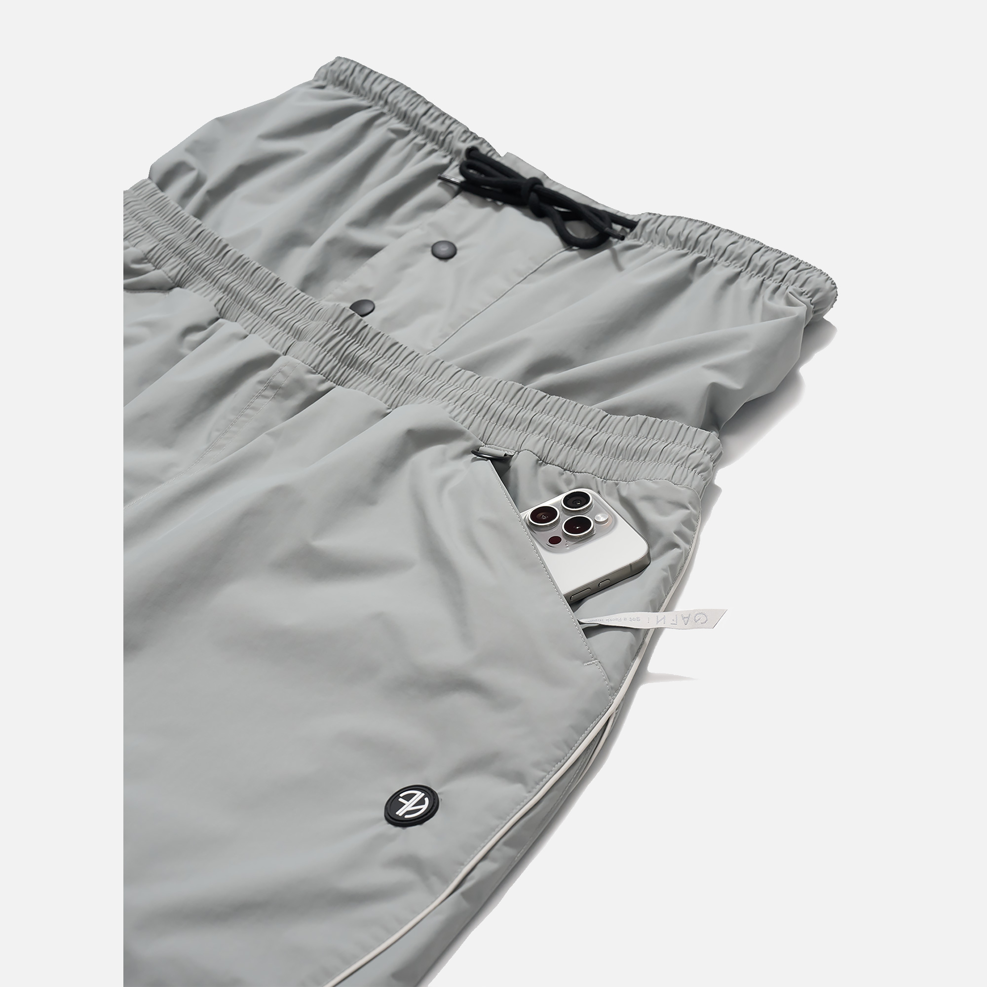 허리에는 엘라스틱 밴딩, 스트링/스토퍼가 이중으로 적용되어 다양한 체형에 적합합니다.