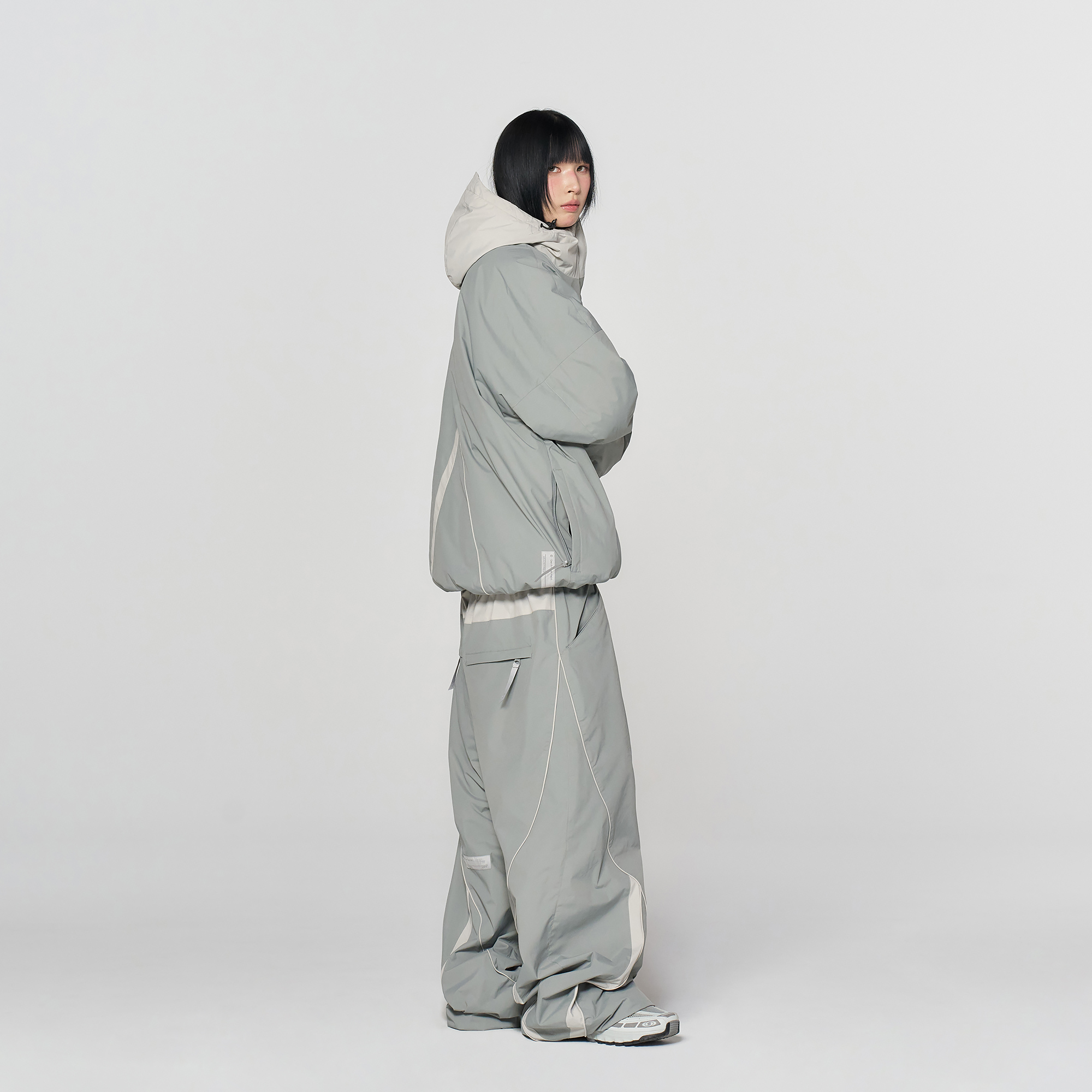 밑단의 스트링과 스토퍼 디테일로 실루엣을 자유롭게 조절해, 다양한 스타일링이 가능합니다.