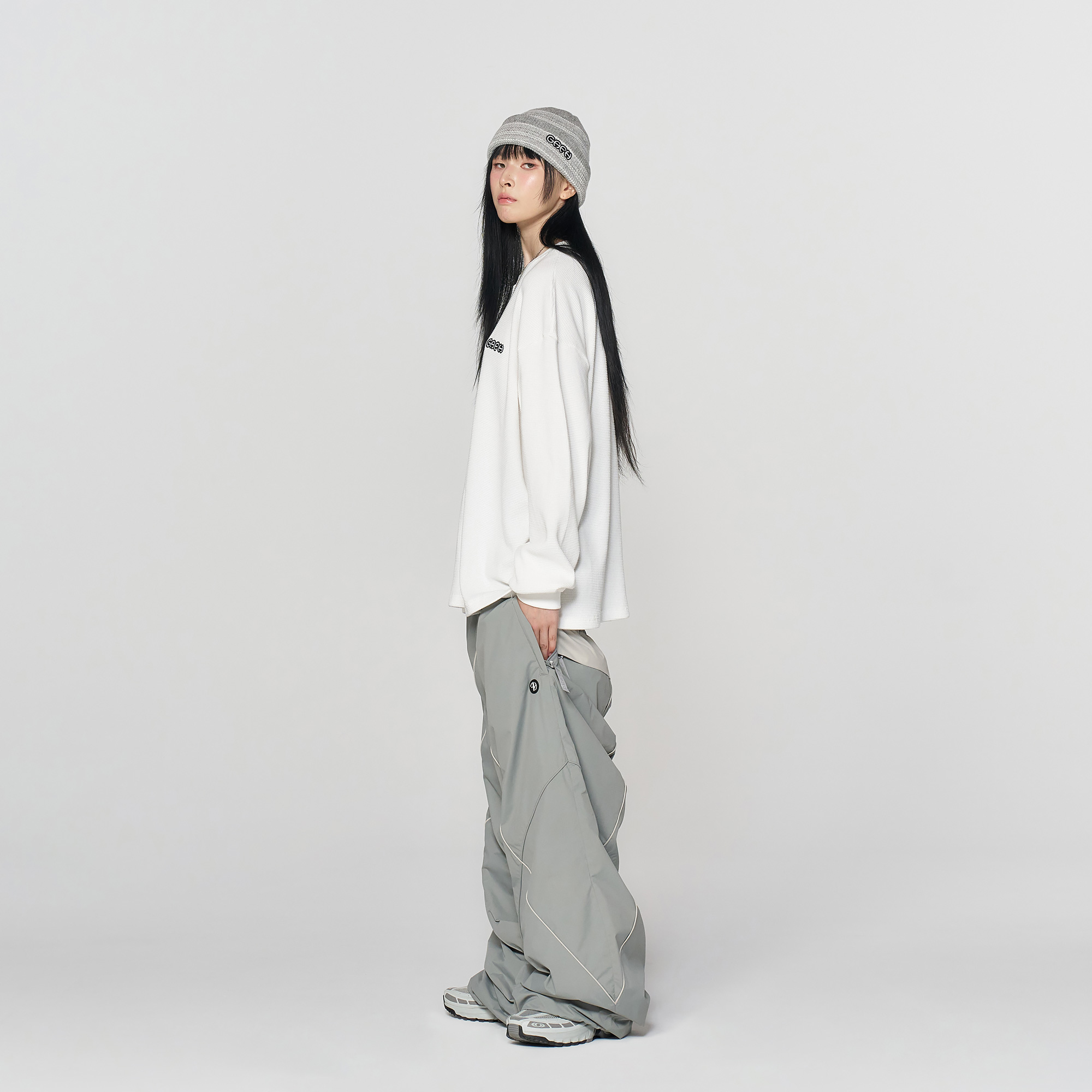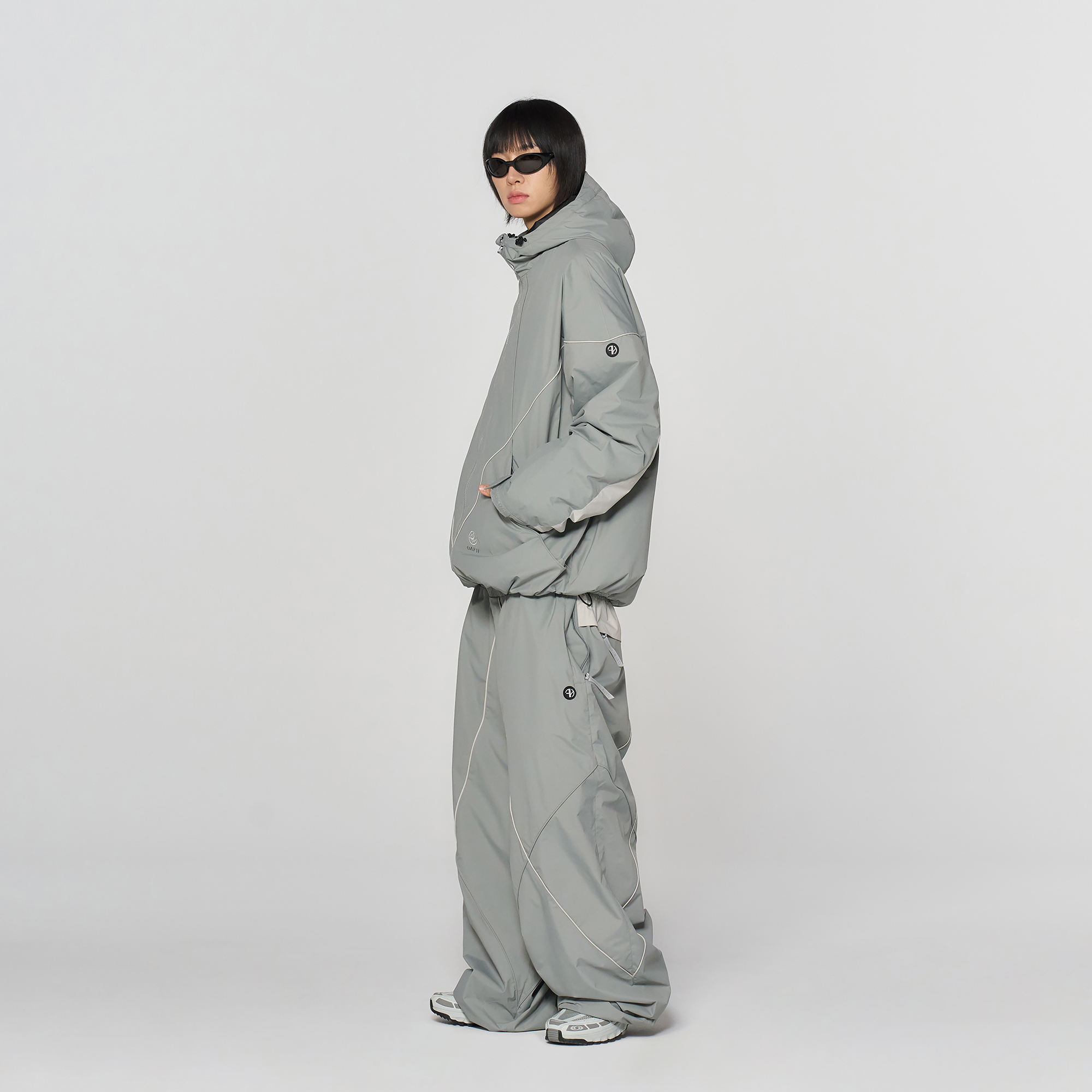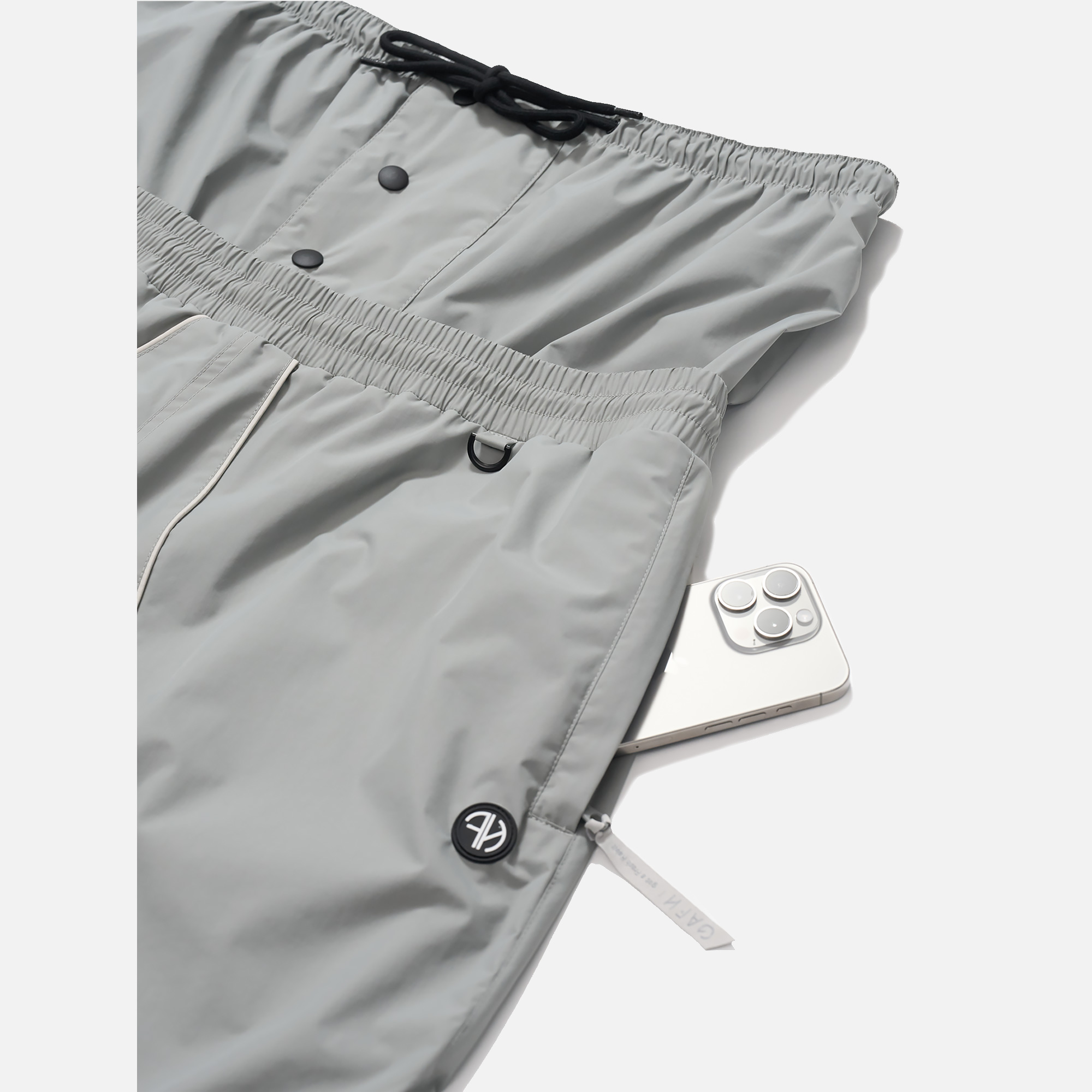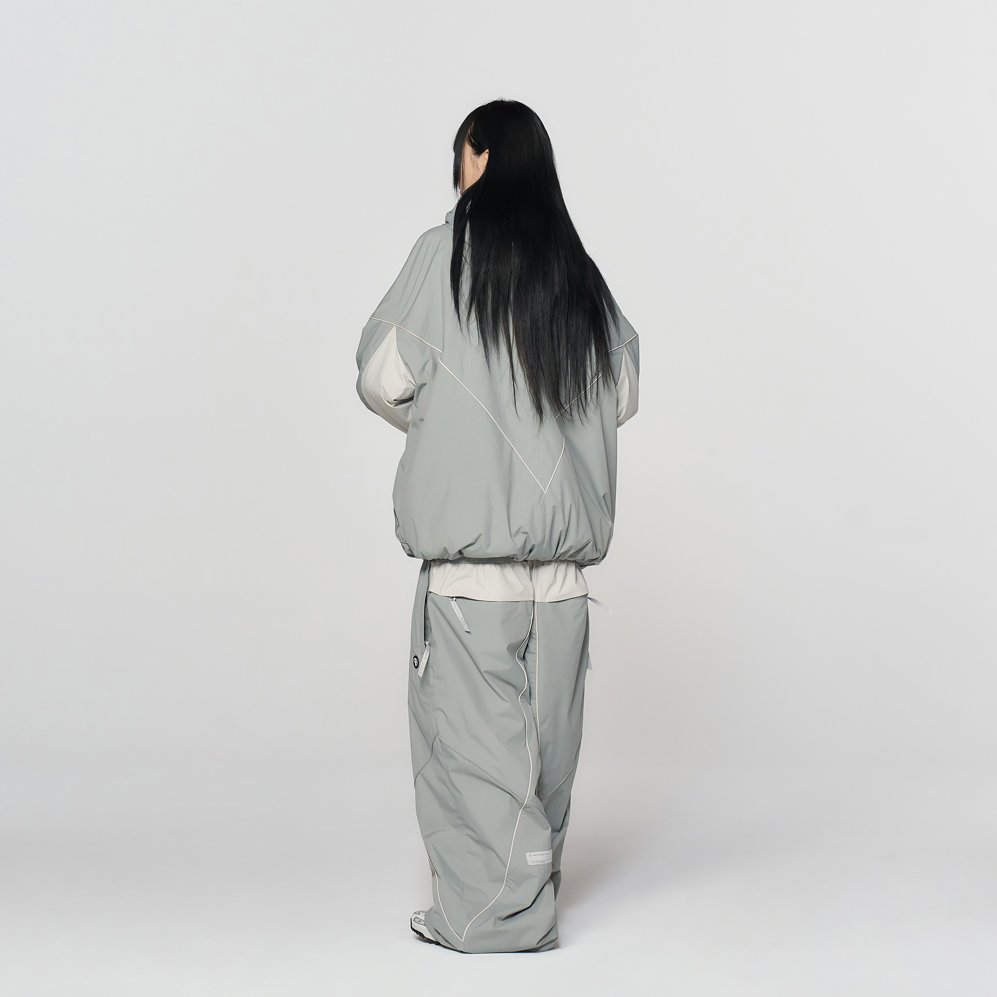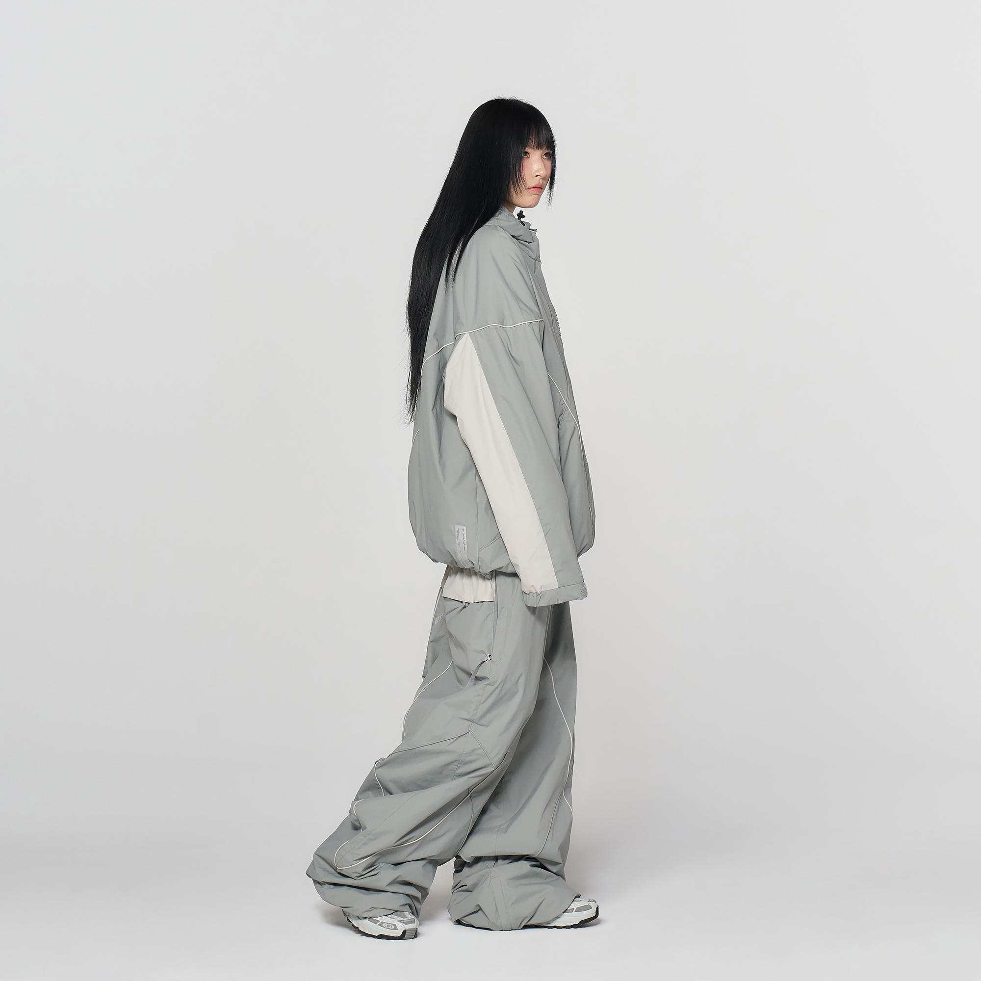 기능성 NYLON 소재를 사용한 와이드 핏의 팬츠로, 배색 파이핑 디테일로 포인트를 주었습니다.