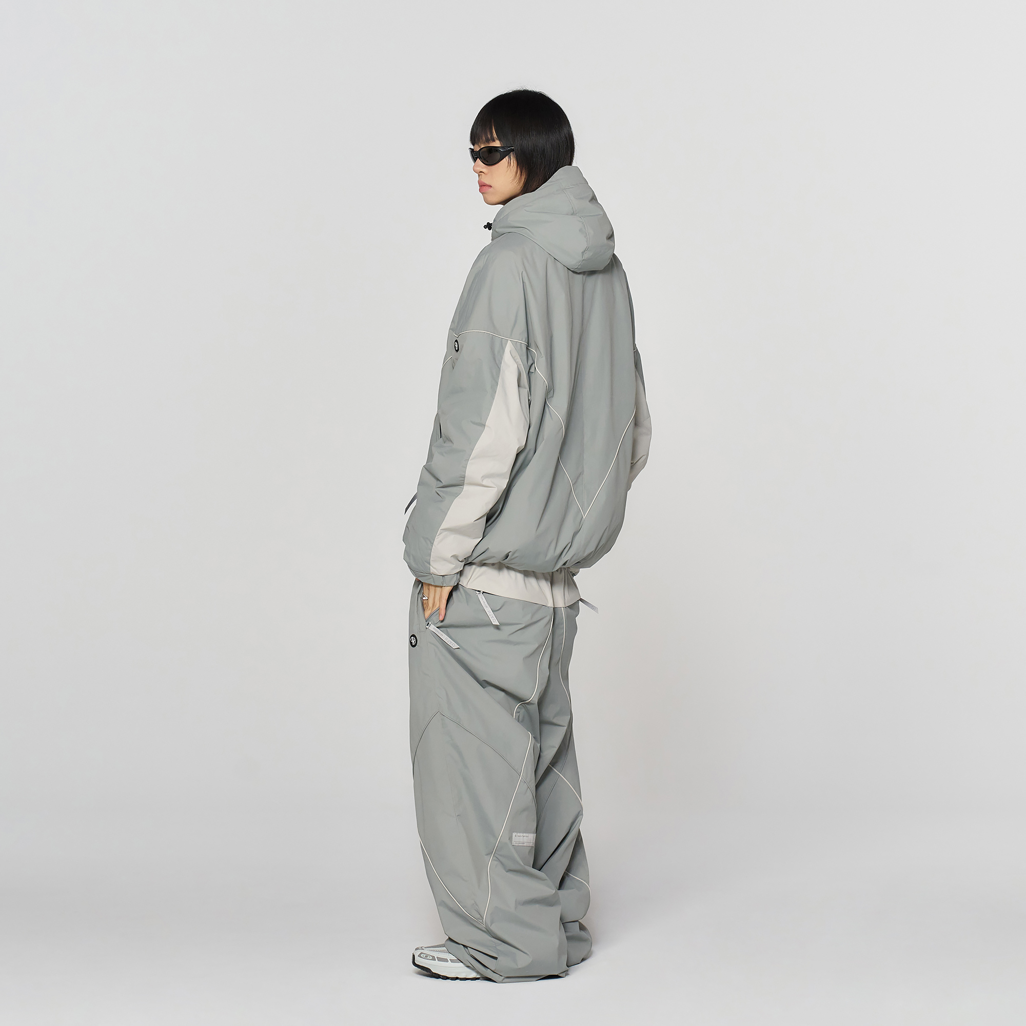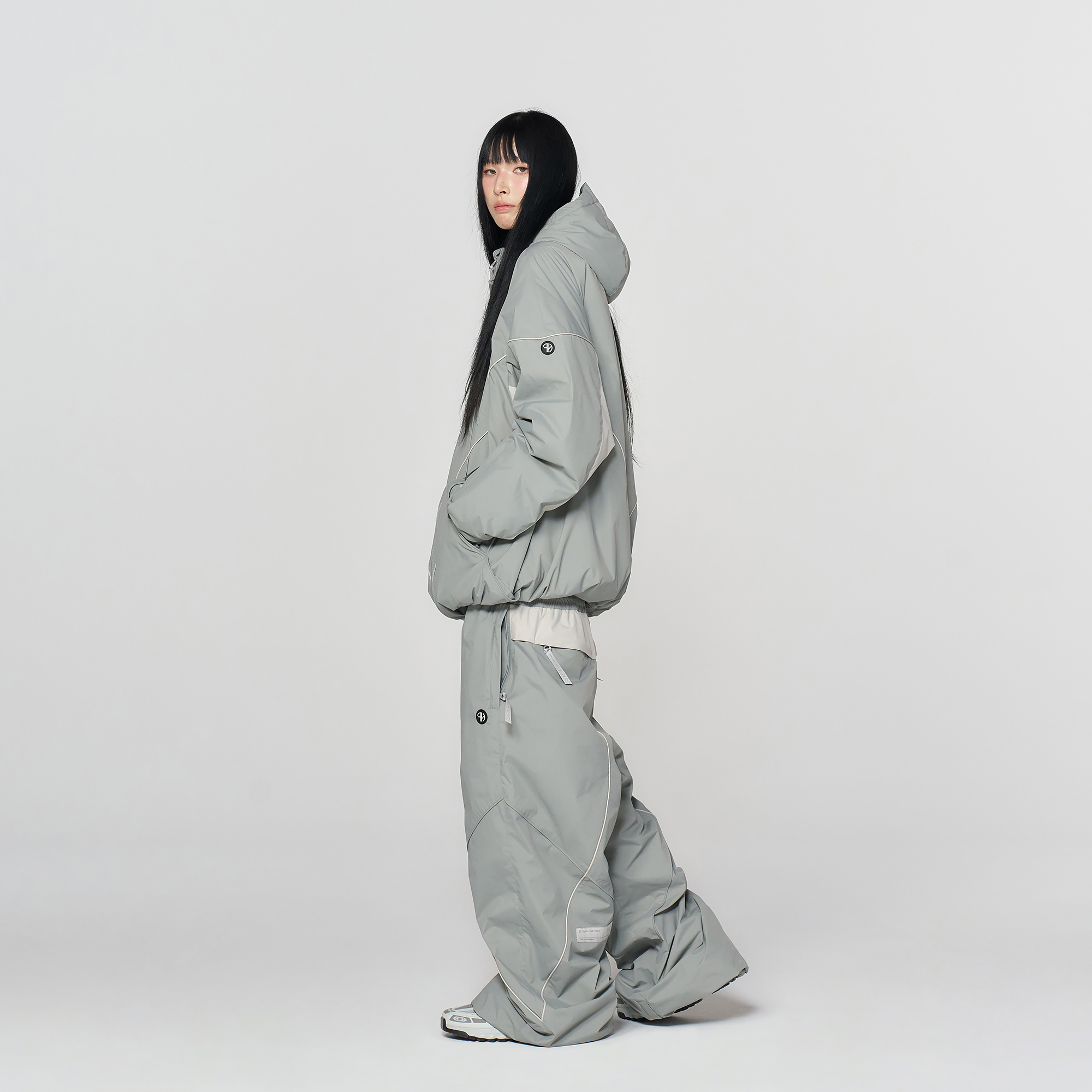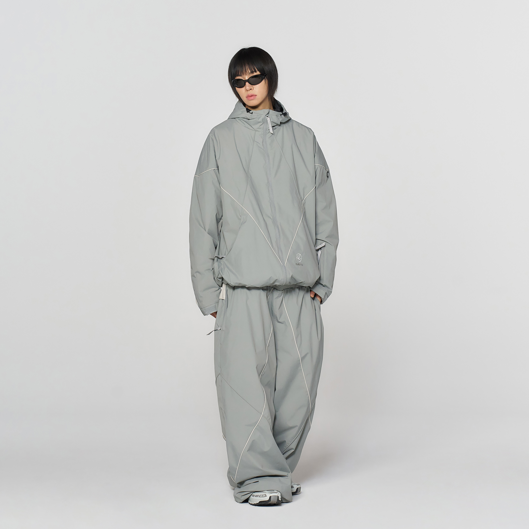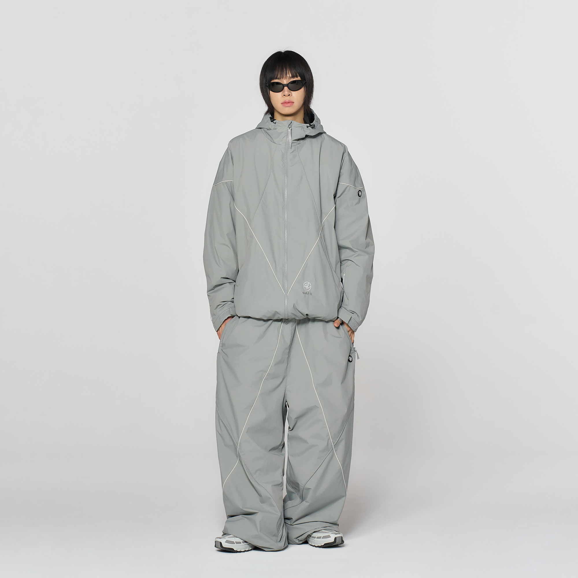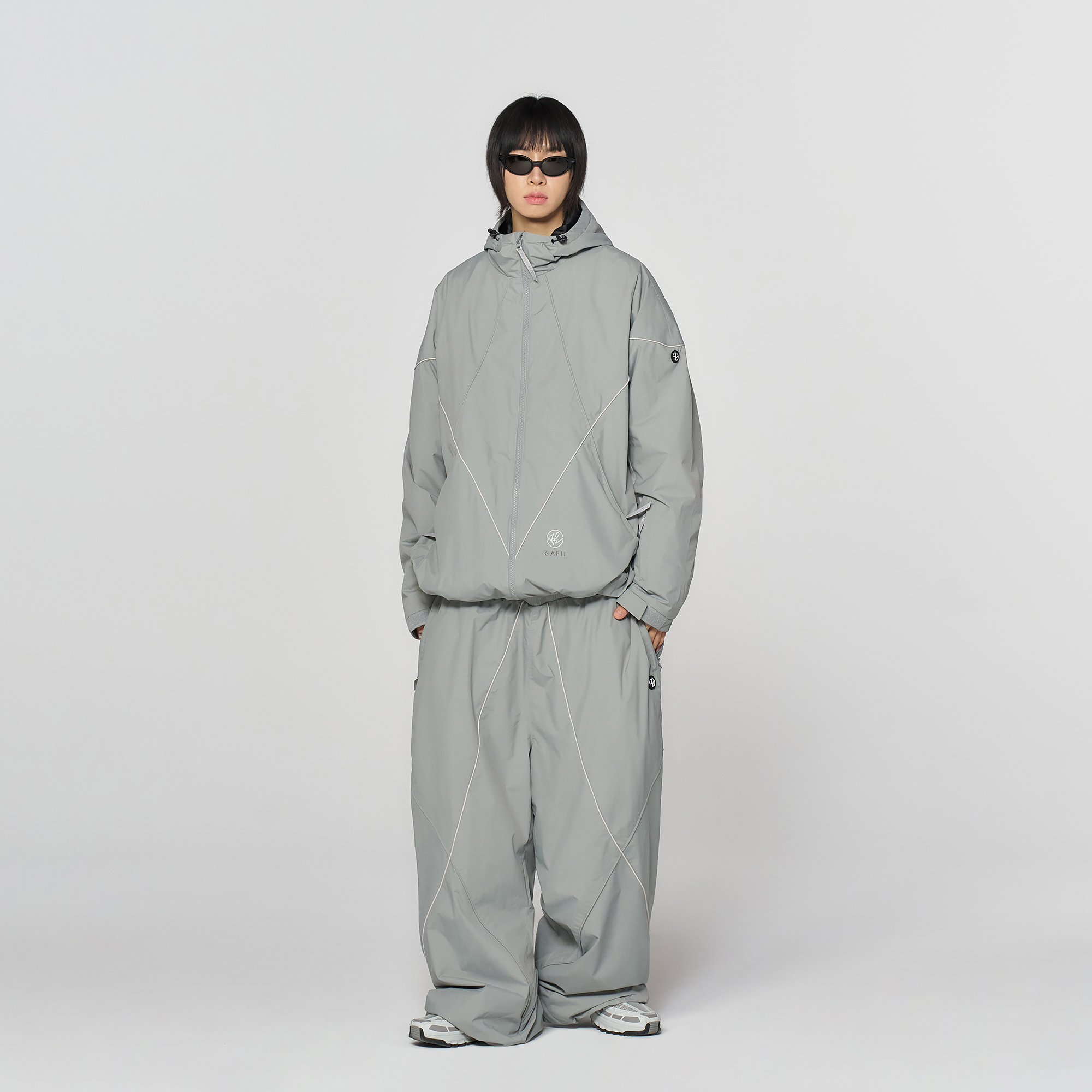 기능성 NYLON 소재를 사용한 와이드 핏의 팬츠로, 배색 파이핑 디테일로 포인트를 주었습니다.