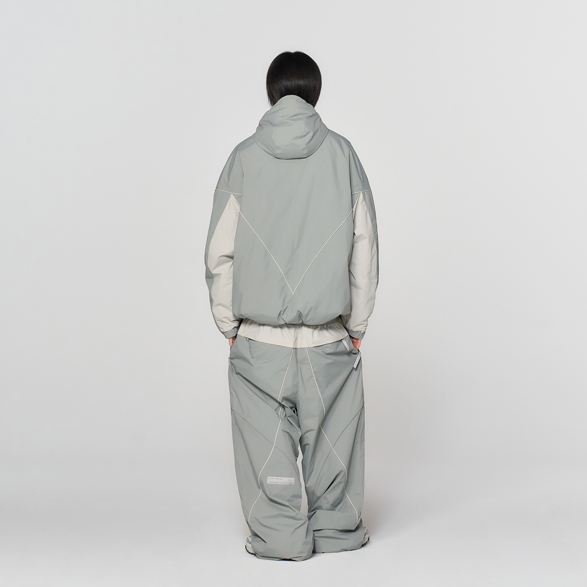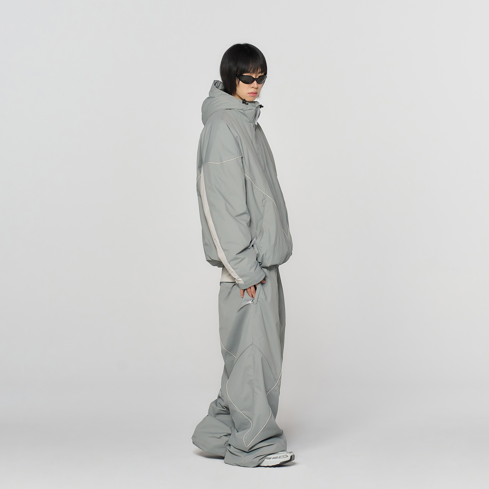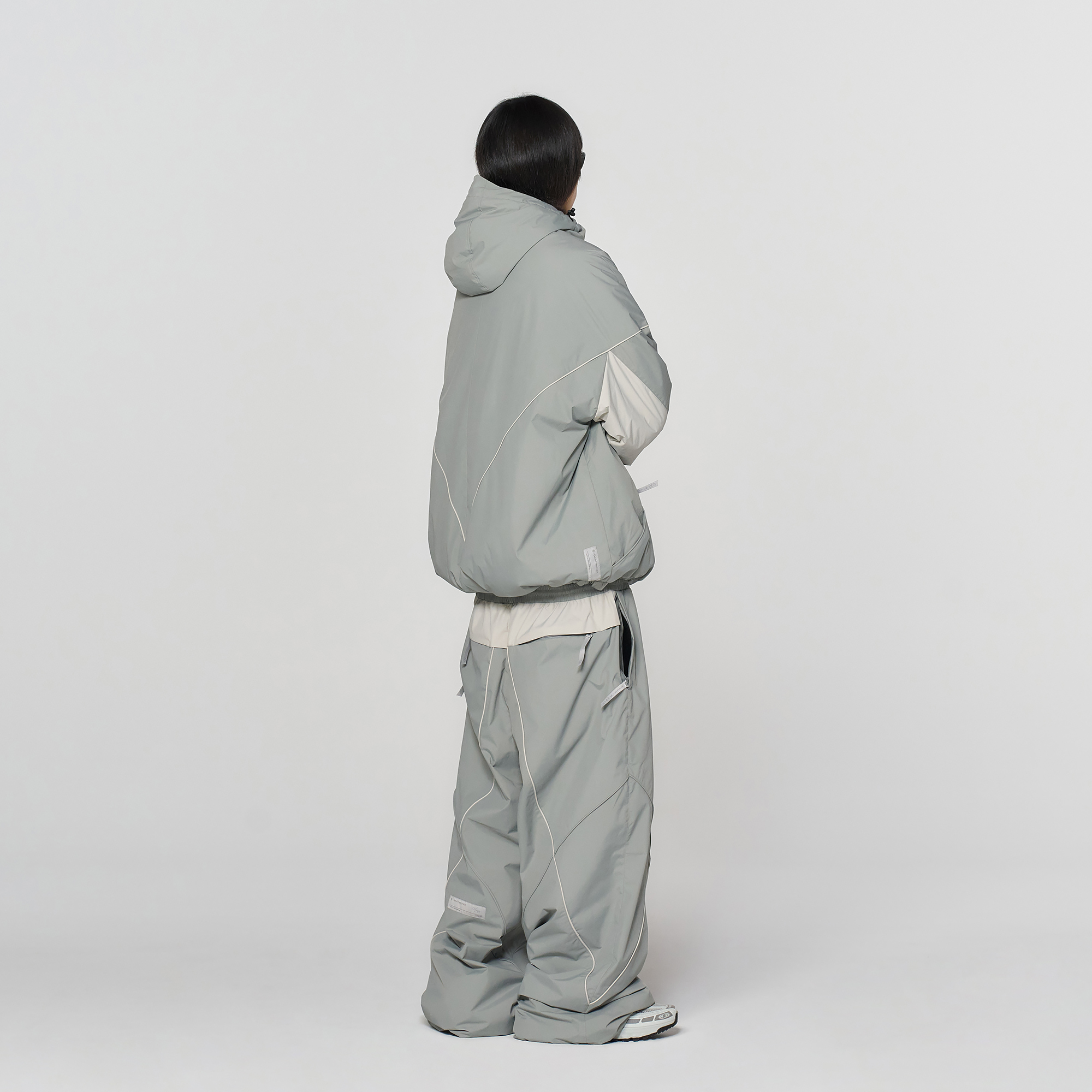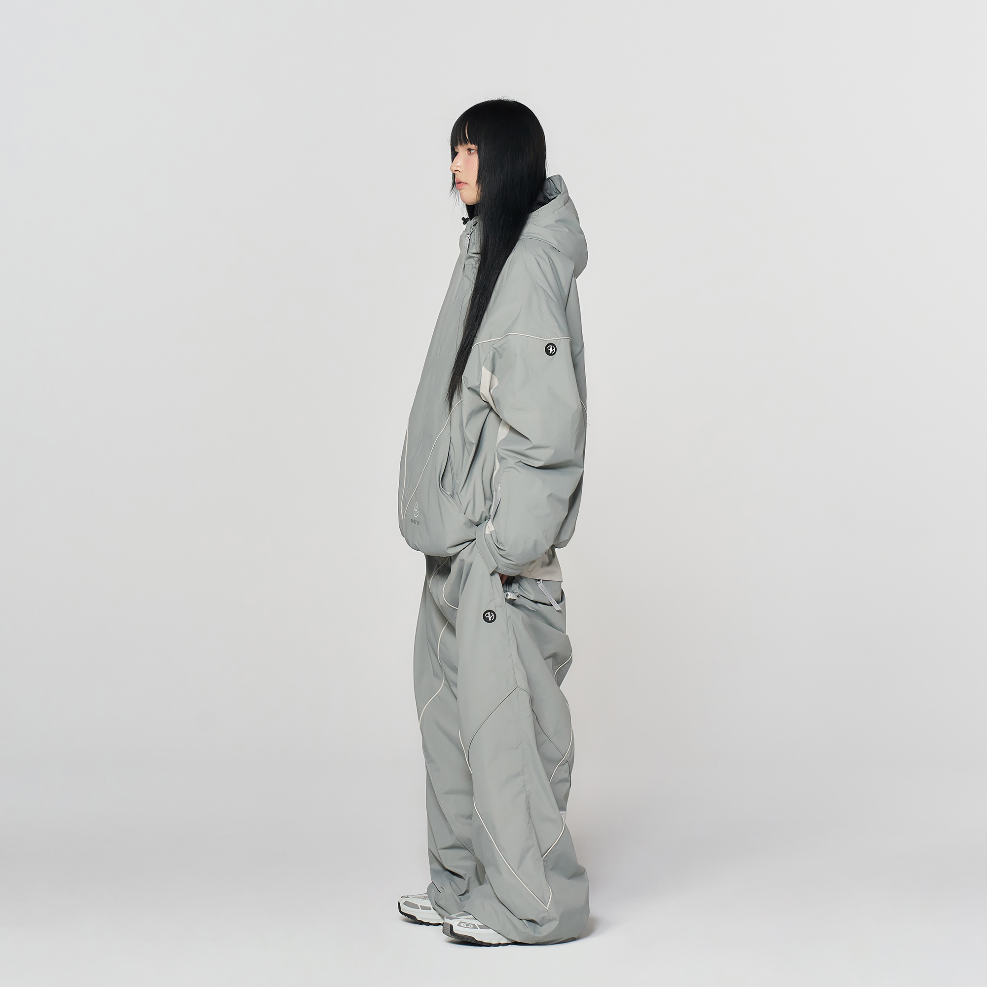 기능성 NYLON 소재를 사용한 와이드 핏의 팬츠로, 배색 파이핑 디테일로 포인트를 주었습니다.