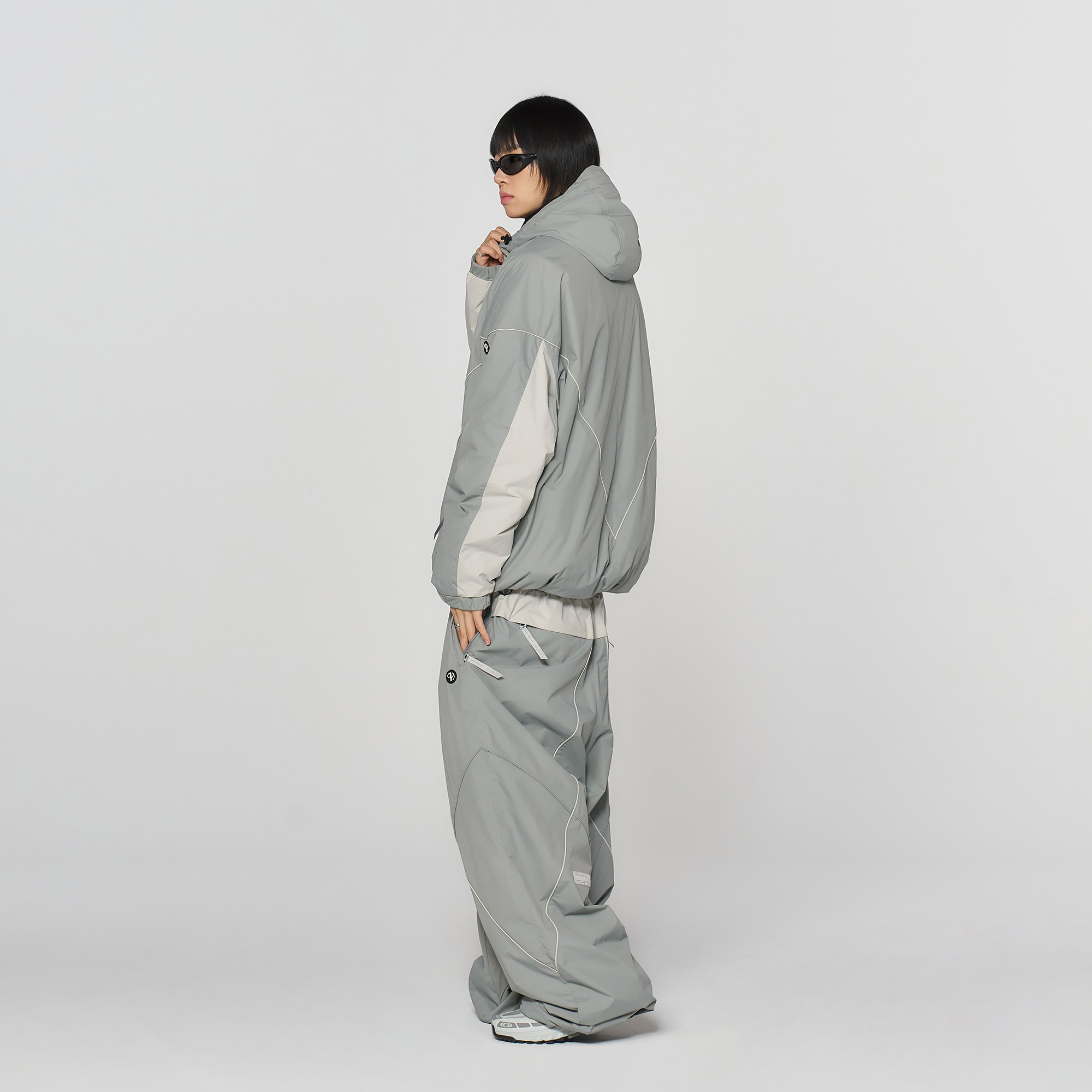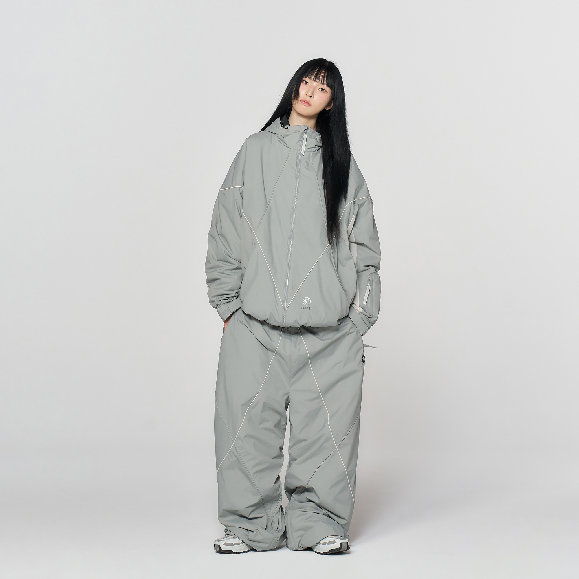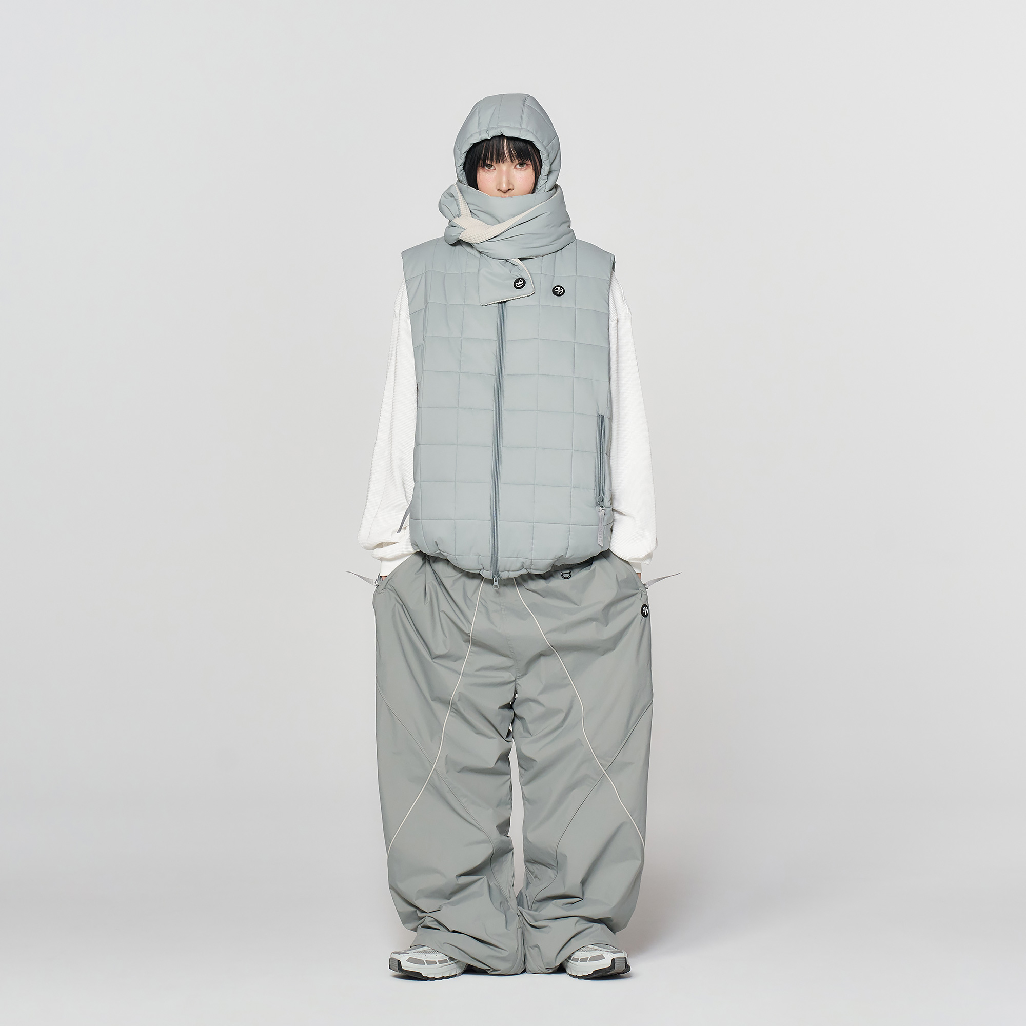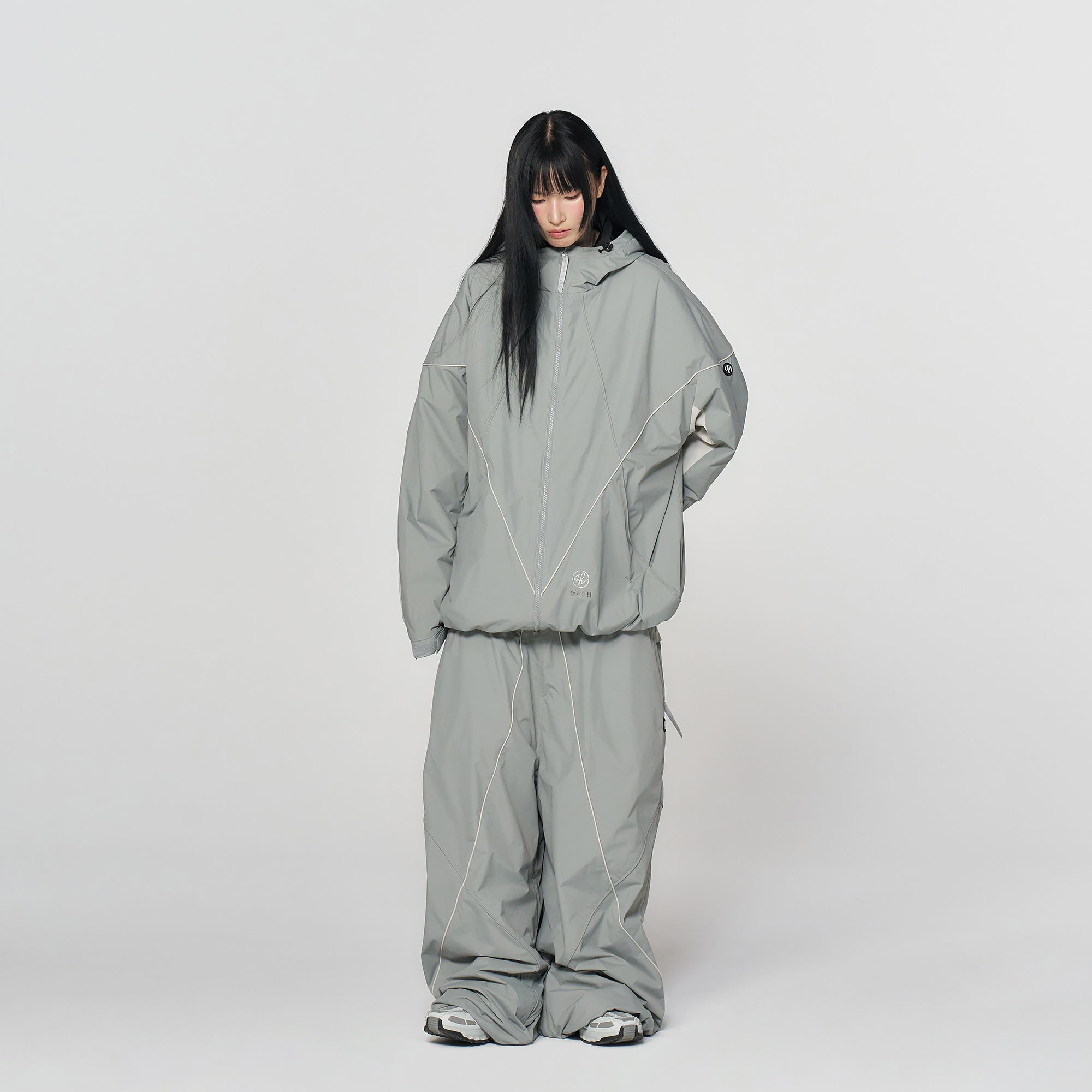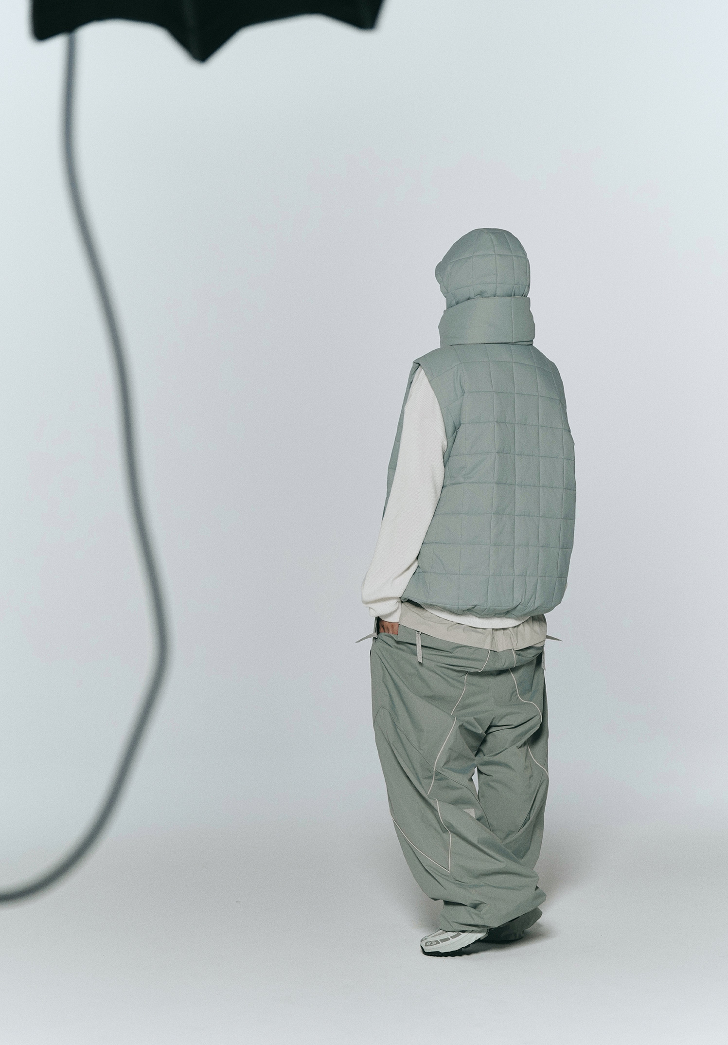 기능성 NYLON 소재를 사용한 와이드 핏의 팬츠로, 배색 파이핑 디테일로 포인트를 주었습니다.