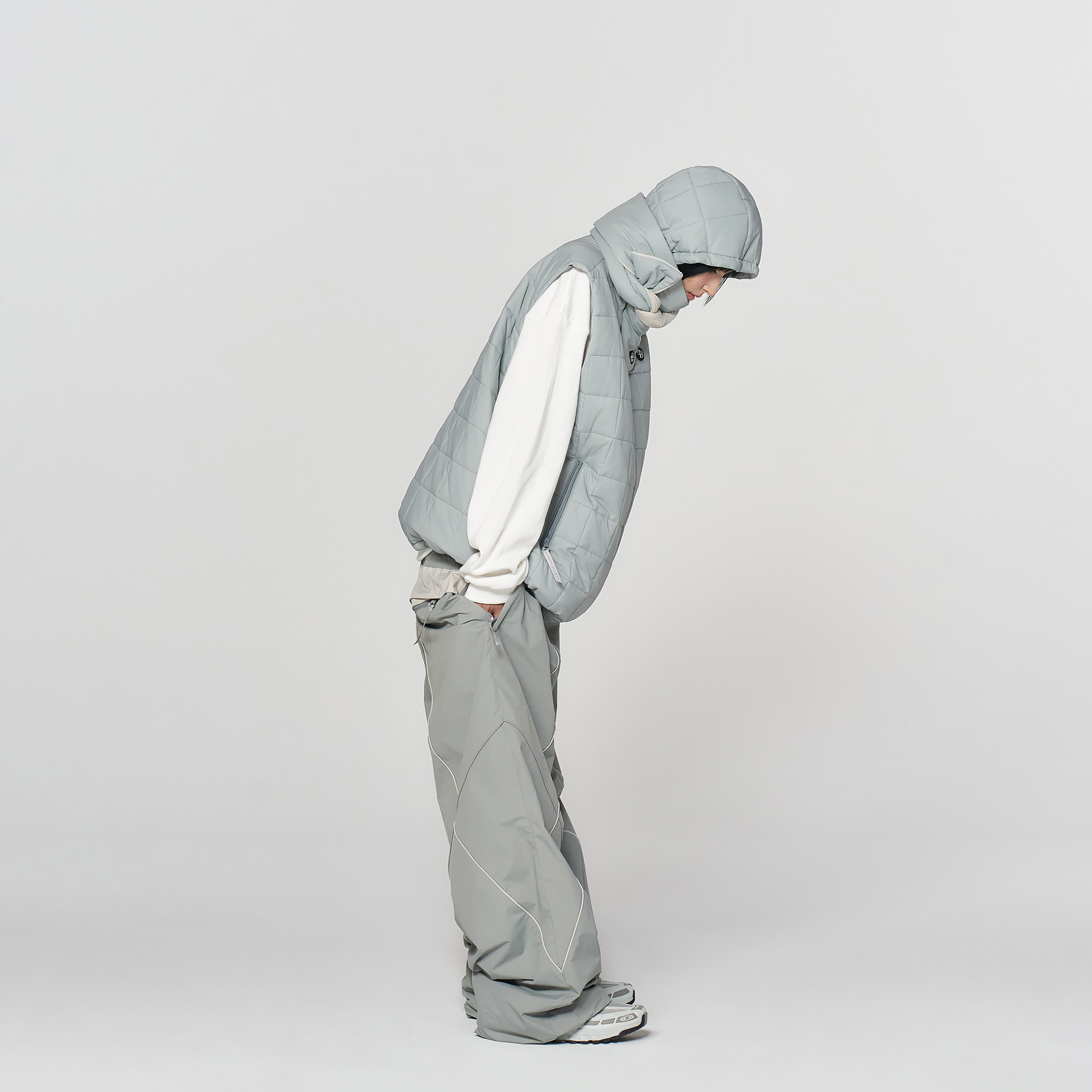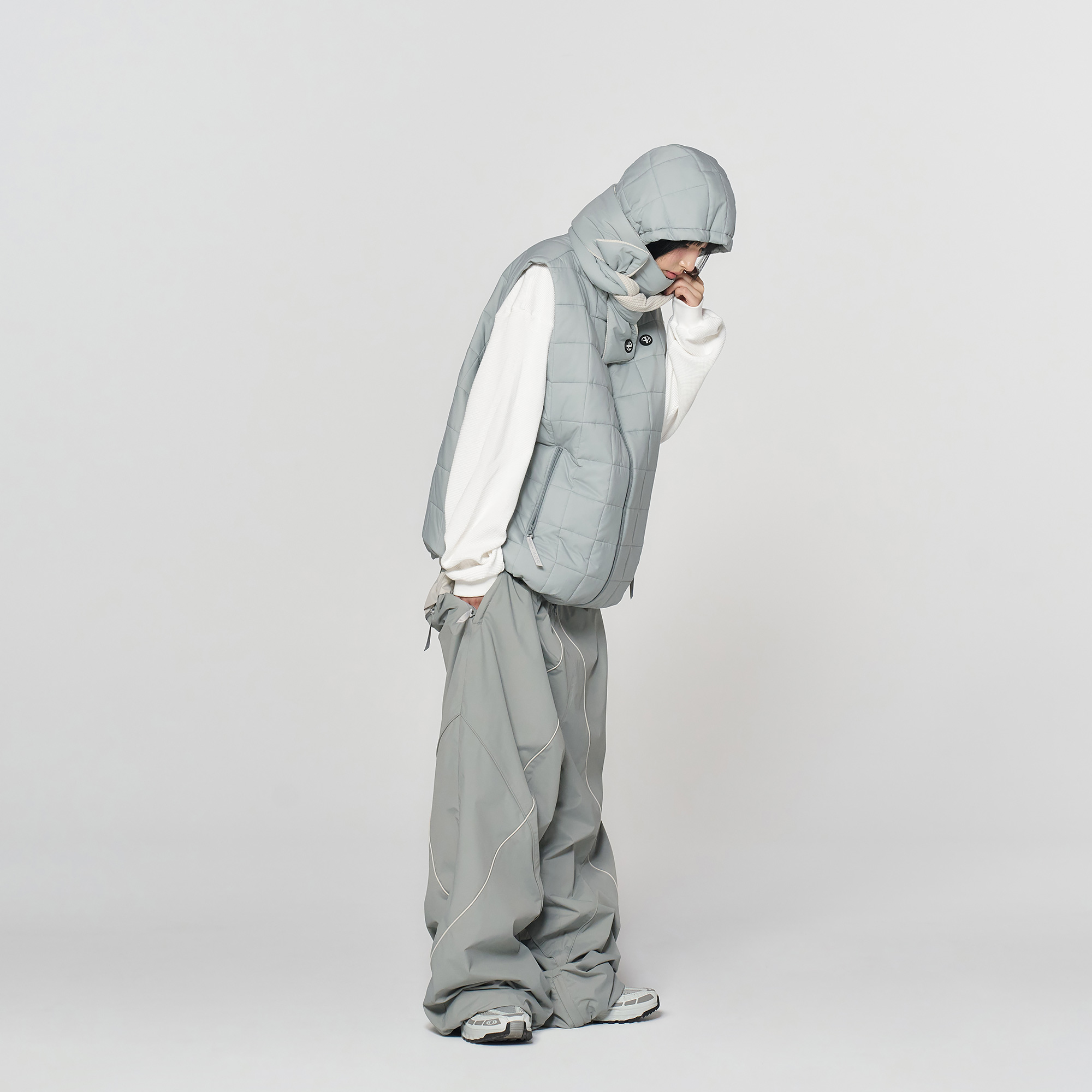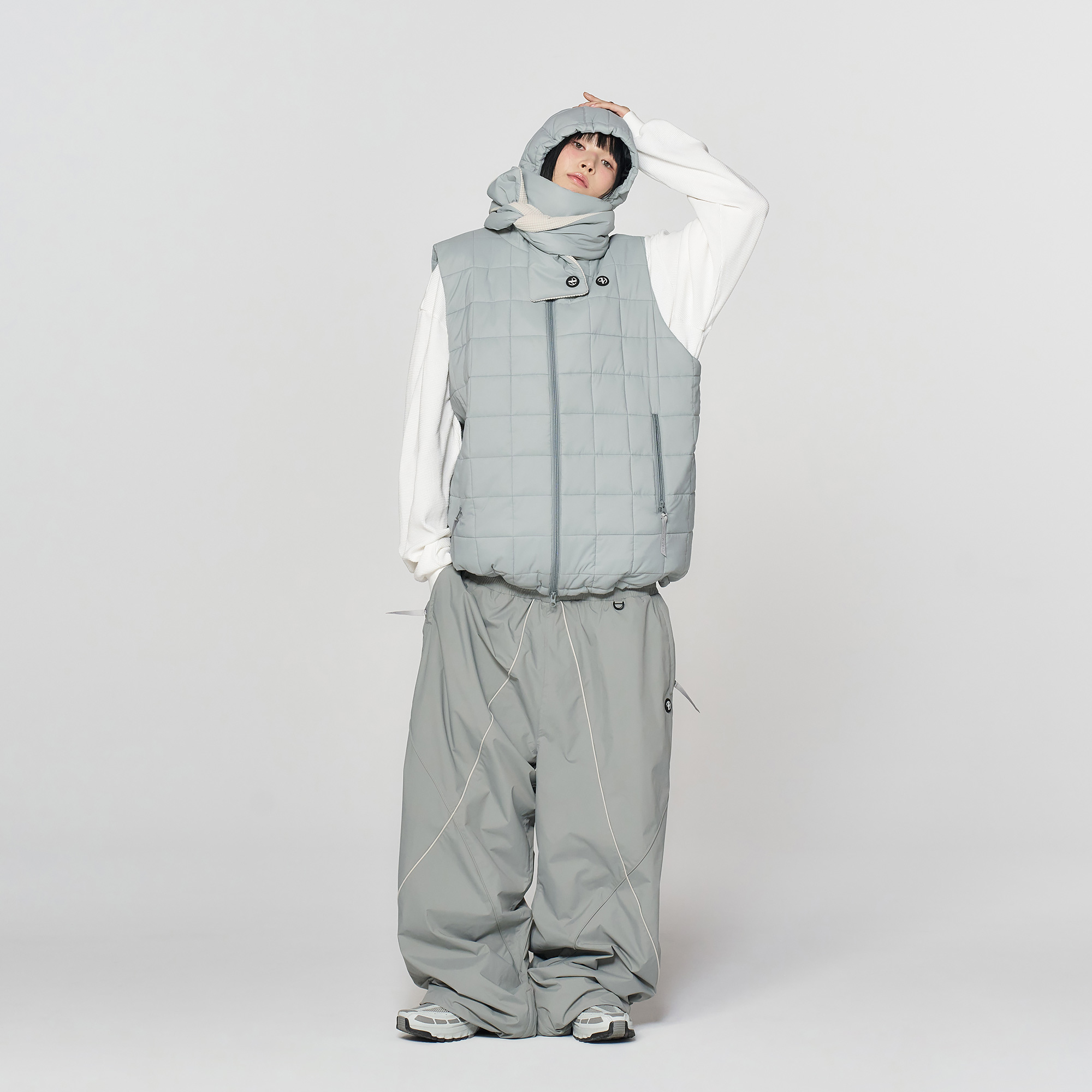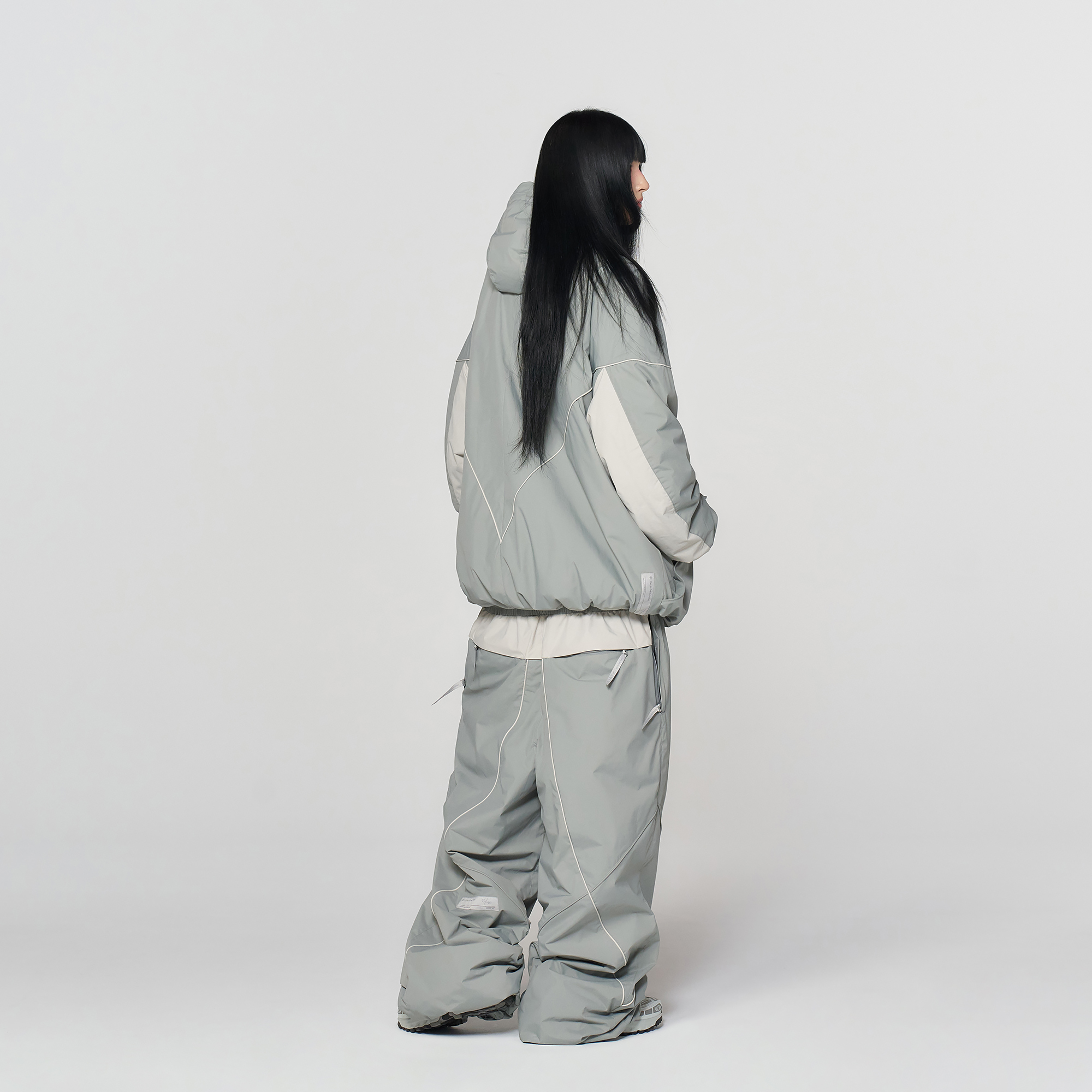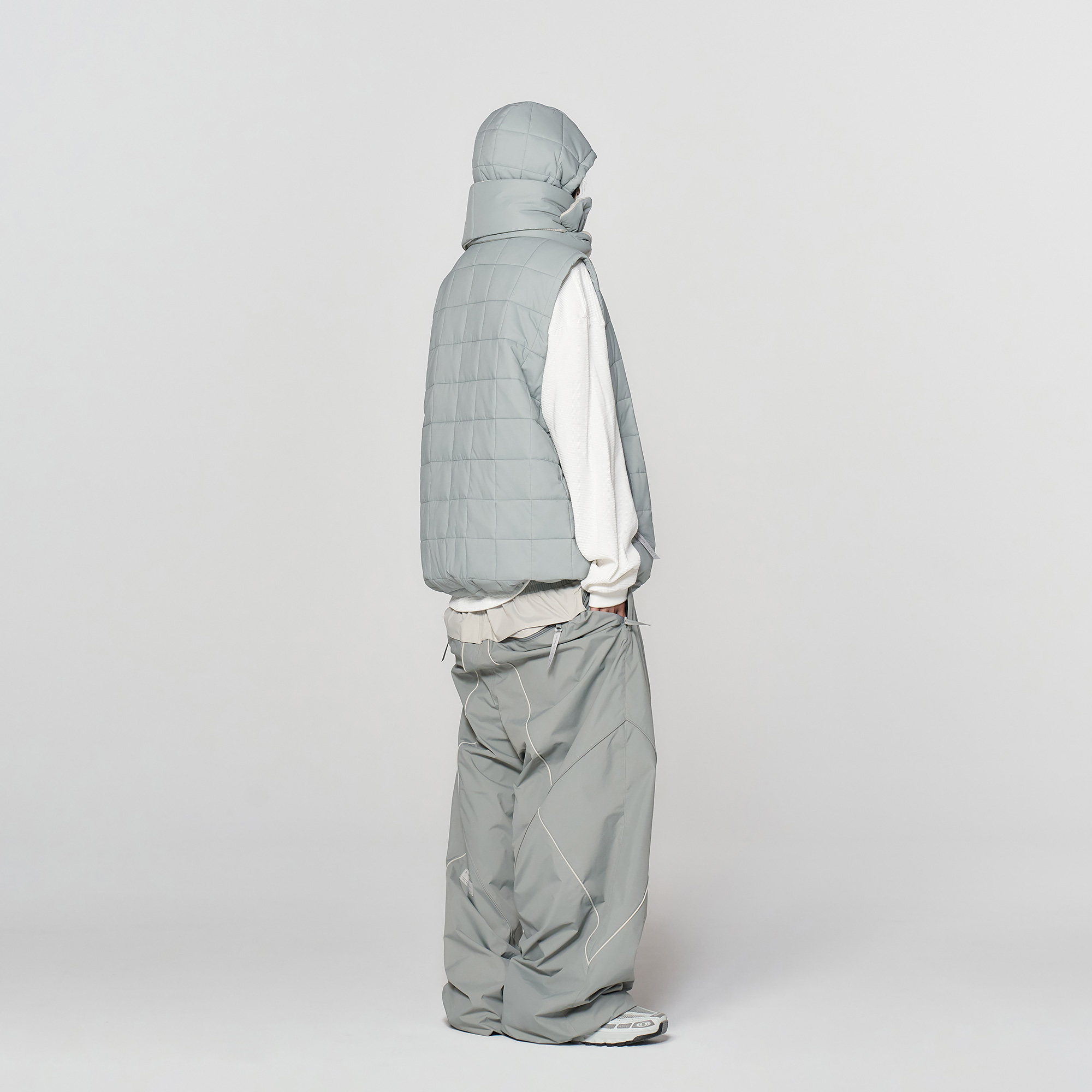 기능성 NYLON 소재를 사용한 와이드 핏의 팬츠로, 배색 파이핑 디테일로 포인트를 주었습니다.