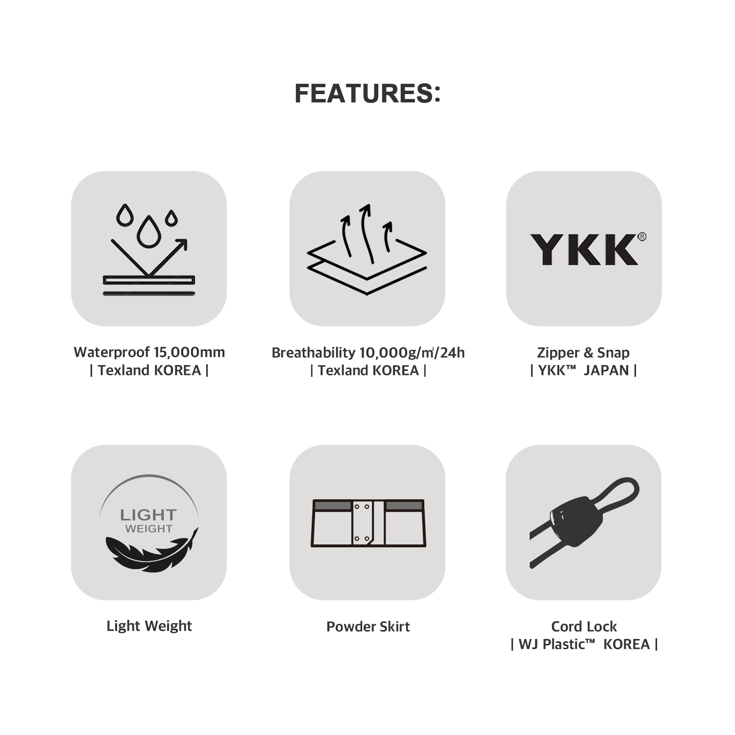 내부에 눈의 유입을 차단할 수 있도록 파우더 스커트를 부착하였으며,