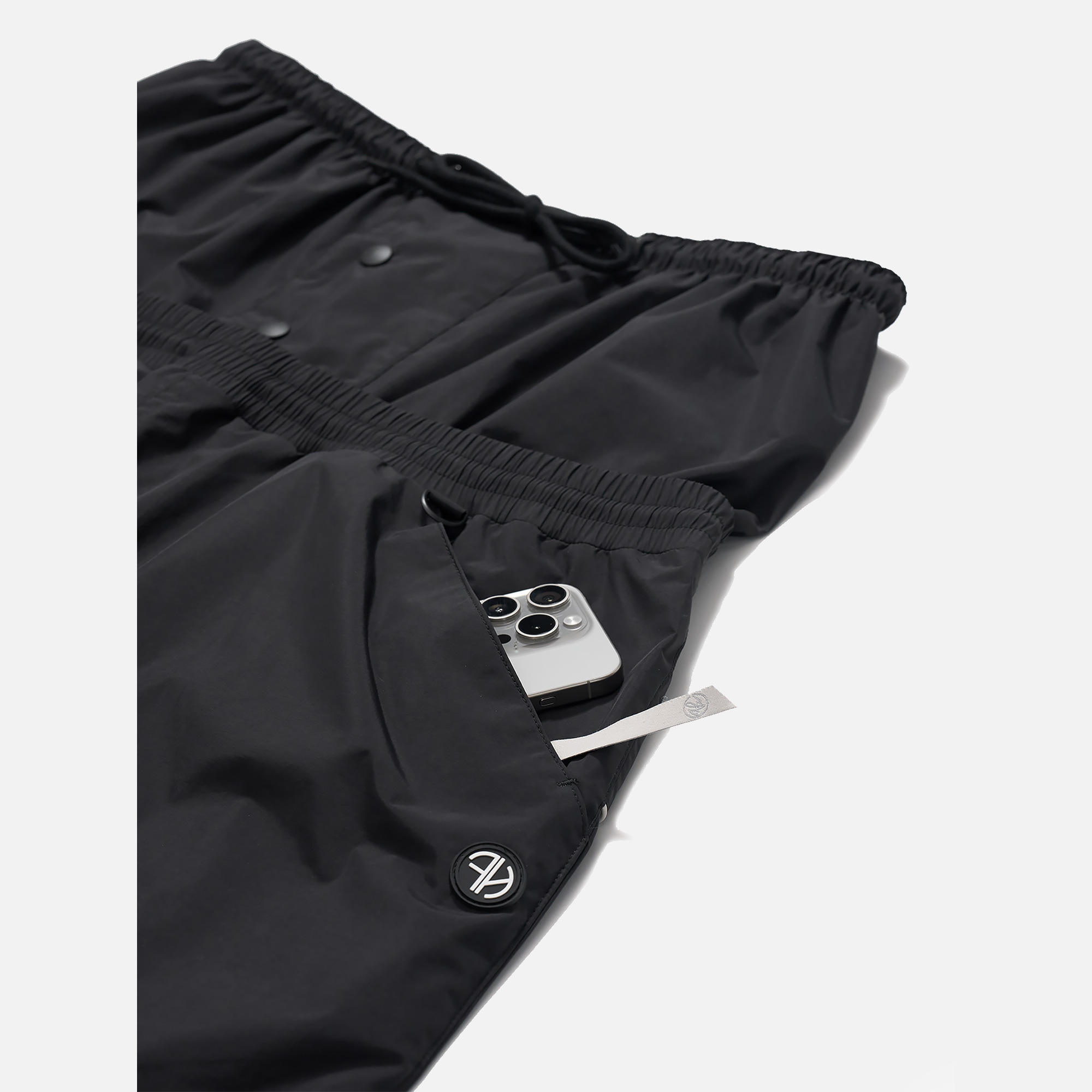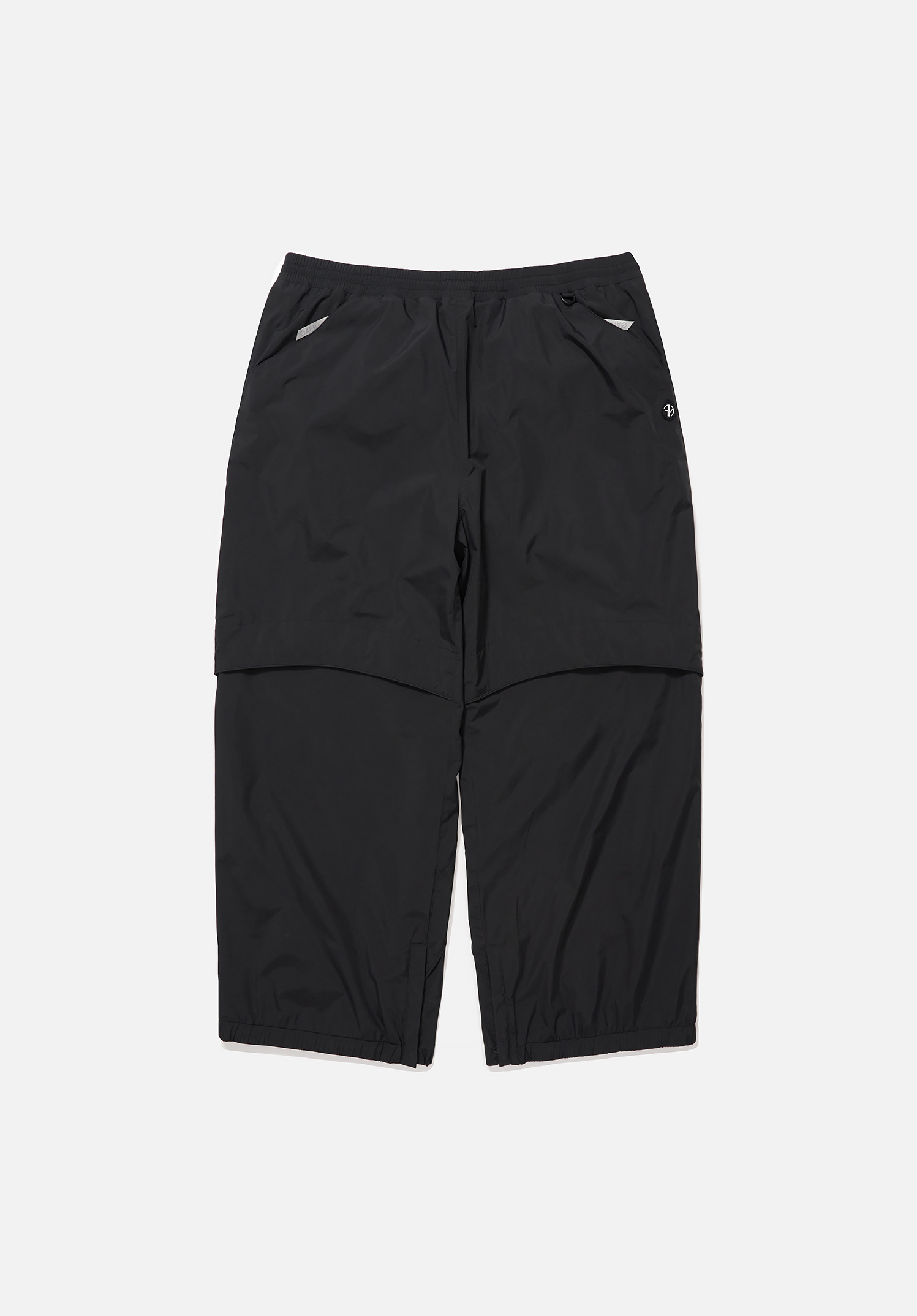 기능성 NYLON 소재를 사용한 와이드 핏의 팬츠로, 앞면에서 뒷면으로 이어지는 플랩 디테일로 포인트를 주었습니다.