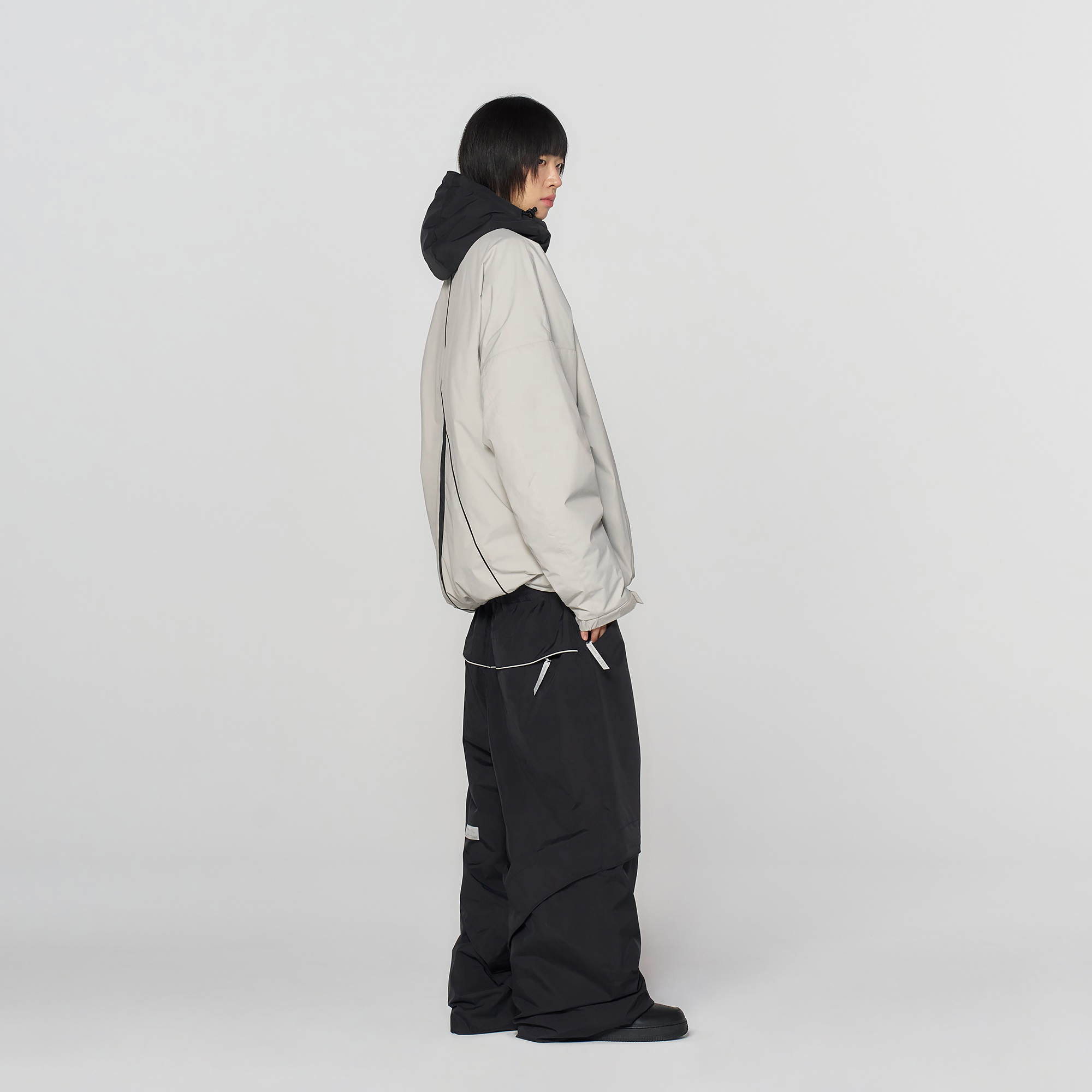 밑단의 스트링과 스토퍼 디테일로 실루엣을 자유롭게 조절해, 다양한 스타일링이 가능합니다.