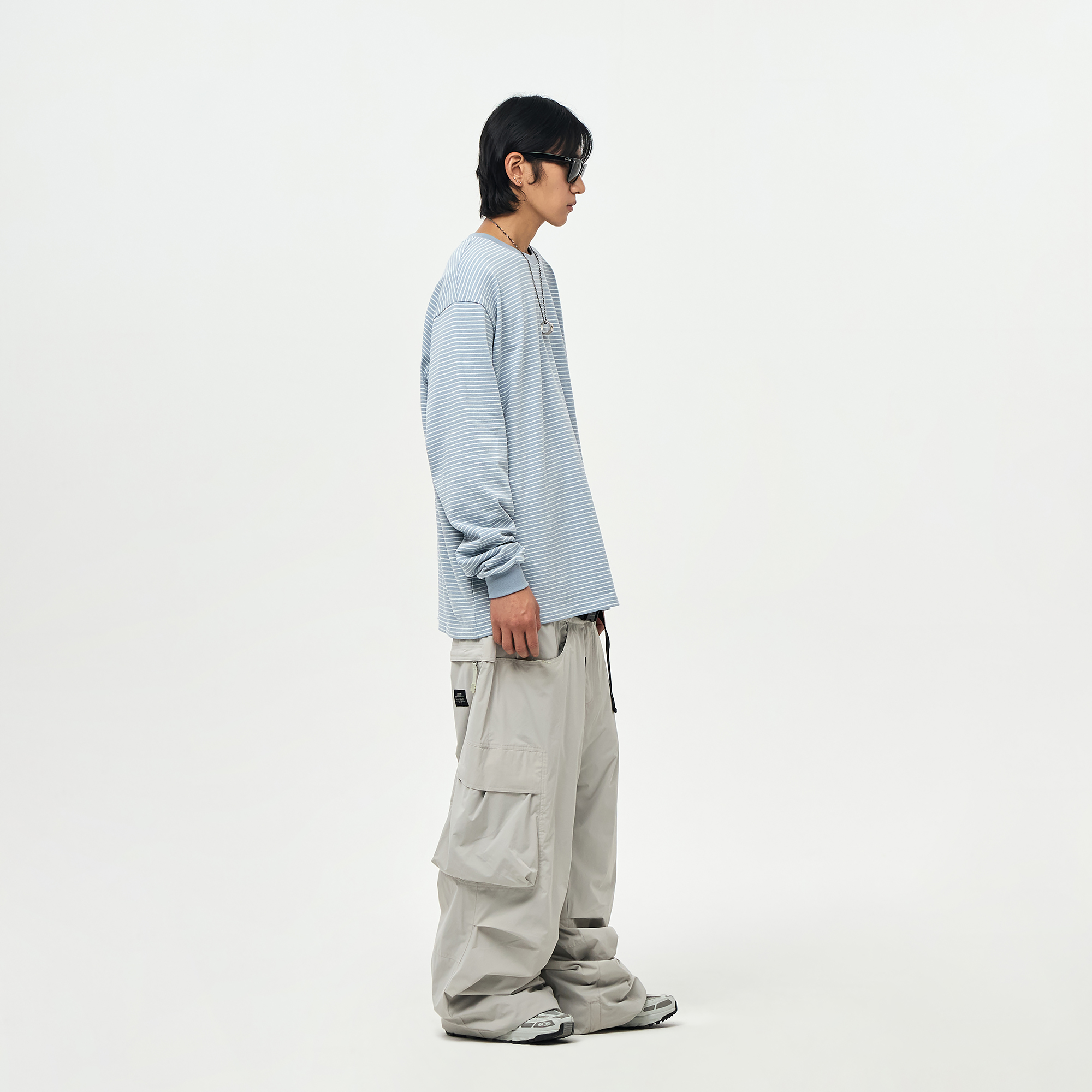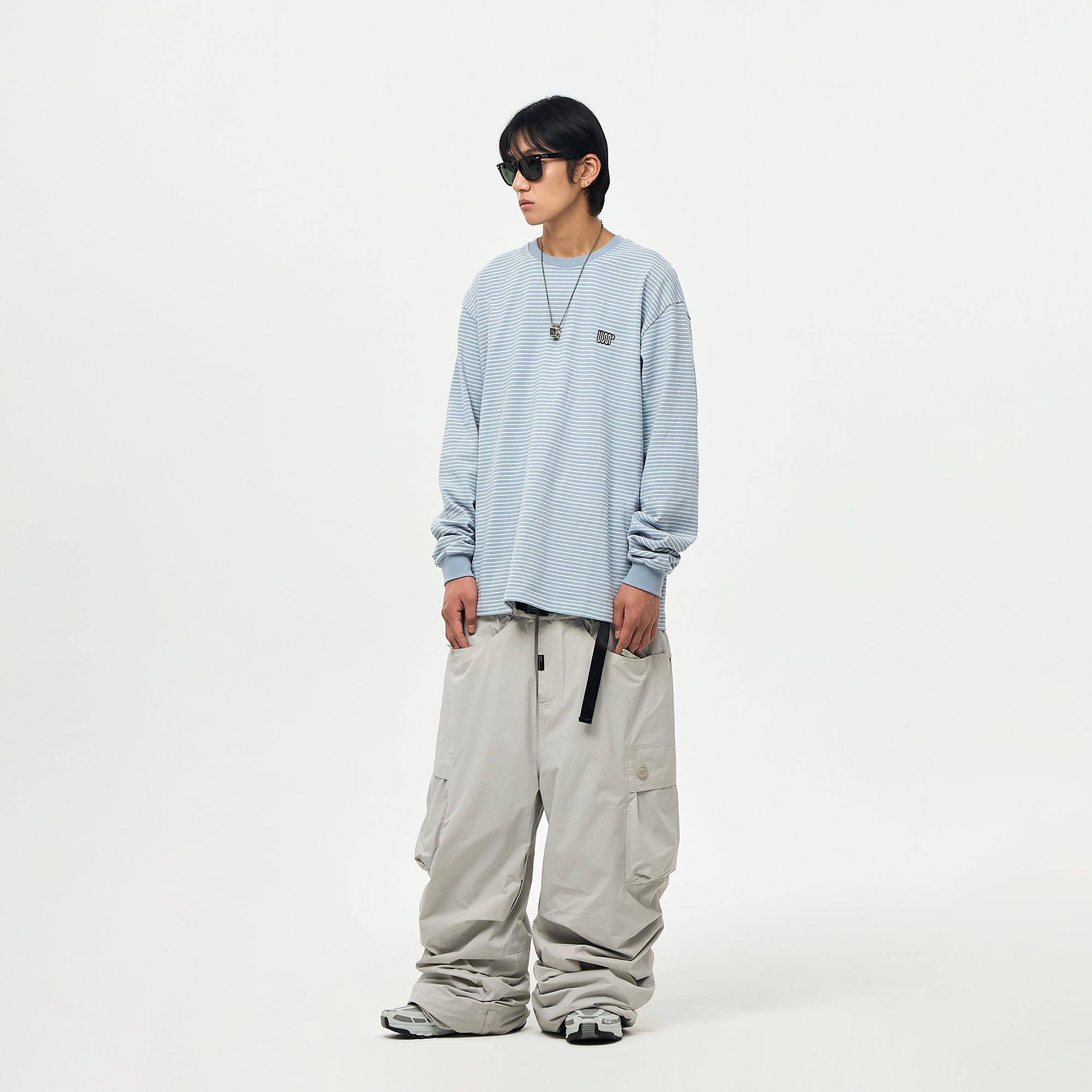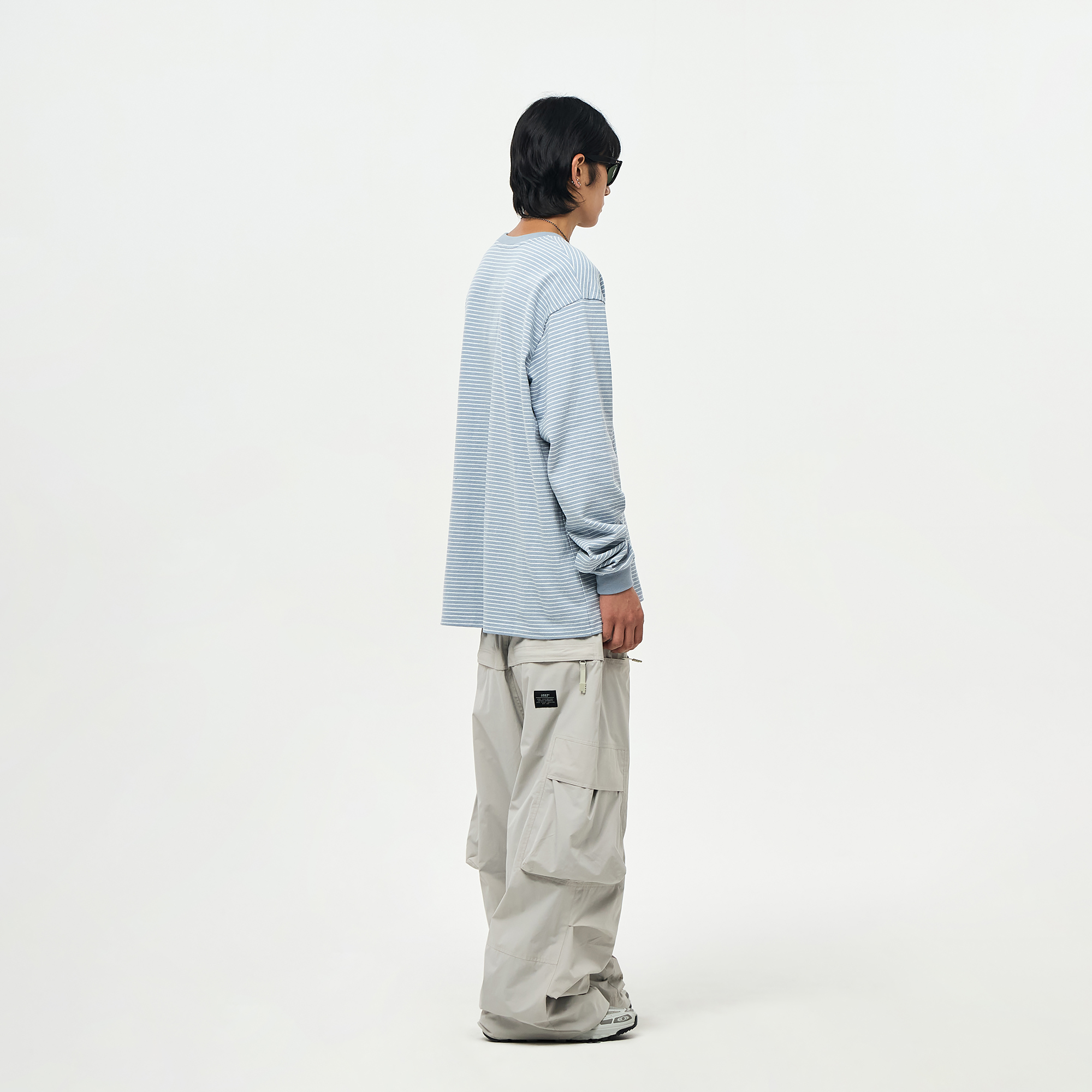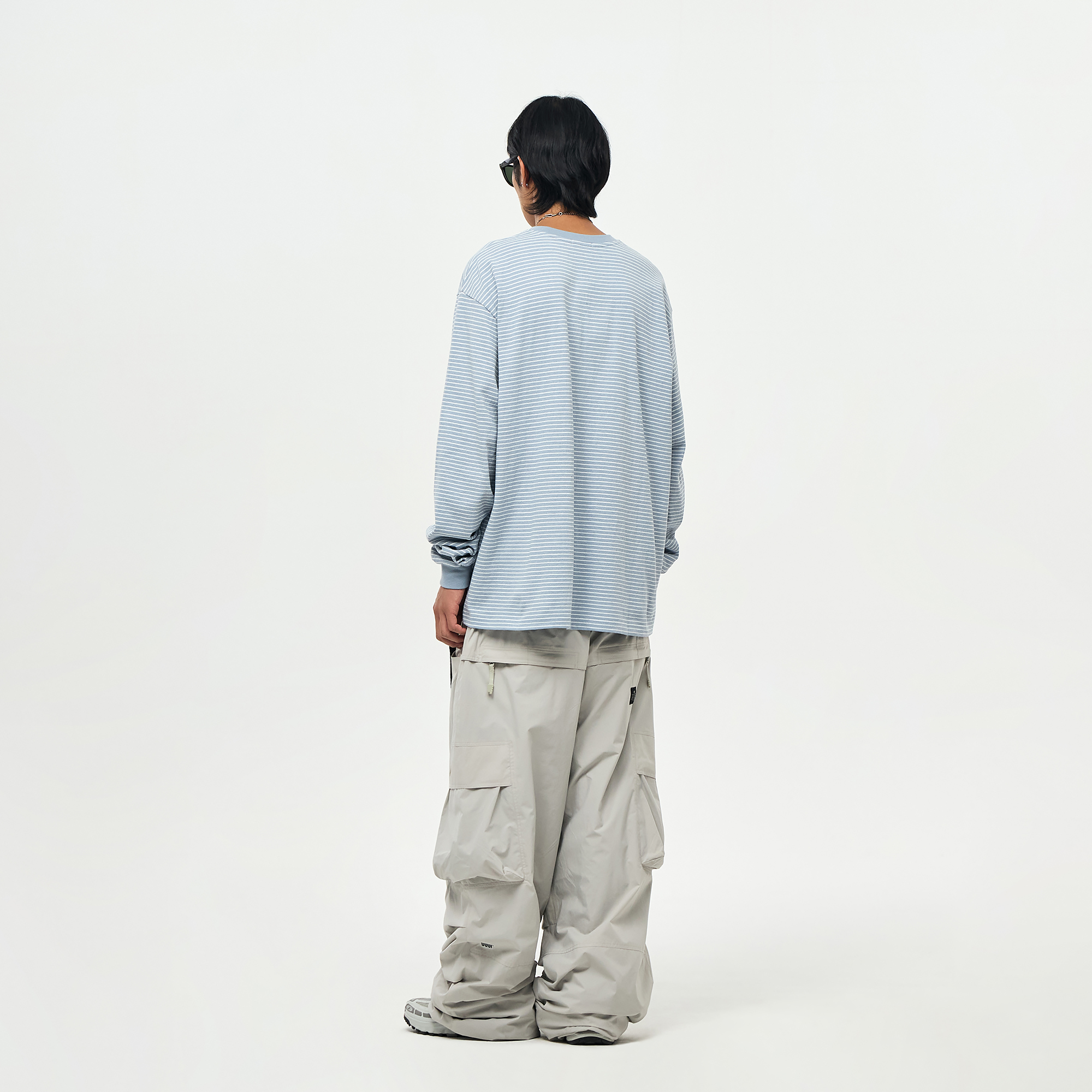스트라이프 패턴의 여유있는 릴렉스 핏의 롱슬리브 티셔츠 제품입니다.