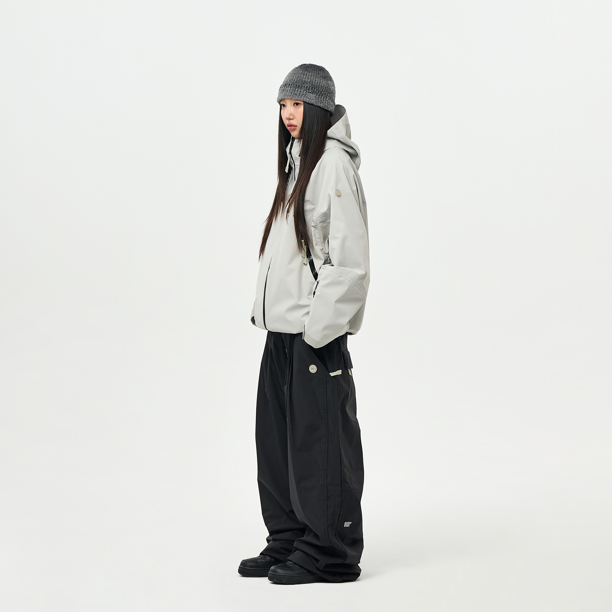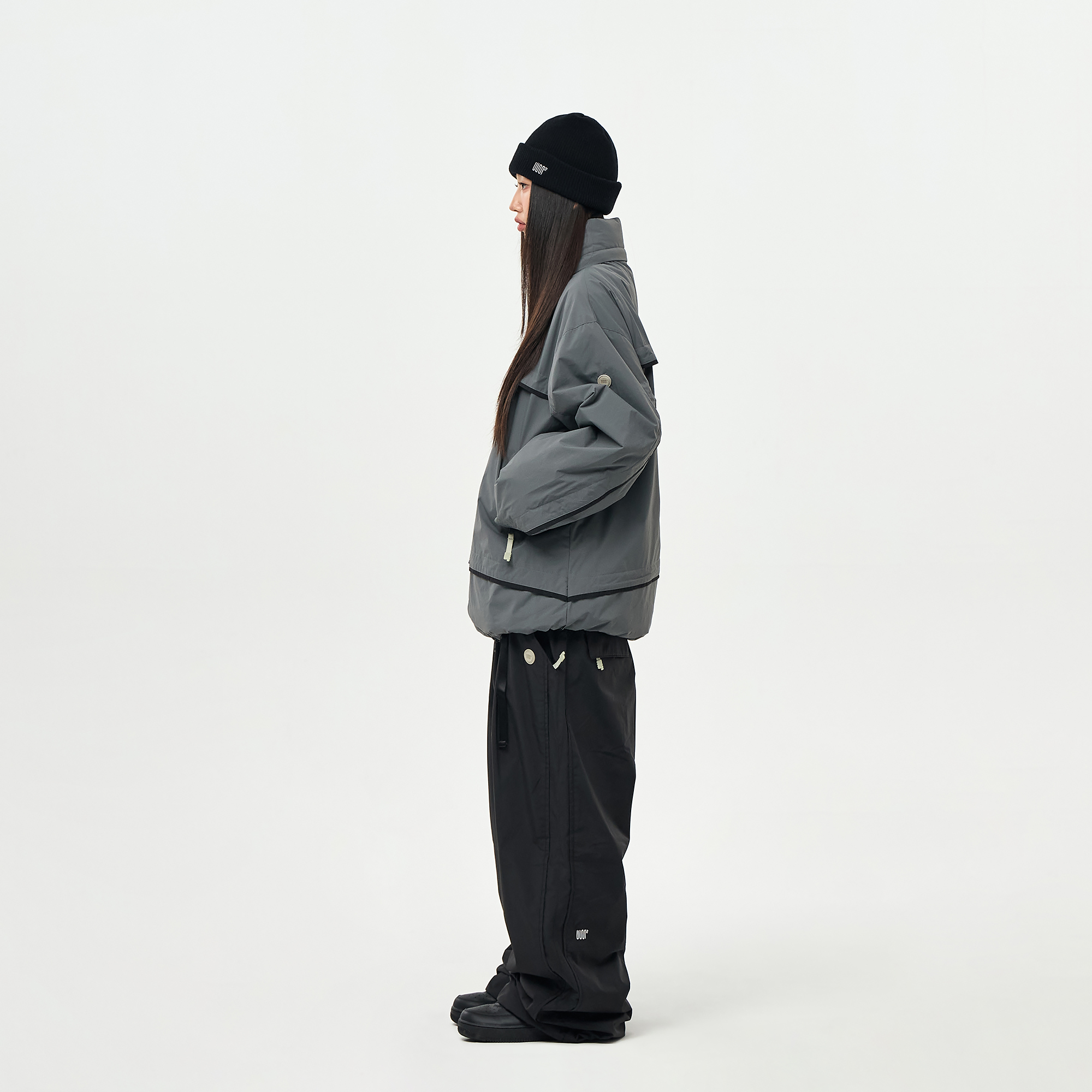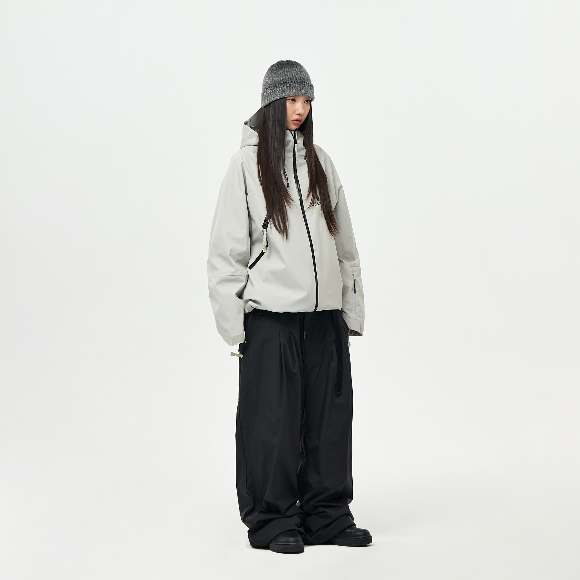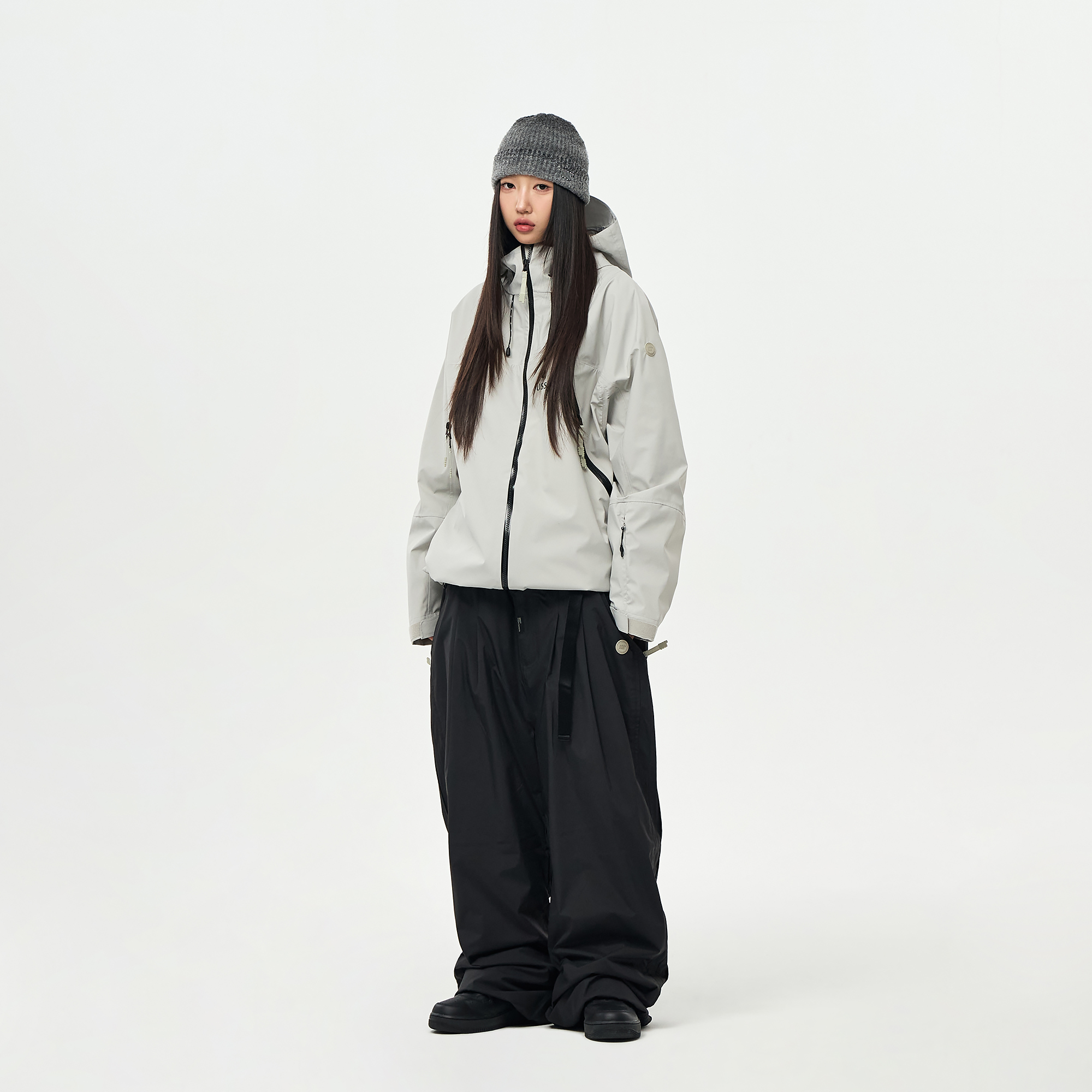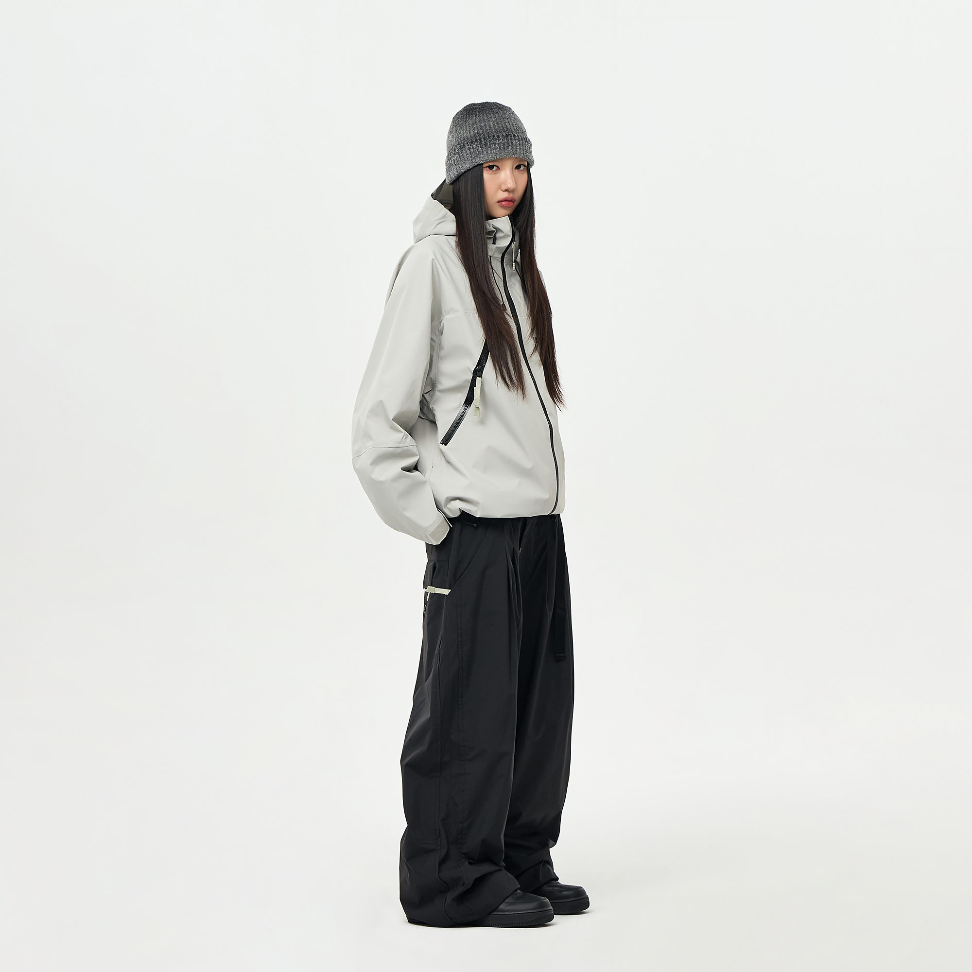 밑단의 스트링/스토퍼와 지퍼로 사이즈 조절이 가능하여 다양한 연출이 가능합니다.