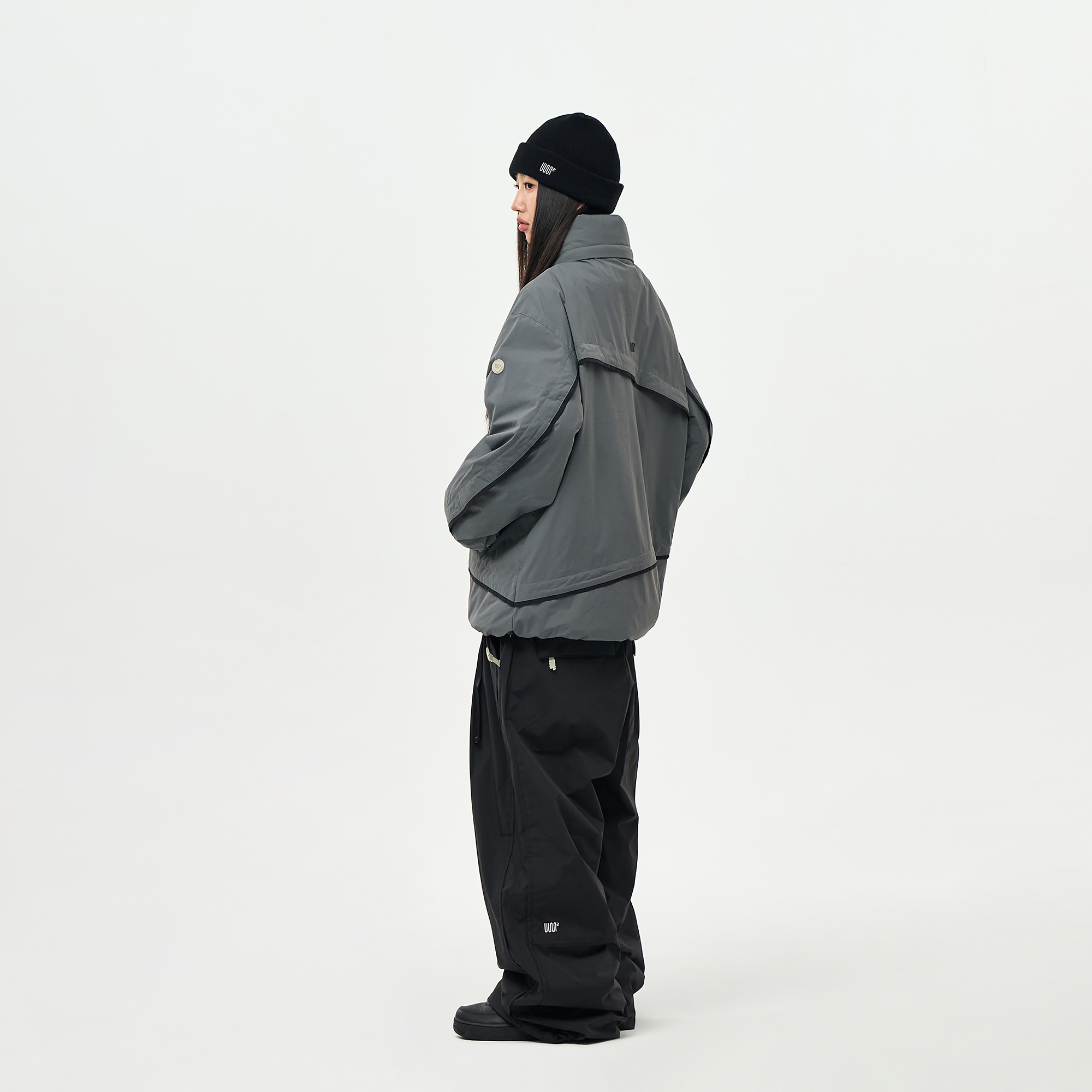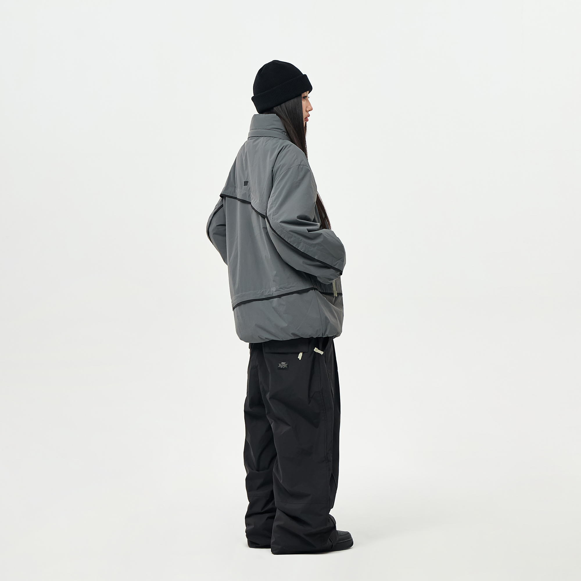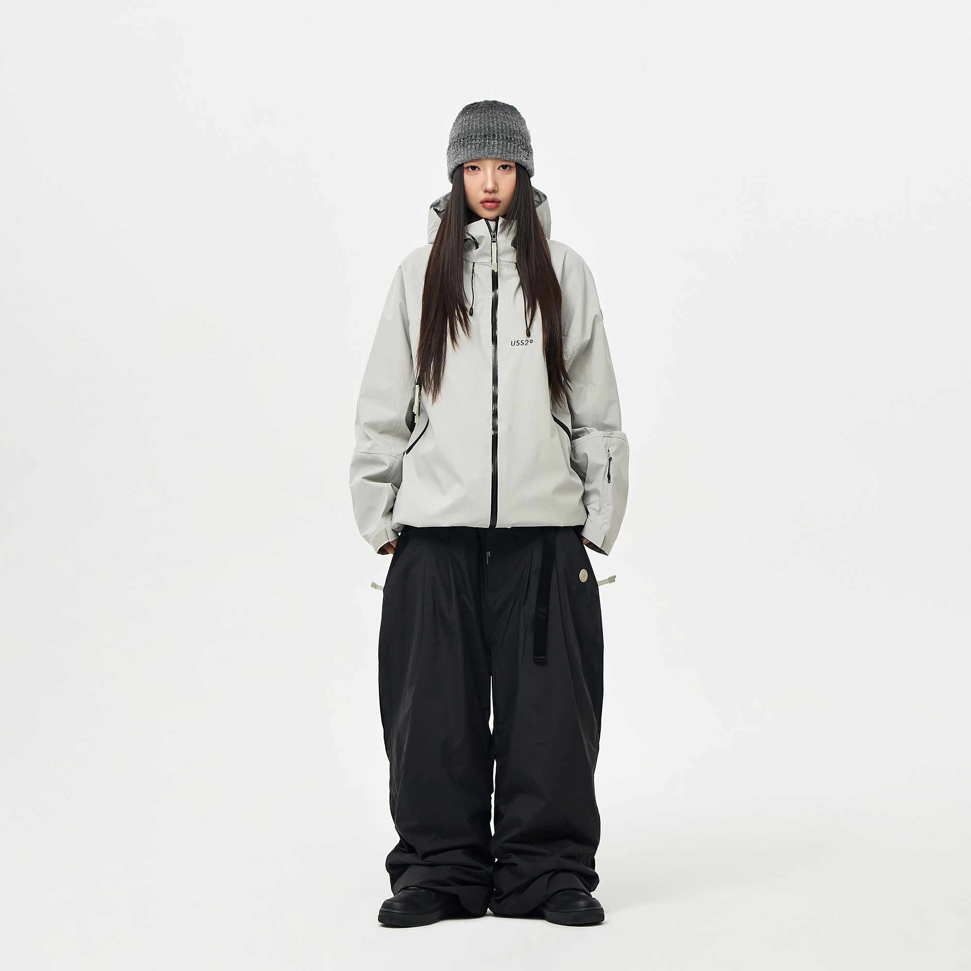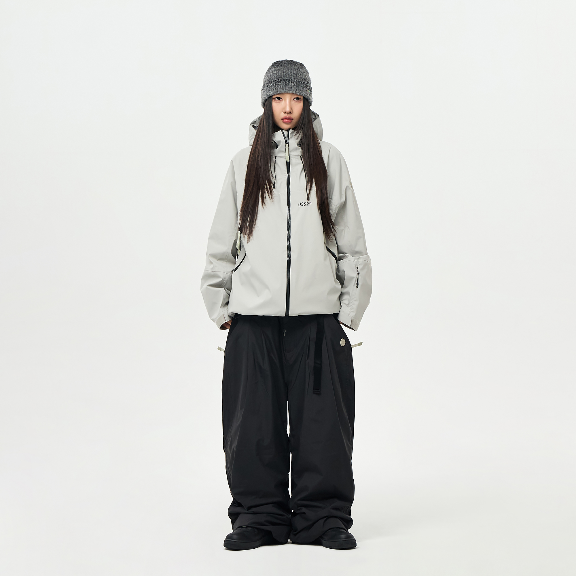 밑단의 스트링/스토퍼와 지퍼로 사이즈 조절이 가능하여 다양한 연출이 가능합니다.