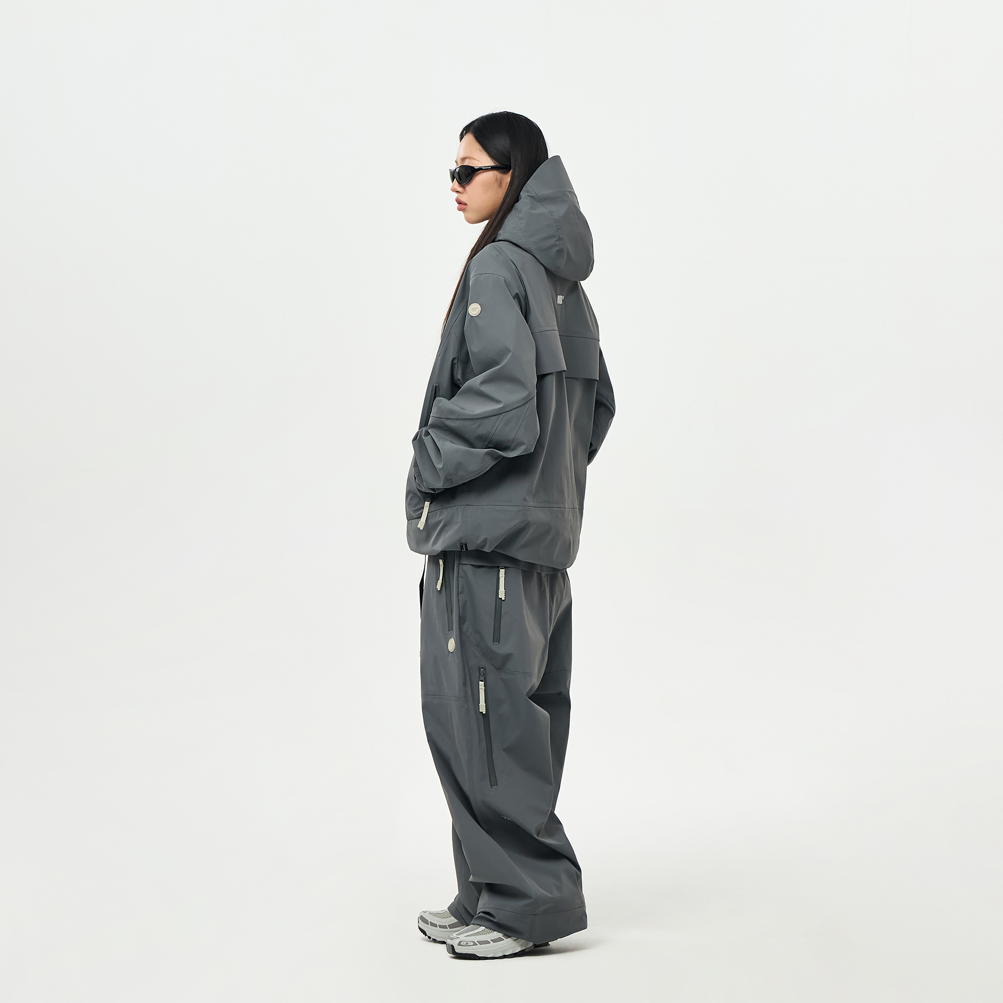 후면 요크 플랩 포인트로 시각적 밸런스를 잡아주며, 양 사이드에 YKK™ 방수지퍼를 활용한 통풍구와 포켓을 배치하여 유니크하면서도 매력적인 기능을 연출합니다.