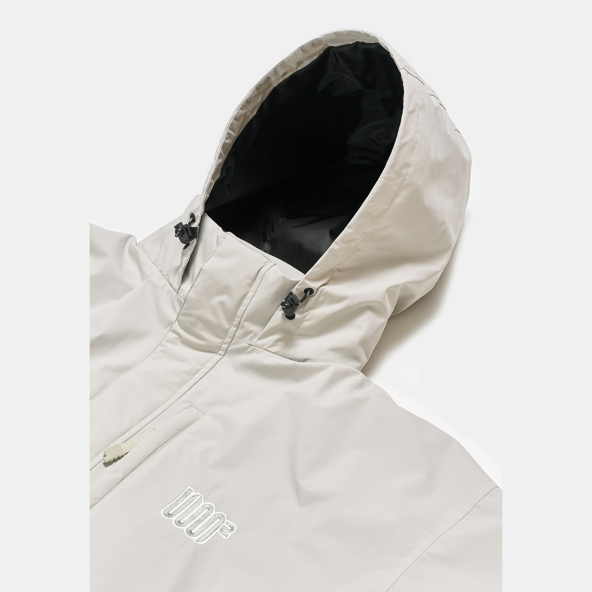 하이넥으로 디자인된 네크라인에는 후드가 내장되어 있어 다양한 환경과 스타일에 따라 자유롭게 연출할 수 있습니다.