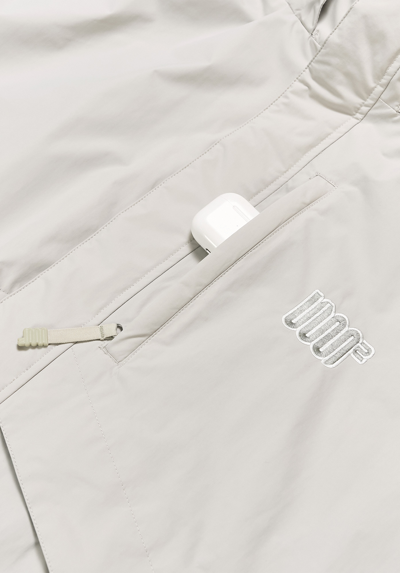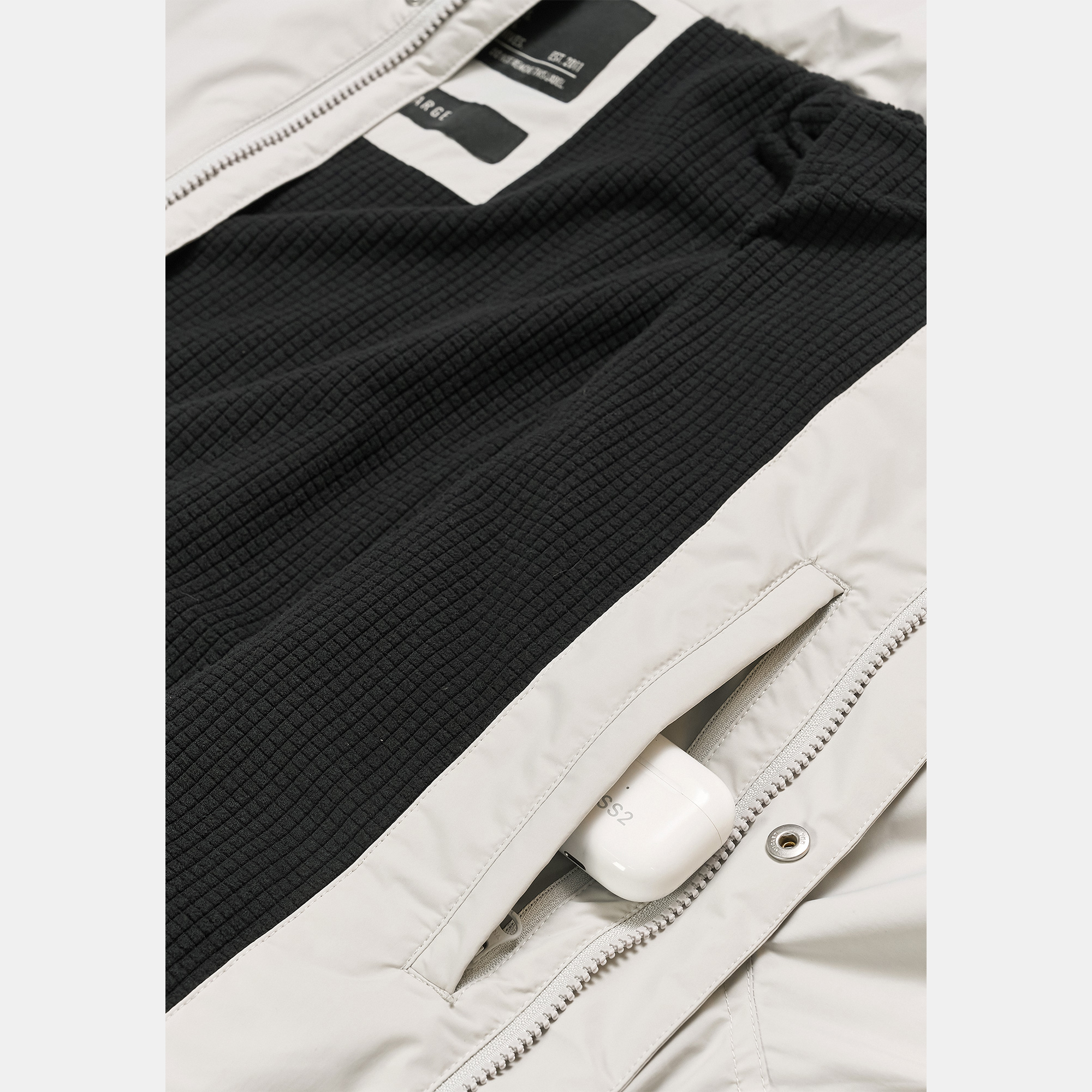 가슴의 톤온톤 고밀도 자수는 과하지 않은 브랜드 아이덴티티를 표현하며, 고급스러운 디테일을 완성합니다.