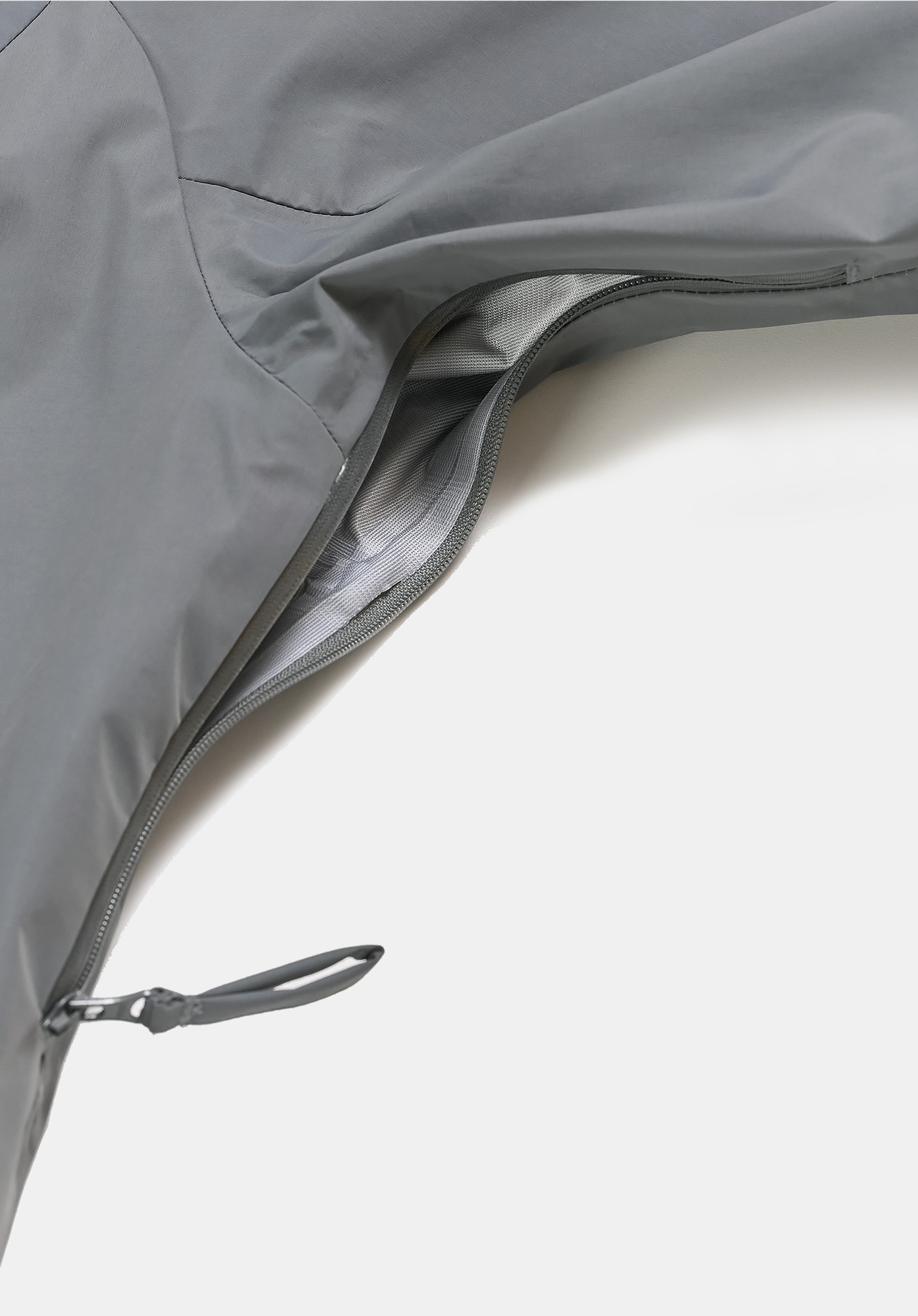 메인 부분에 적용된 YKK™ 2-way 방수 지퍼는 완벽한 방수성과 사용 편의성을 제공하며, 가슴과 양쪽 소매에 YKK™ 방수 지퍼 포켓을 배치해 실용성과 스타일을 동시에 잡았습니다.