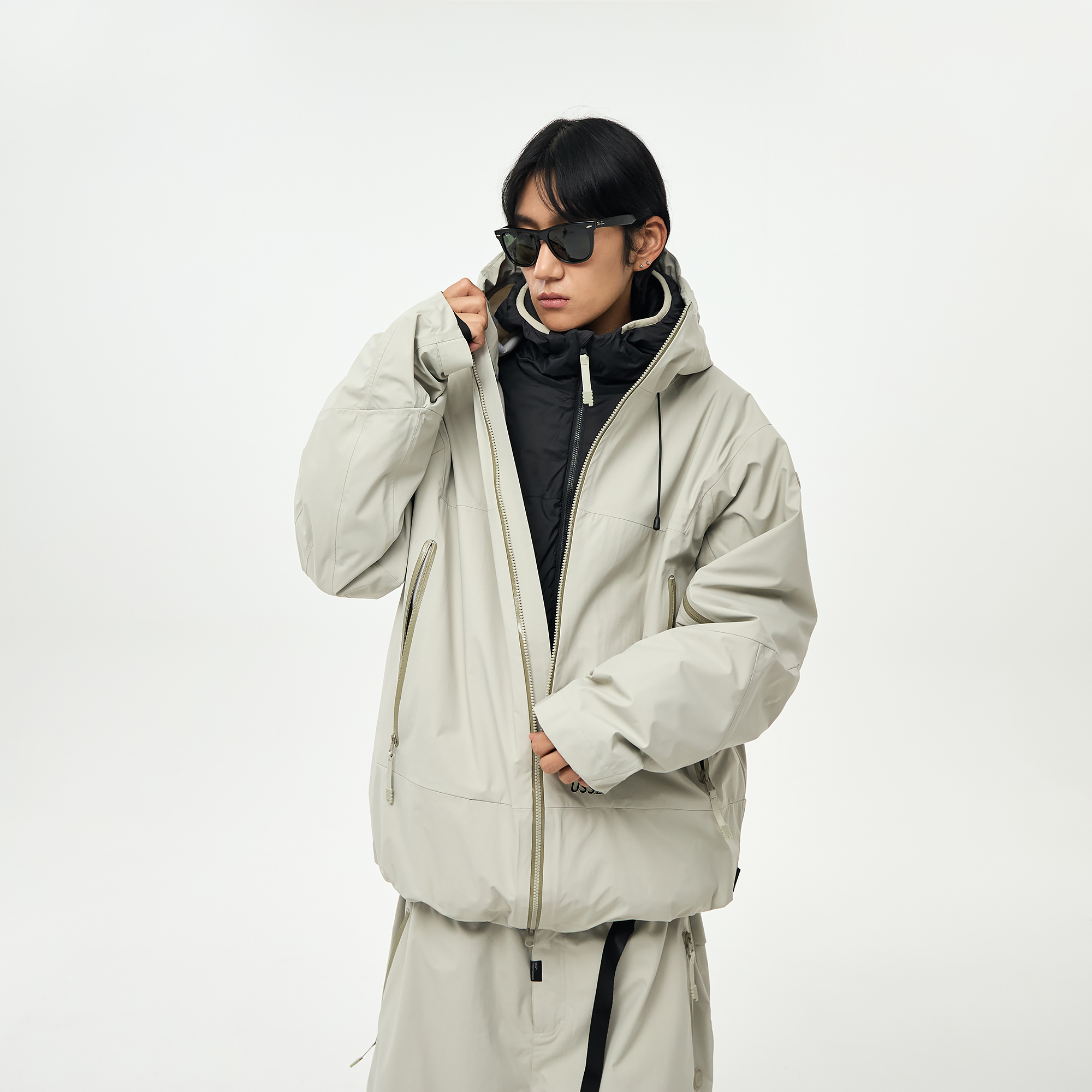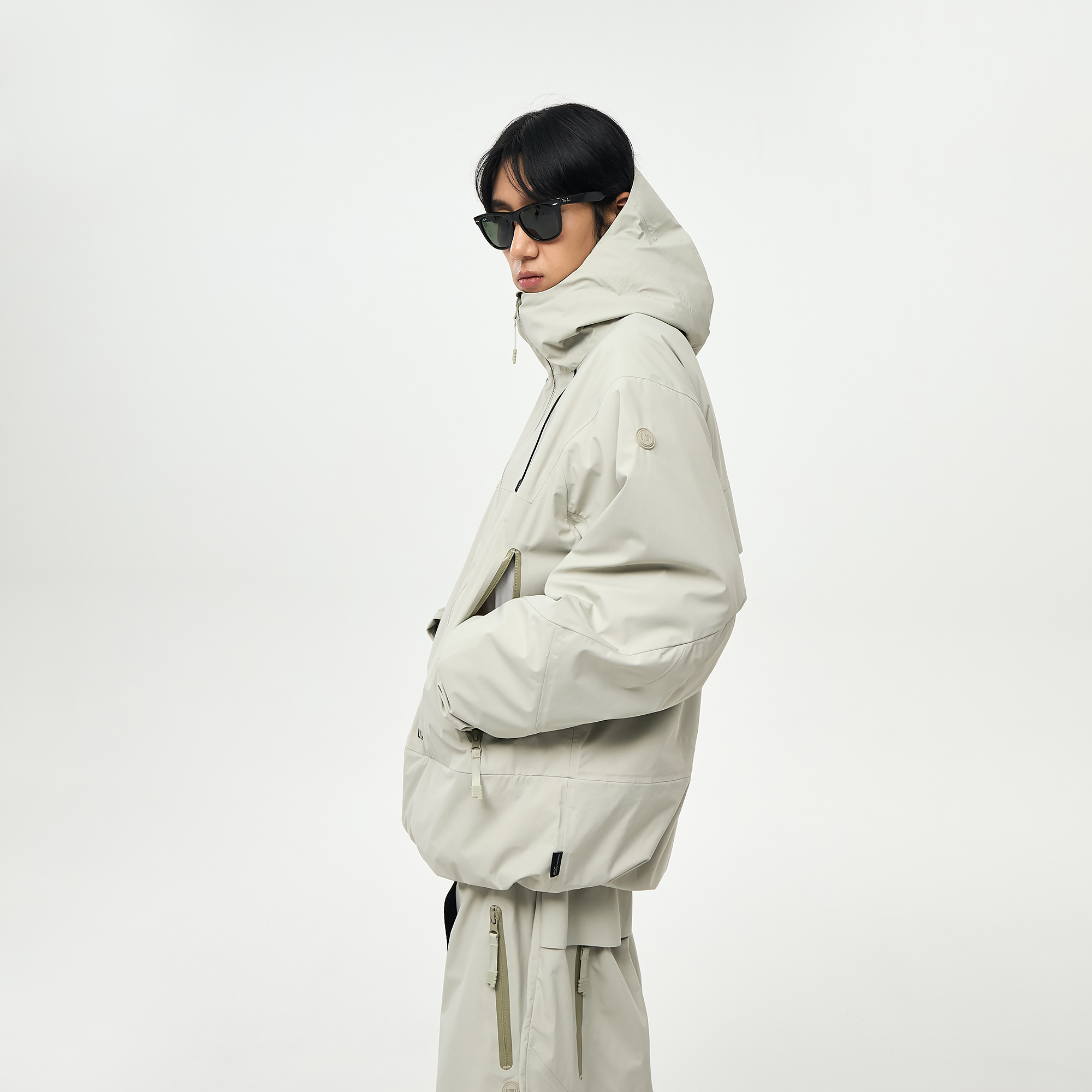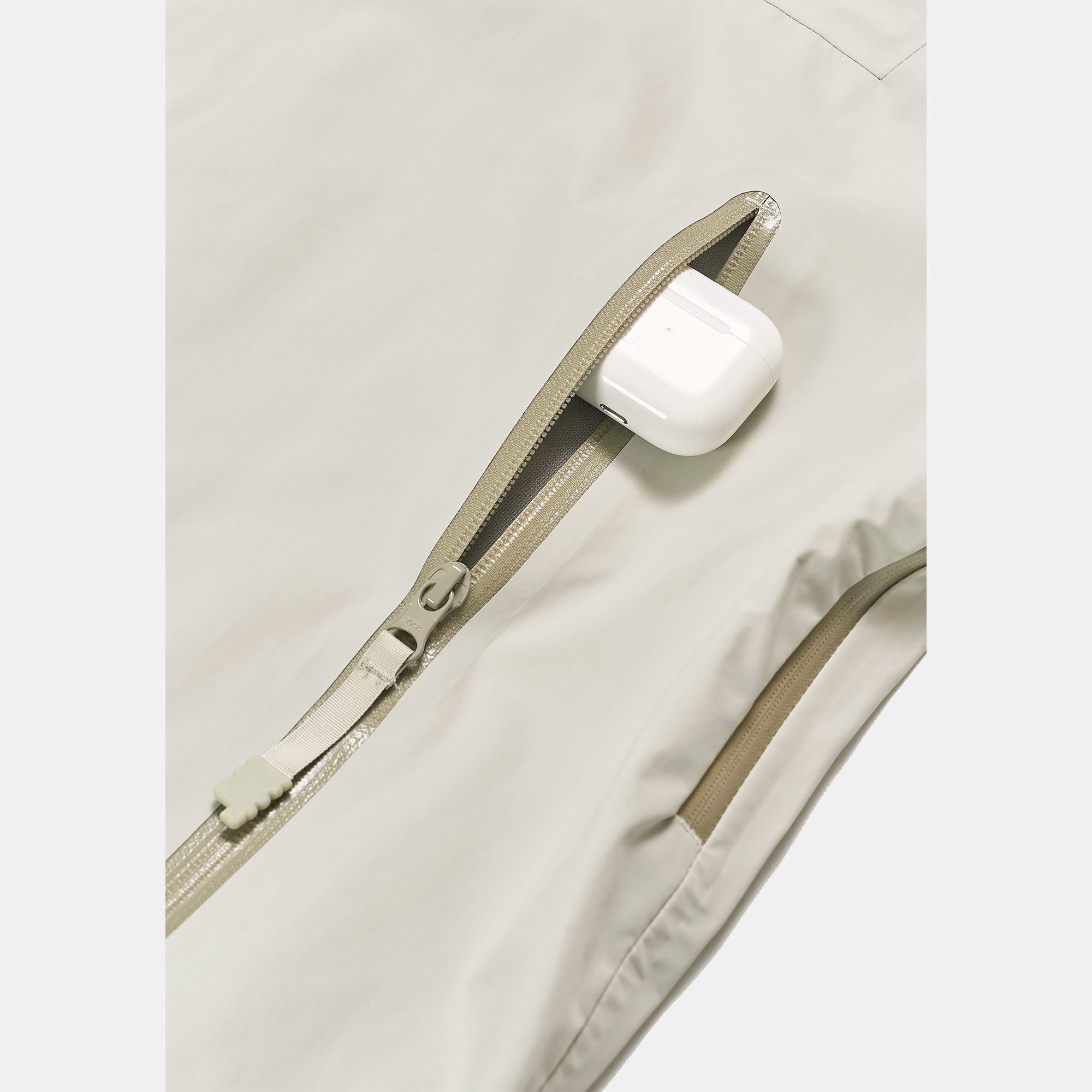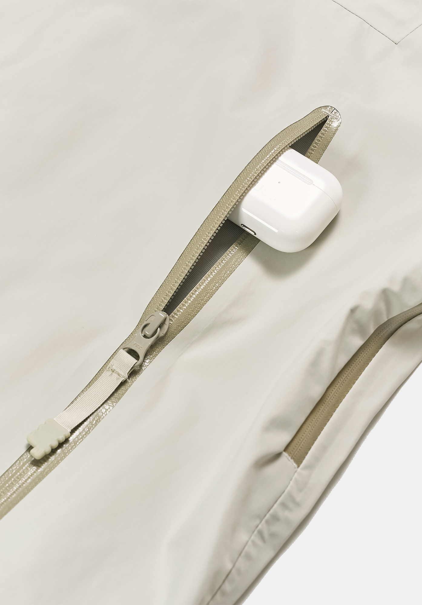 메인 부분에 적용된 YKK™ 2-way 방수 지퍼는 완벽한 방수성과 사용 편의성을 제공하며, 가슴과 양쪽 소매에 YKK™ 방수 지퍼 포켓을 배치해 실용성과 스타일을 동시에 잡았습니다.
